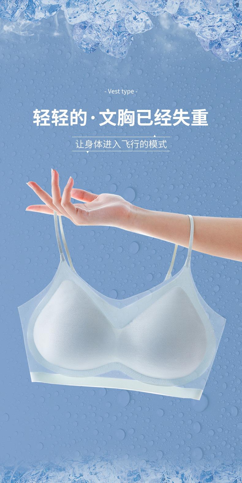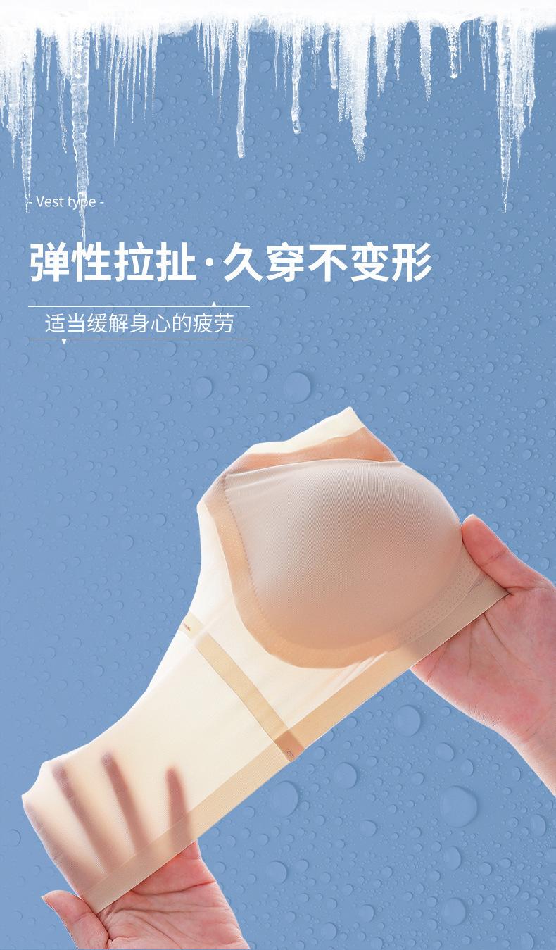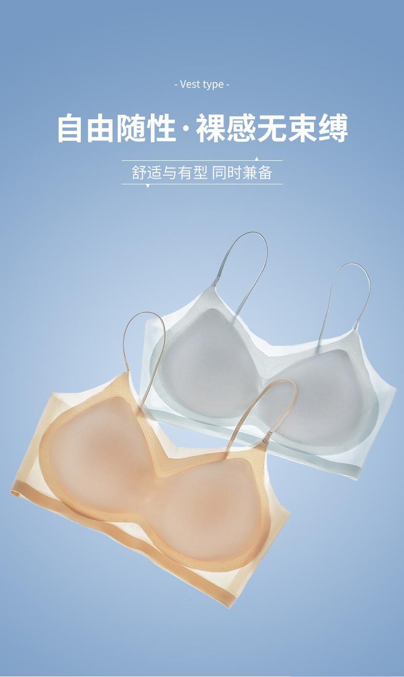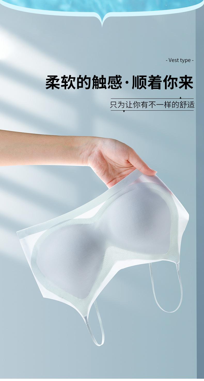 Ropa interior ultrafina de seda de hielo sin dejar rastro, sujetador de gelatina para mujer, chaleco transpirable, pecho grande, espalda hermosa, correa para dormir, envoltura para el pecho