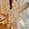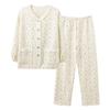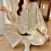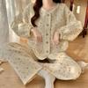 Pijama Blanco para Mujer Primavera y Otoño Manga Larga Algodón Aire Engrosado Sándwich Nuevo Estilo Dulce Princesa Otoño e Invierno Ropa para el Hogar