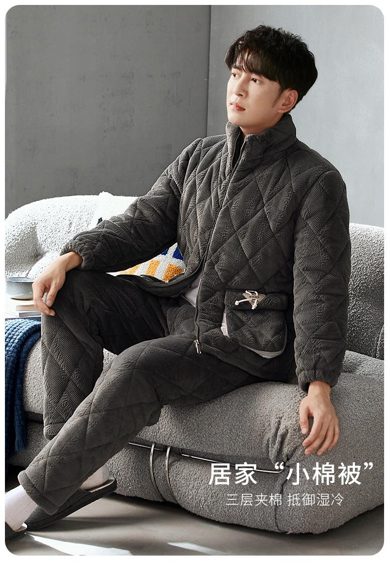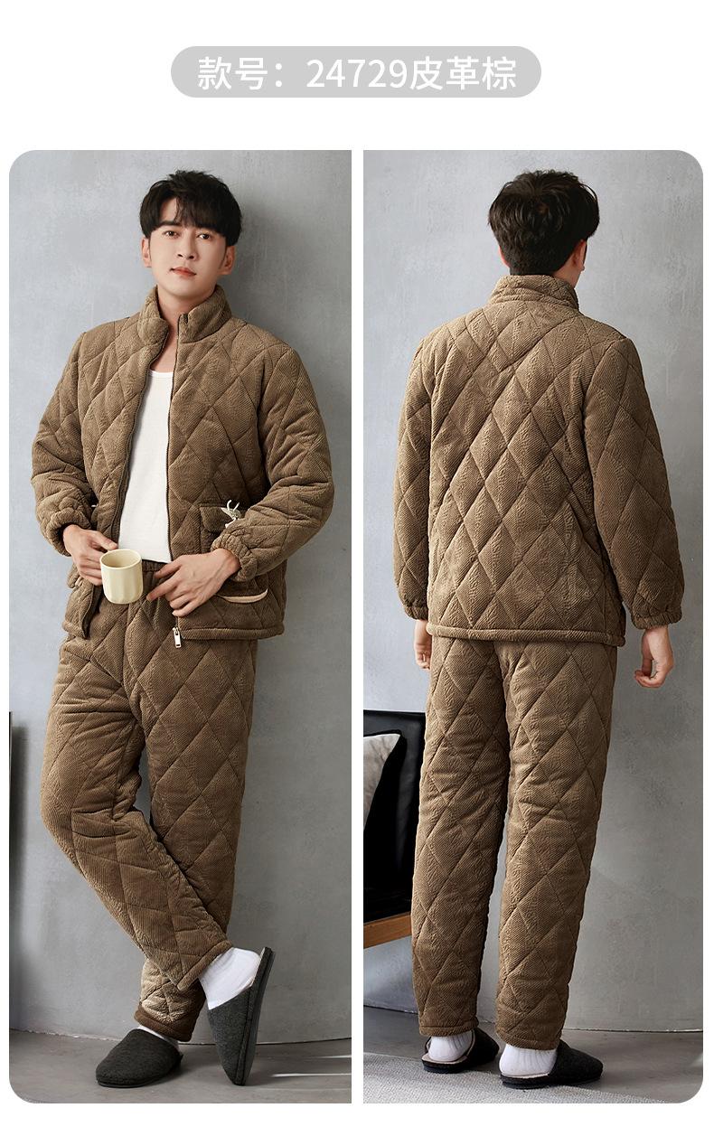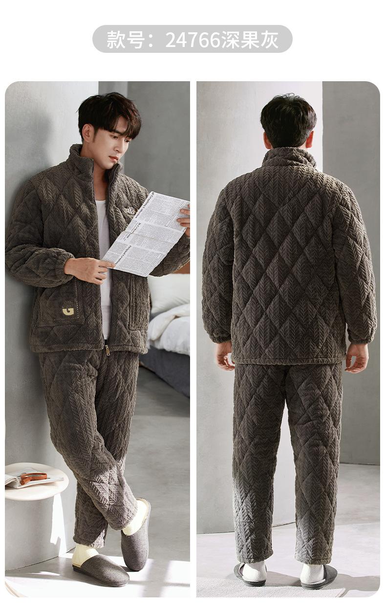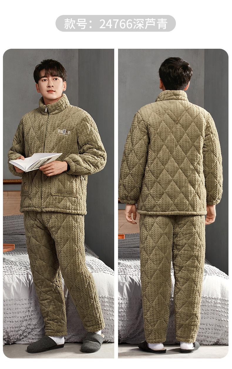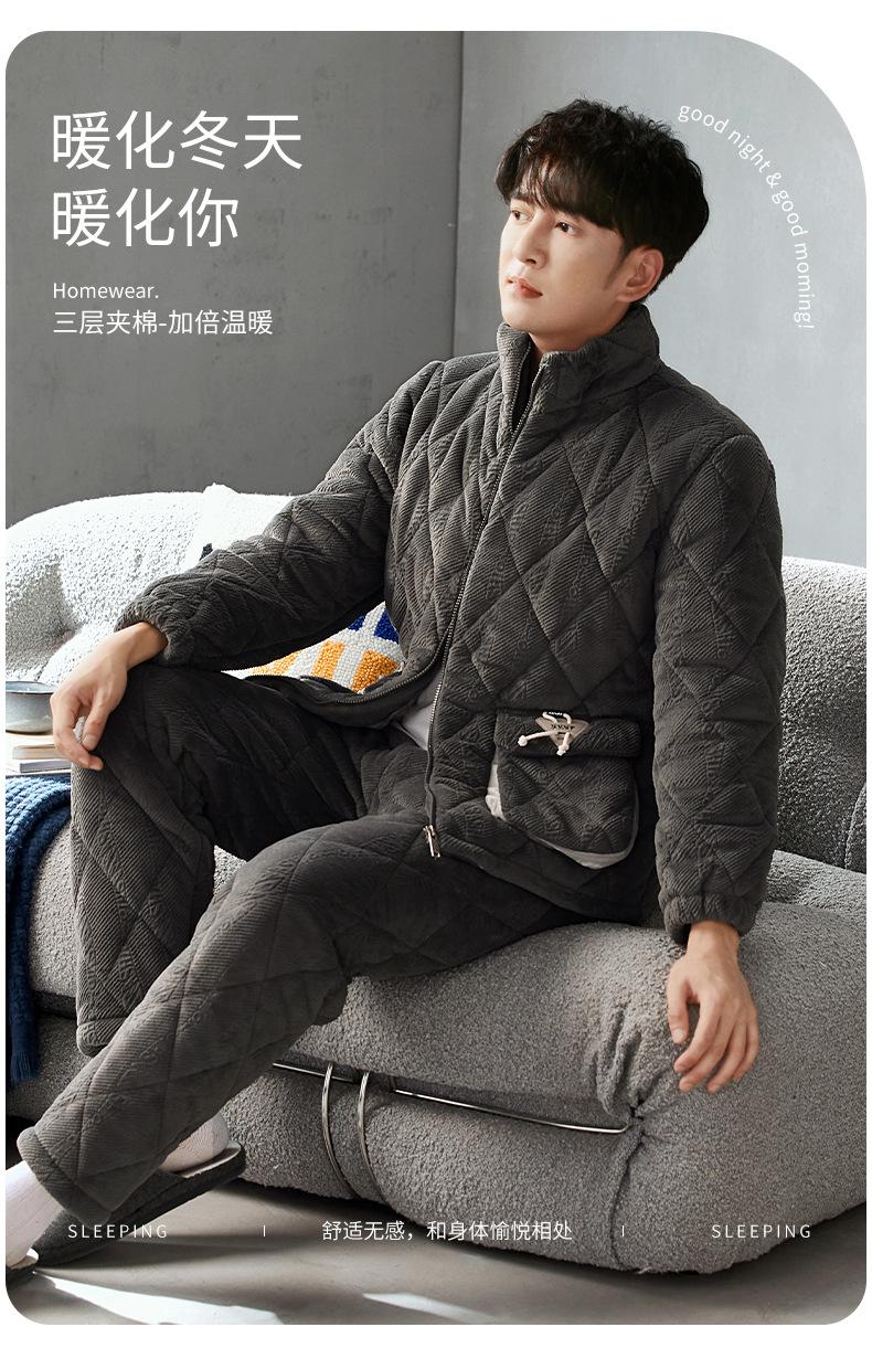 Pijama nuevo para hombre, de invierno, de tres capas, de algodón acolchado con forro polar coral, ropa de ocio para otoño e invierno para el hogar, se puede adaptar