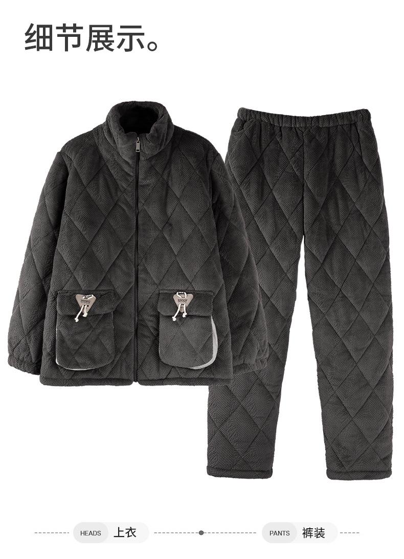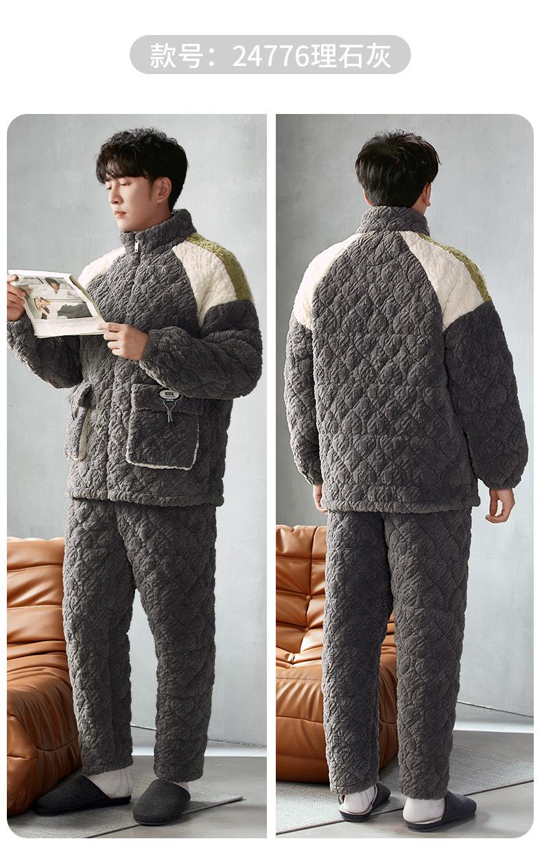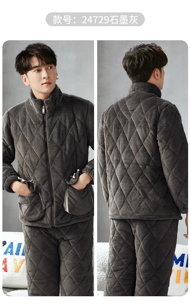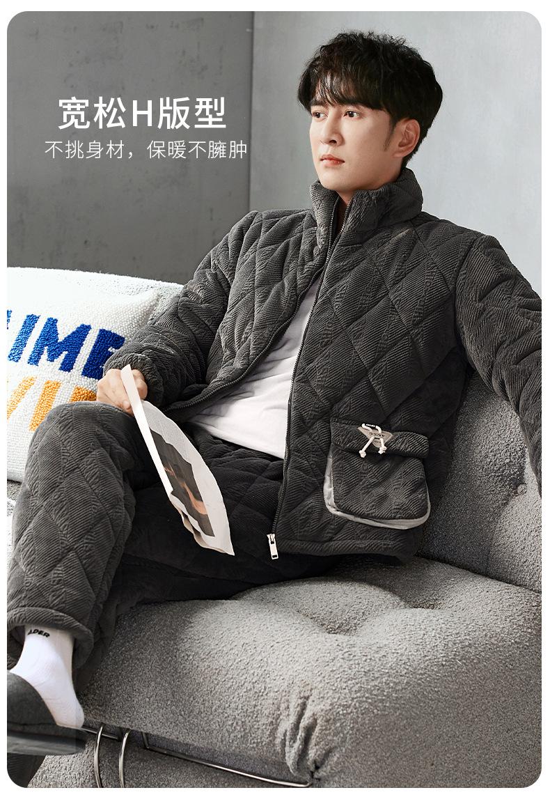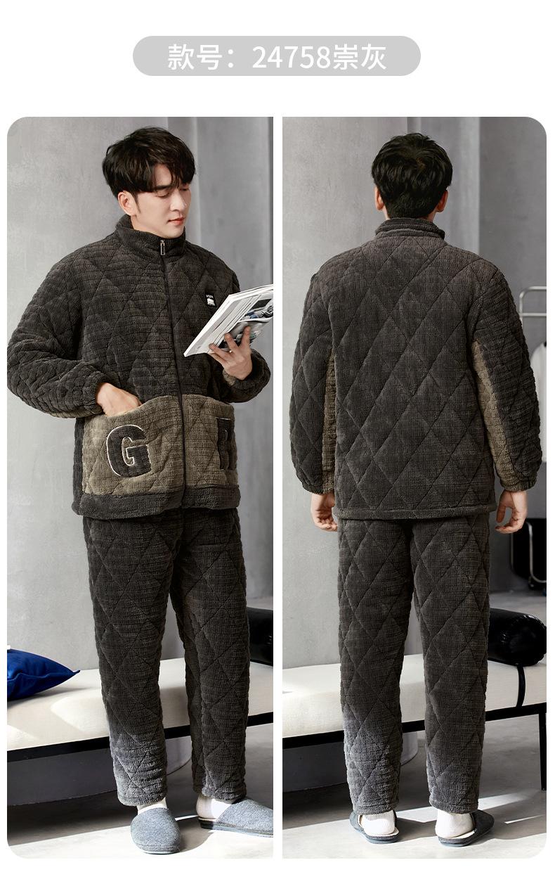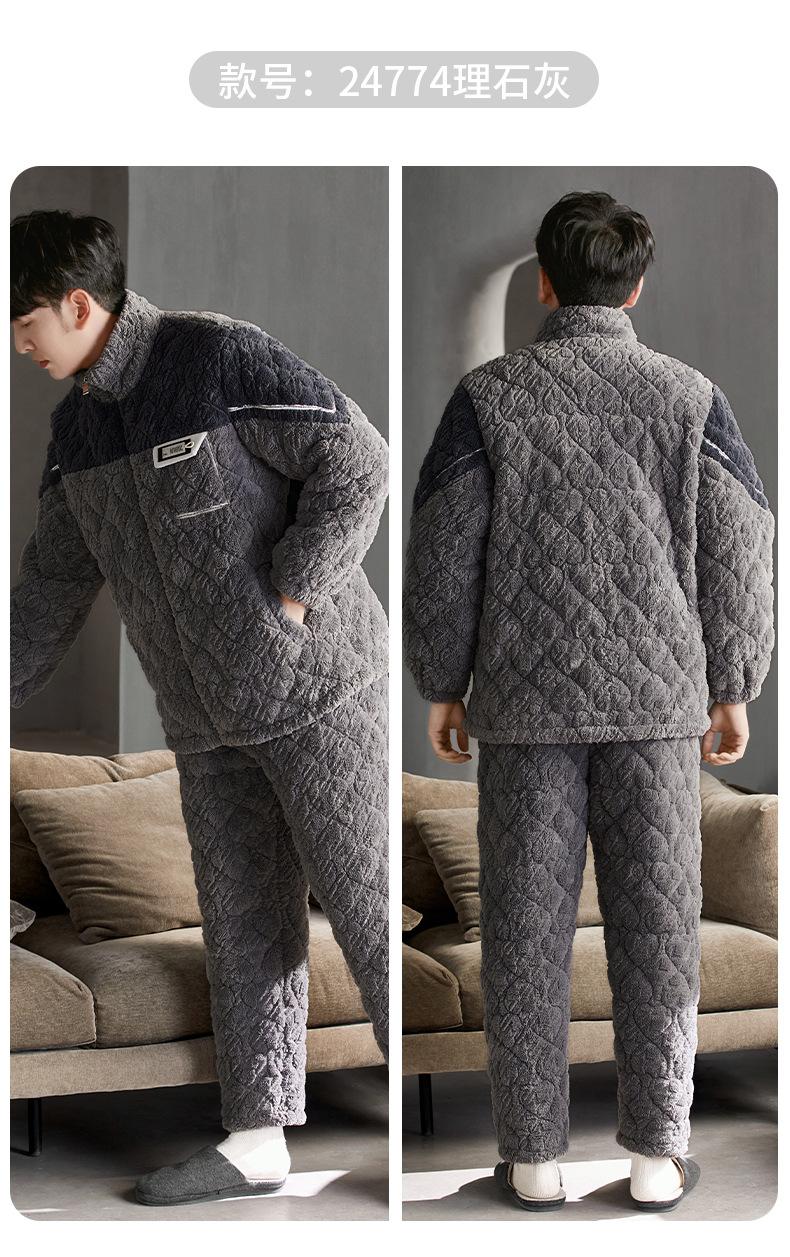 Pijama nuevo para hombre, de invierno, de tres capas, de algodón acolchado con forro polar coral, ropa de ocio para otoño e invierno para el hogar, se puede adaptar