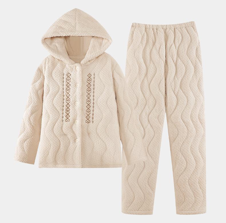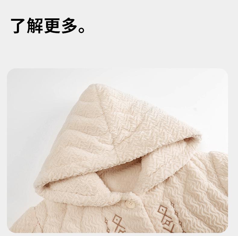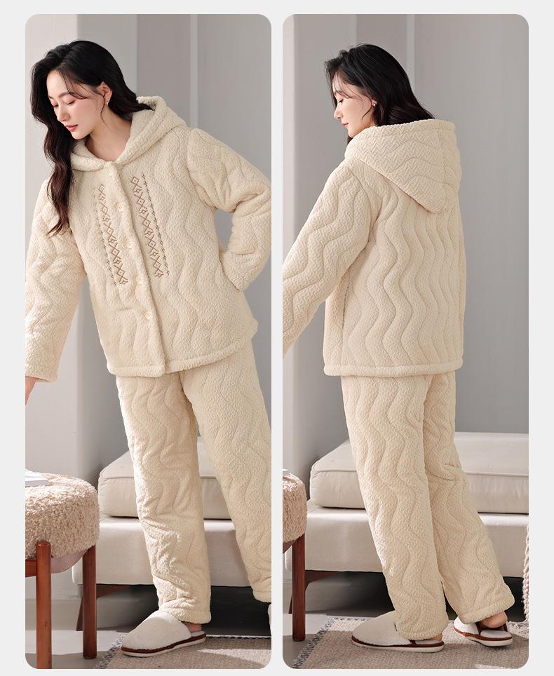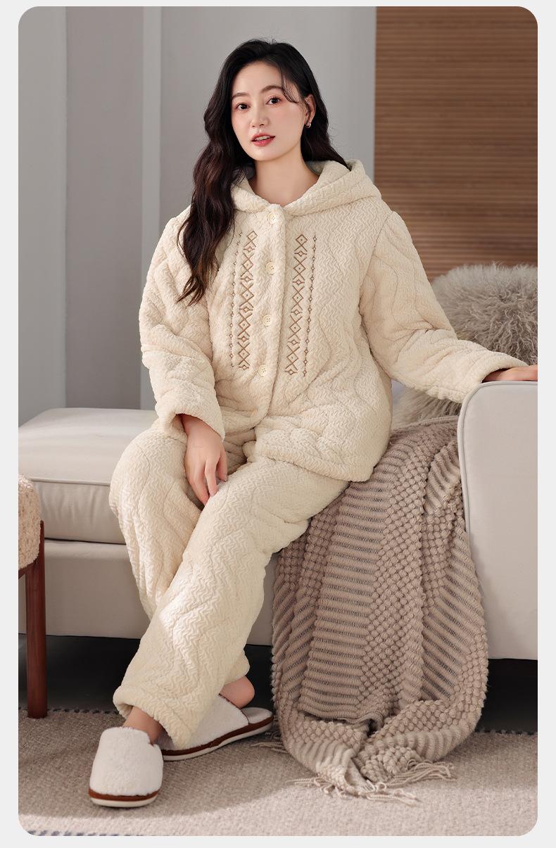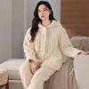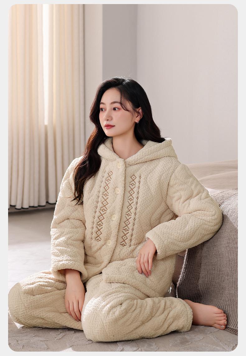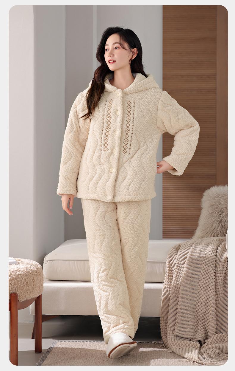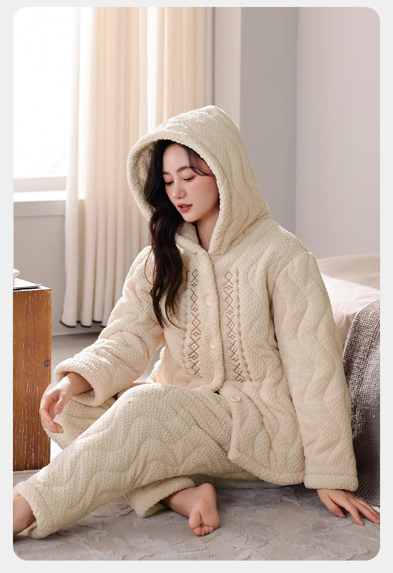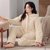 Pijama de algodón y vellón coral para mujer, de invierno, grueso, forrado con vellón, de franela acolchada de tres capas, ropa para el hogar, estilo retro Mori para mujer, nuevo estilo.
