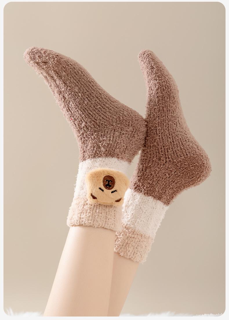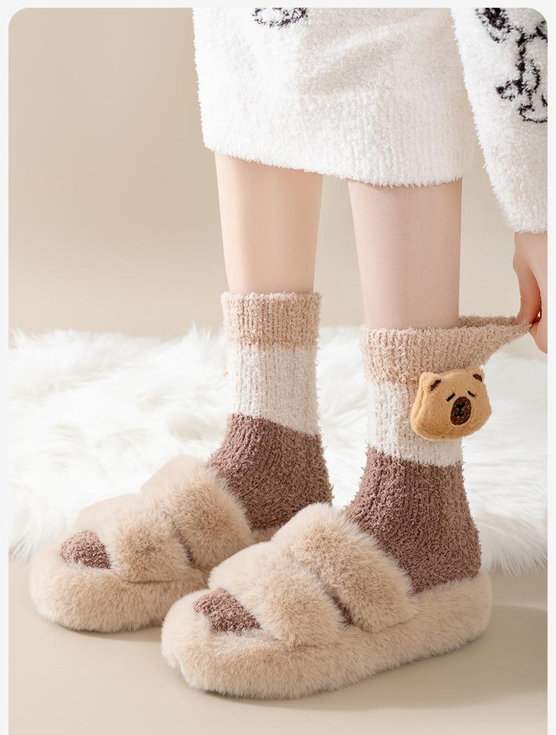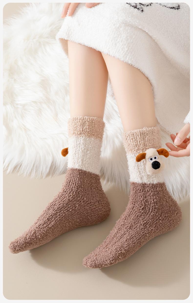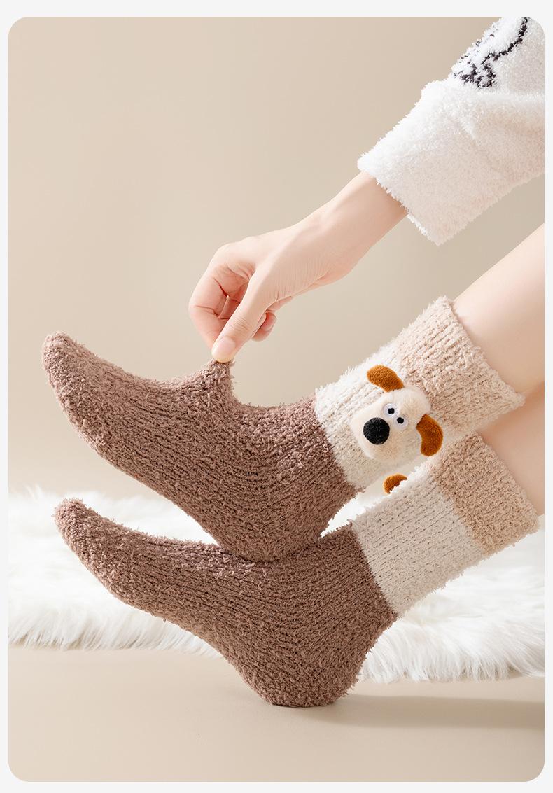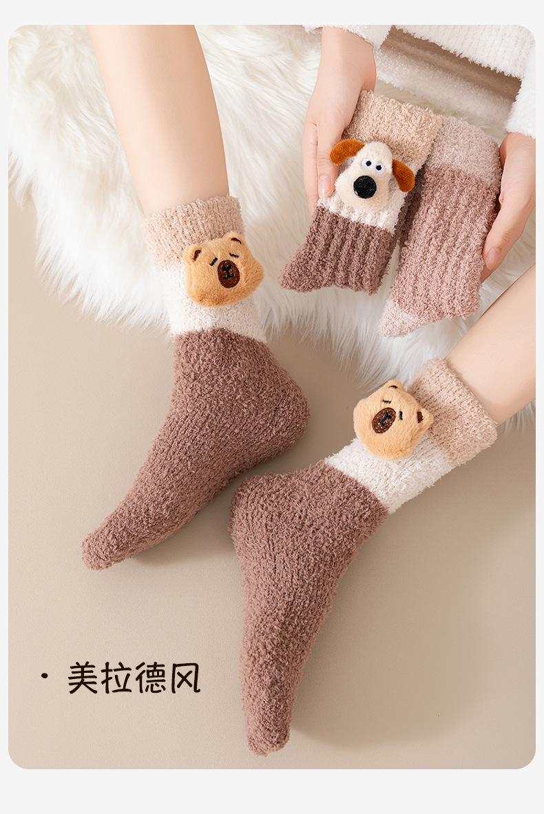 Calcetines de terciopelo coral para mujer, combinación de otoño e invierno, calcetines de tubo grueso de dibujos animados, Maillard para casa, cálidos, calcetines para dormir de hombre