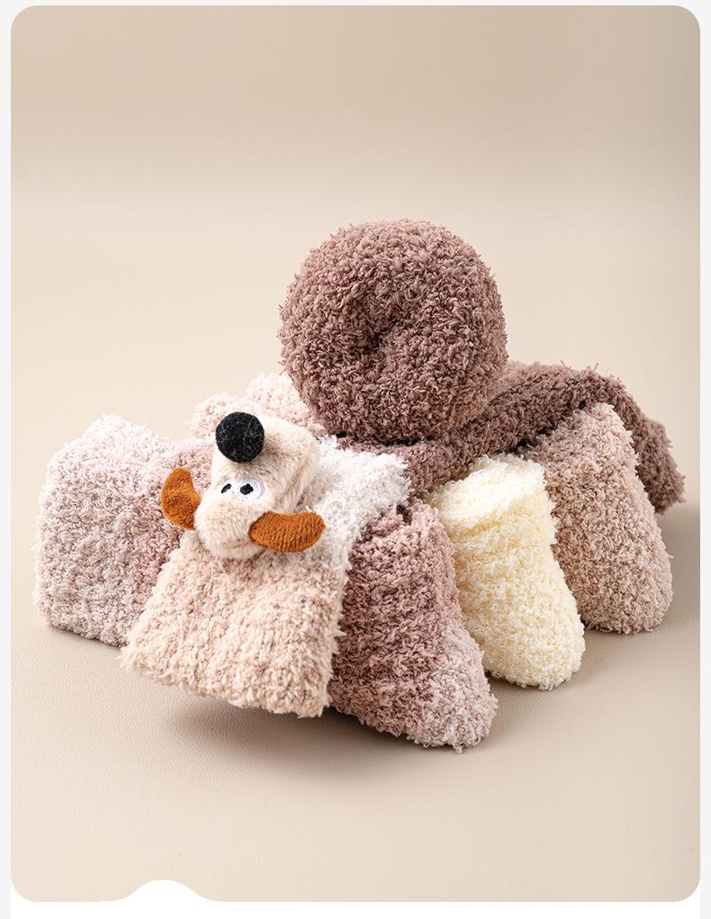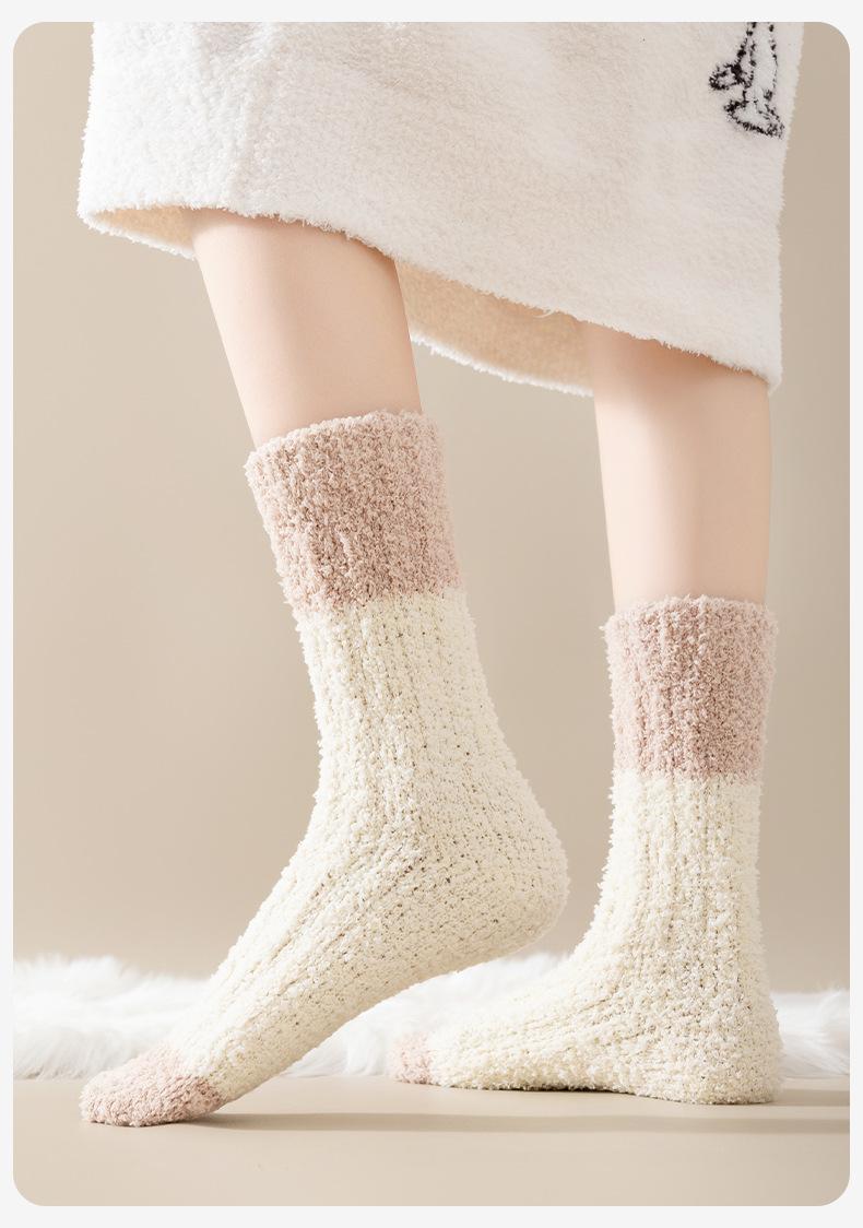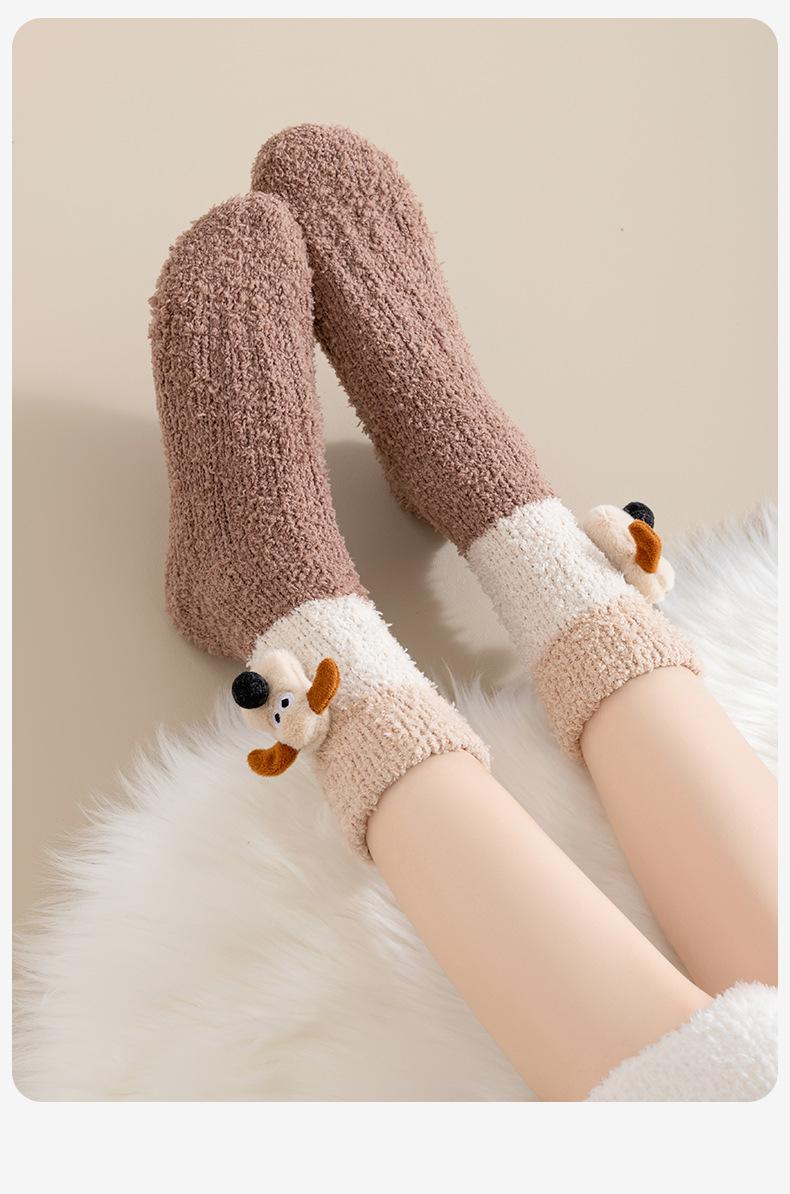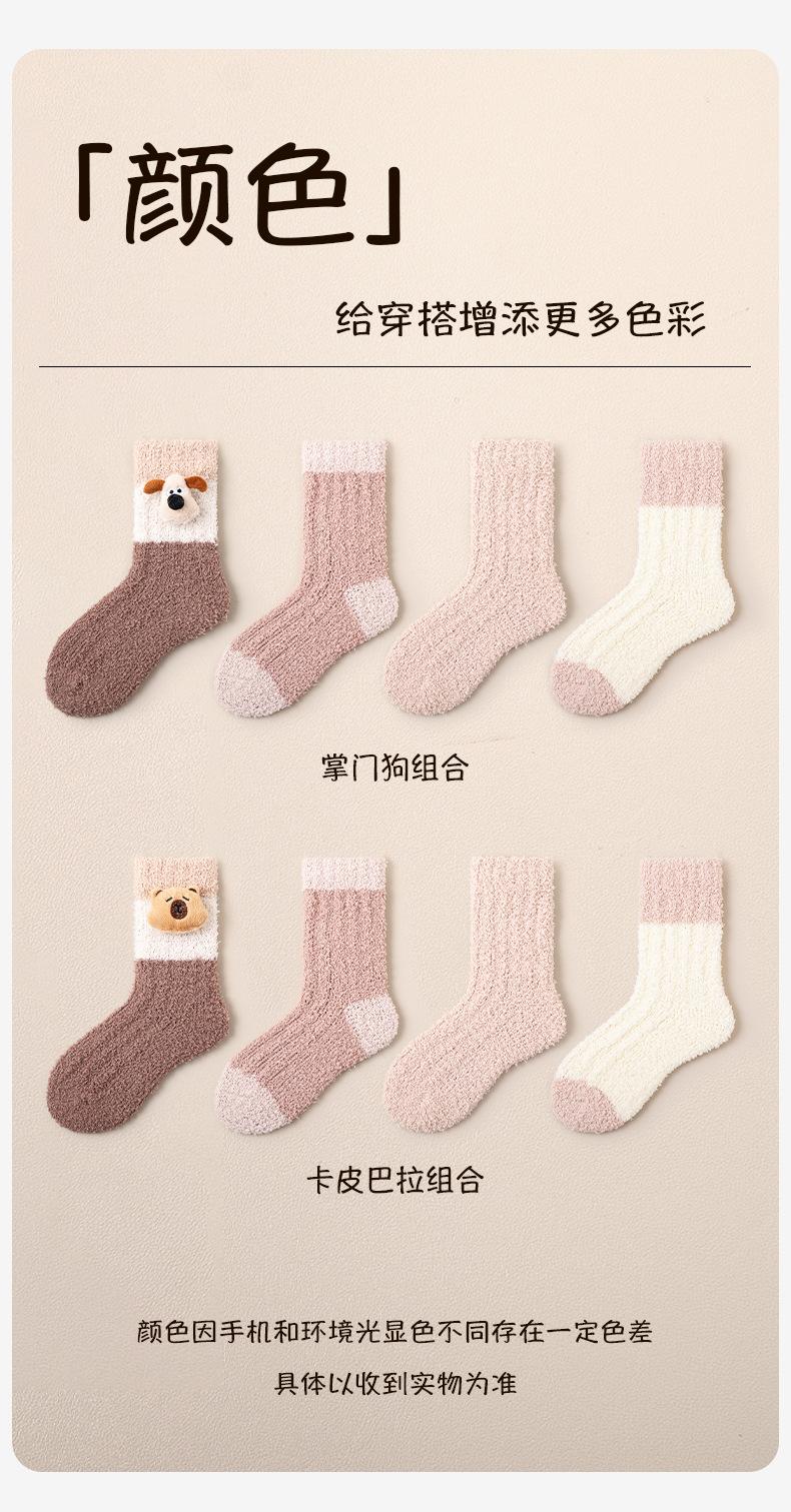 Calcetines de terciopelo coral para mujer, combinación de otoño e invierno, calcetines de tubo grueso de dibujos animados, Maillard para casa, cálidos, calcetines para dormir de hombre