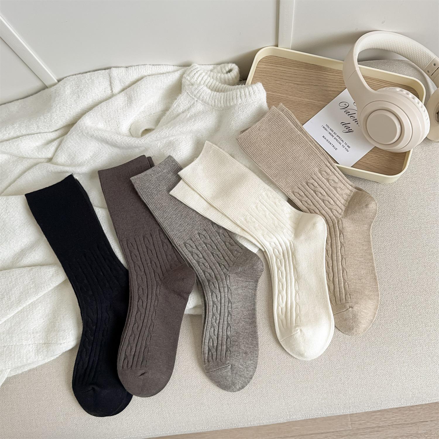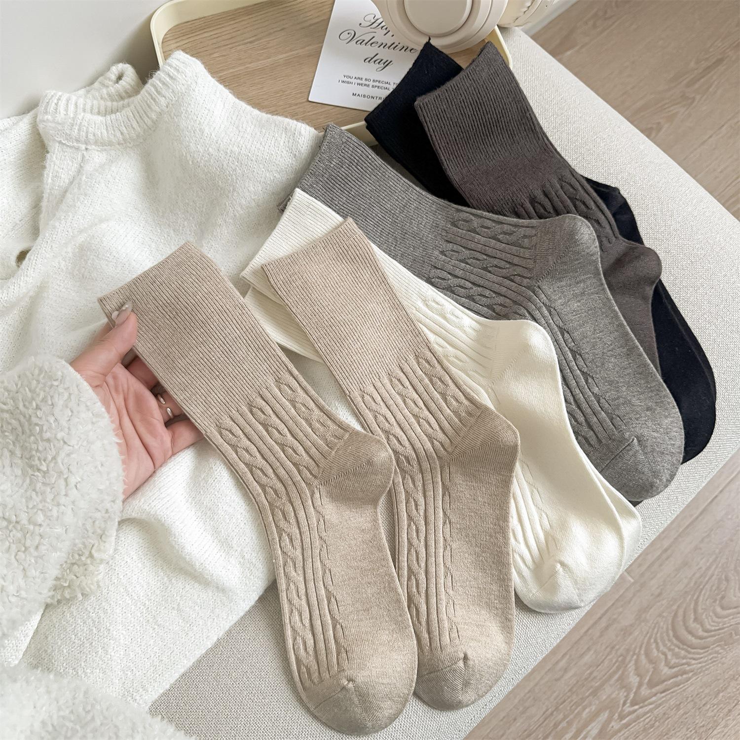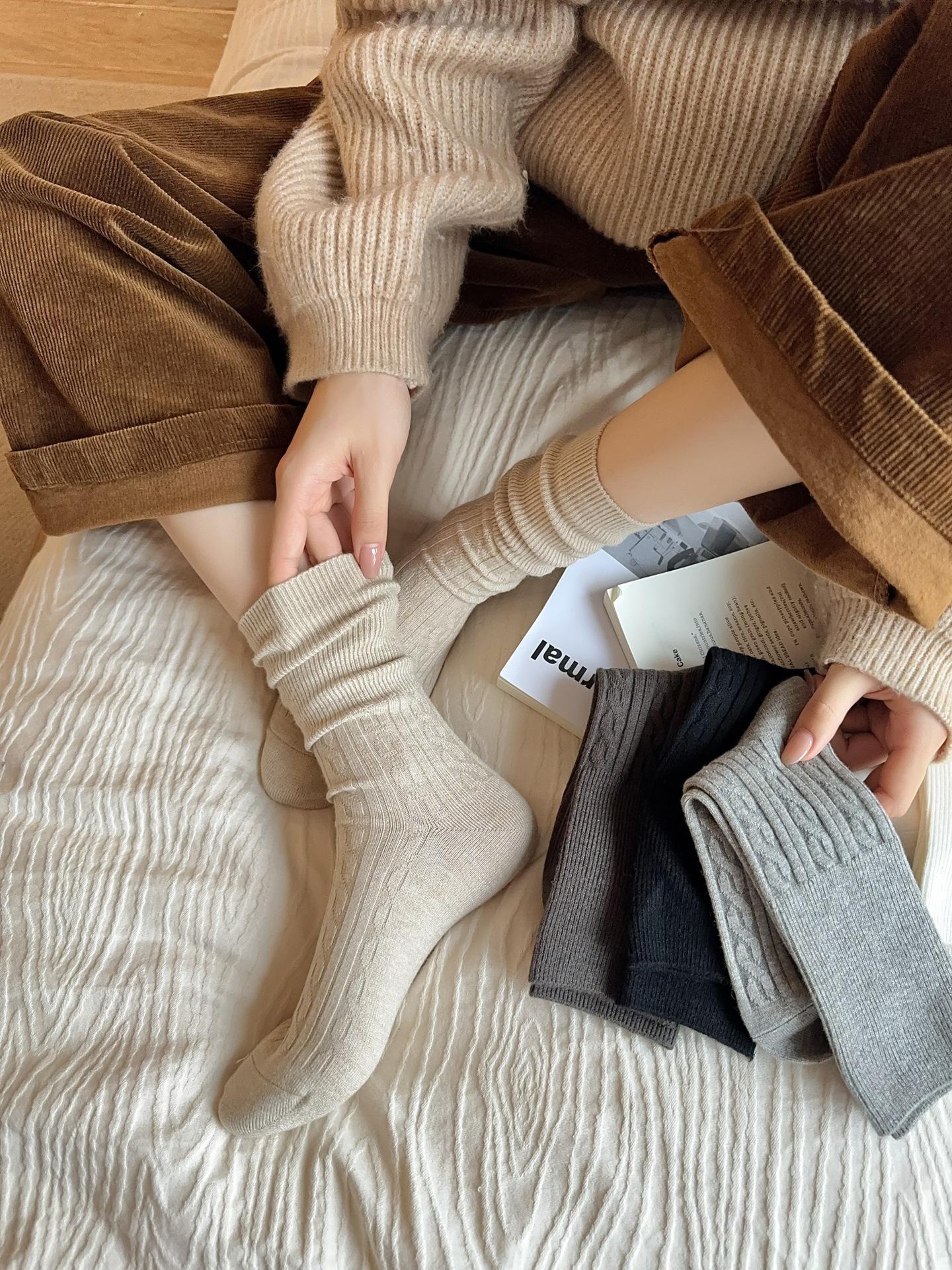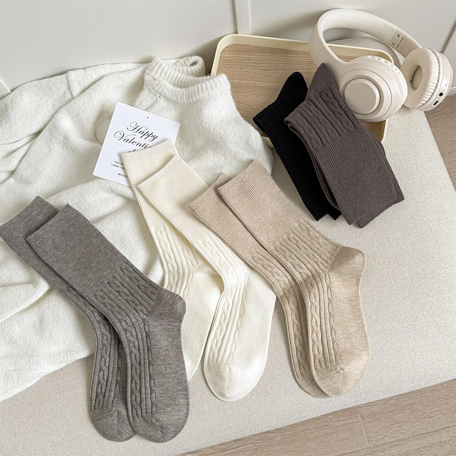 Calcetines de mujer otoño e invierno calcetines de media caña color sólido cachemira japonesa patrón cáñamo medias engrosados cálidos simples de pelo calcetines de mujer