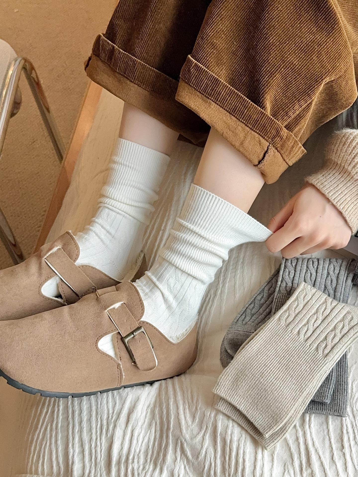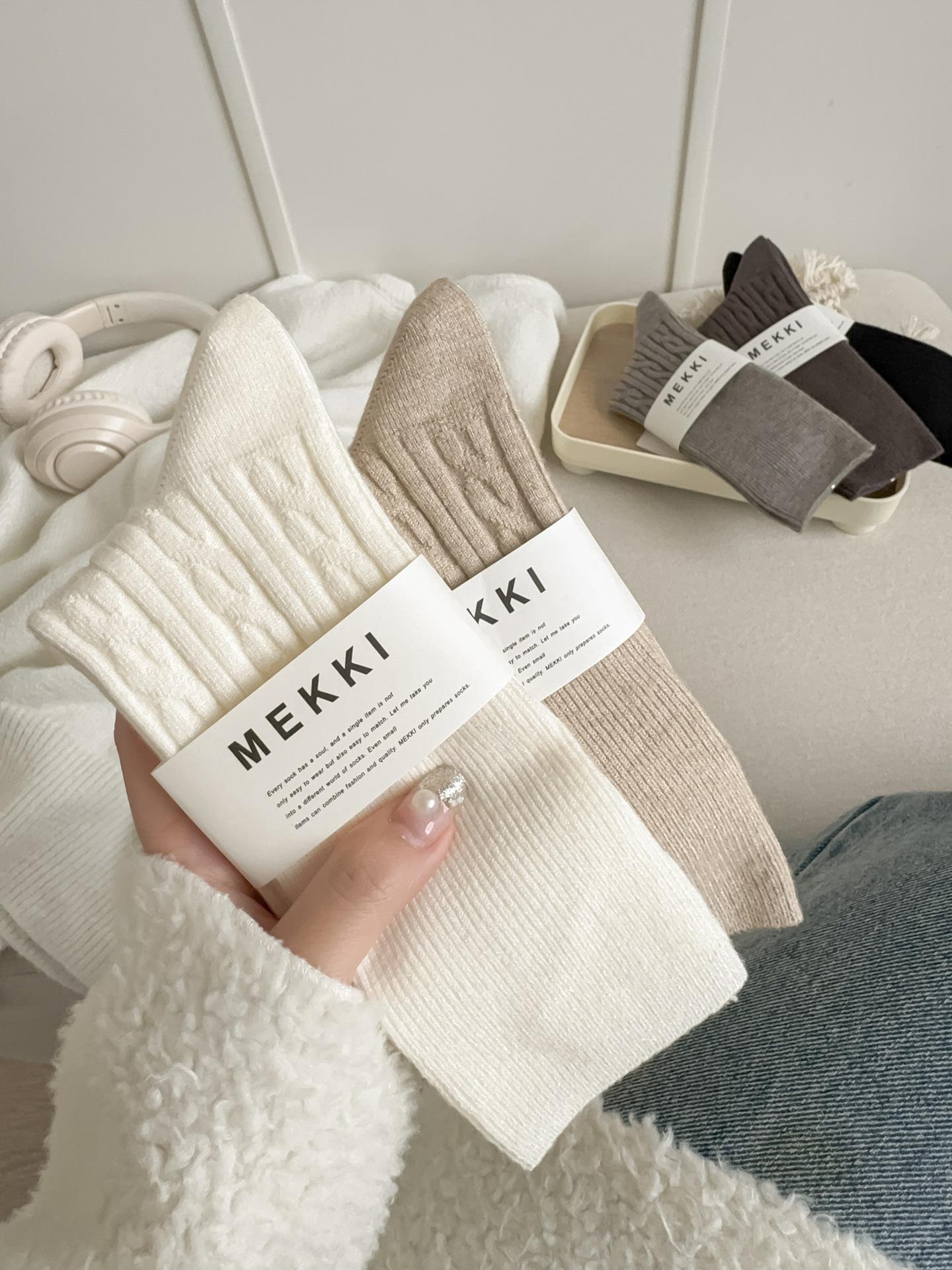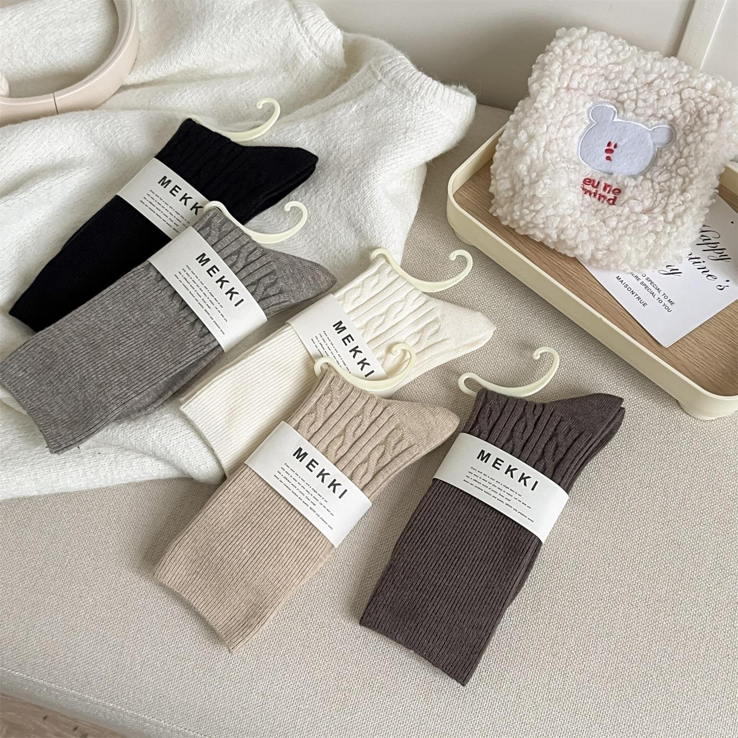 Calcetines de mujer otoño e invierno calcetines de media caña color sólido cachemira japonesa patrón cáñamo medias engrosados cálidos simples de pelo calcetines de mujer