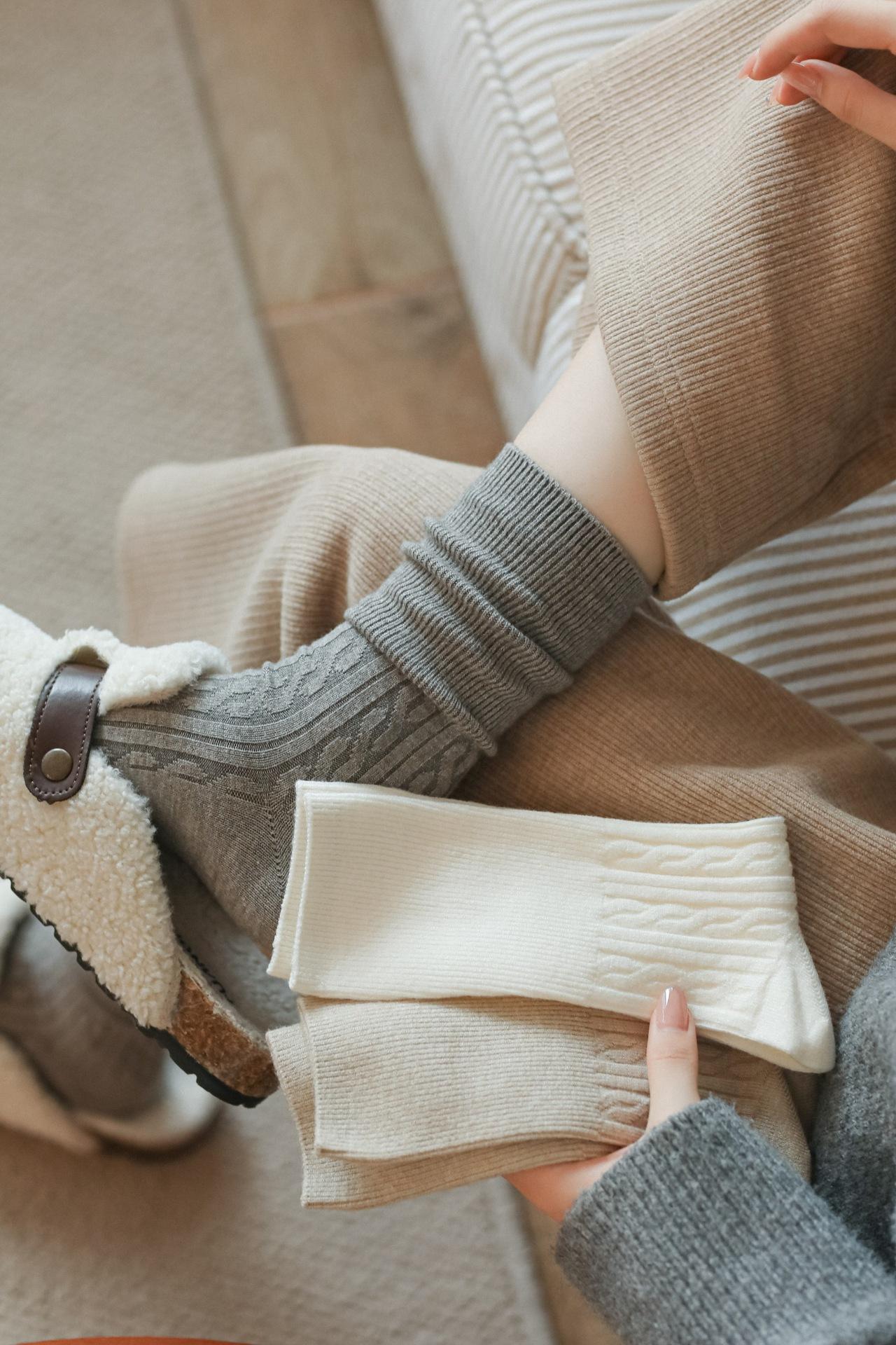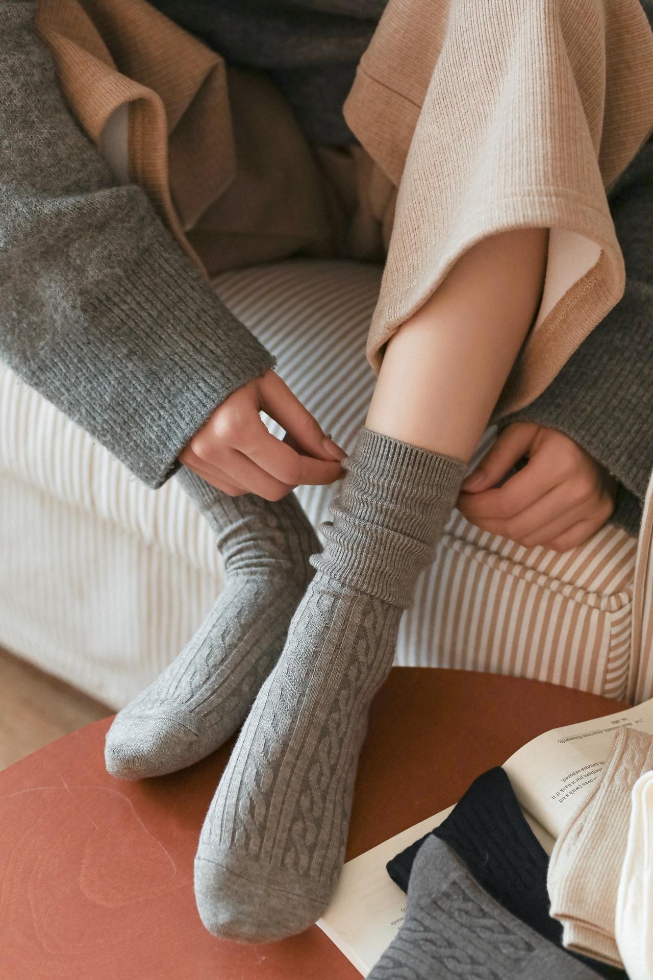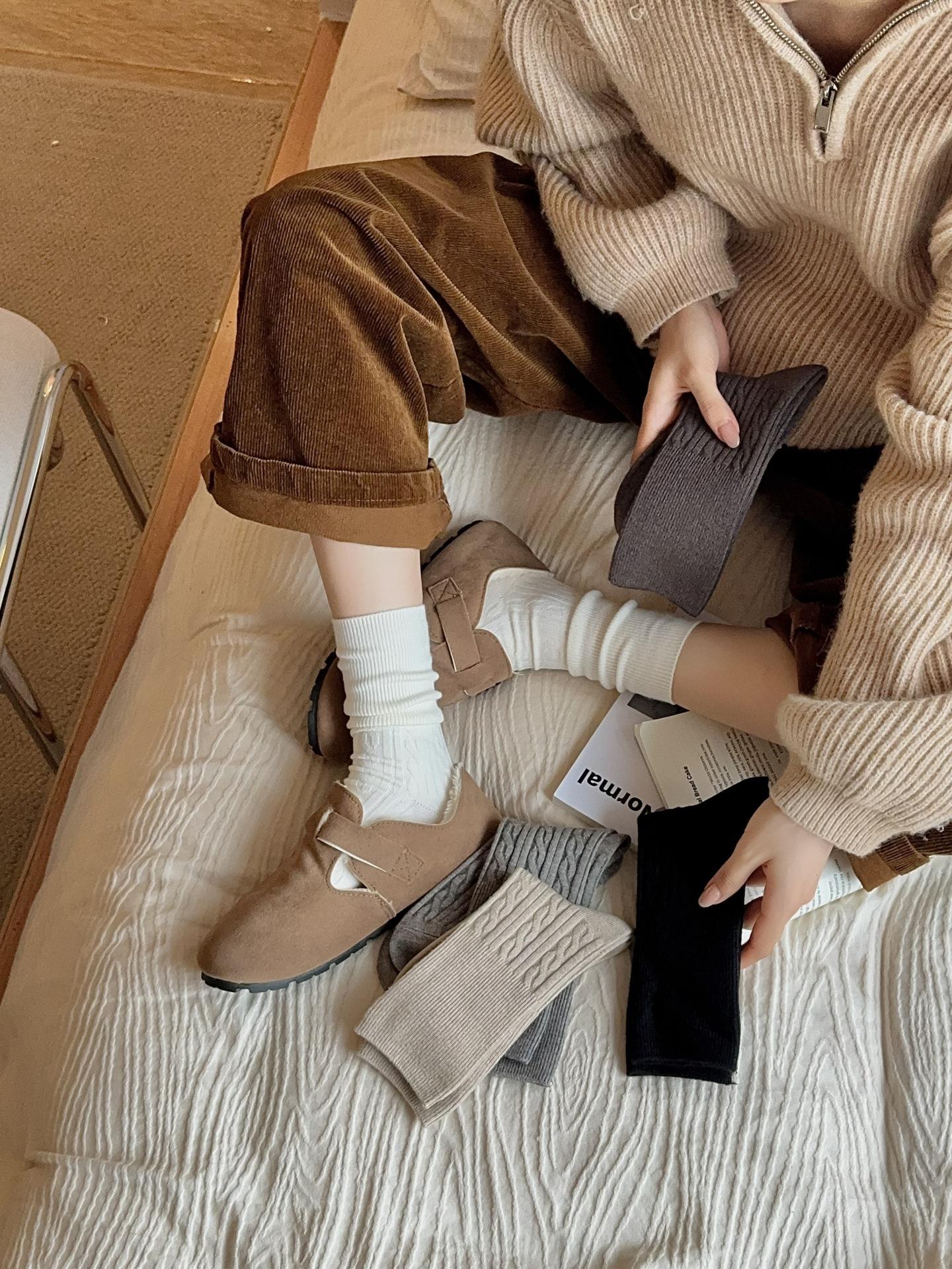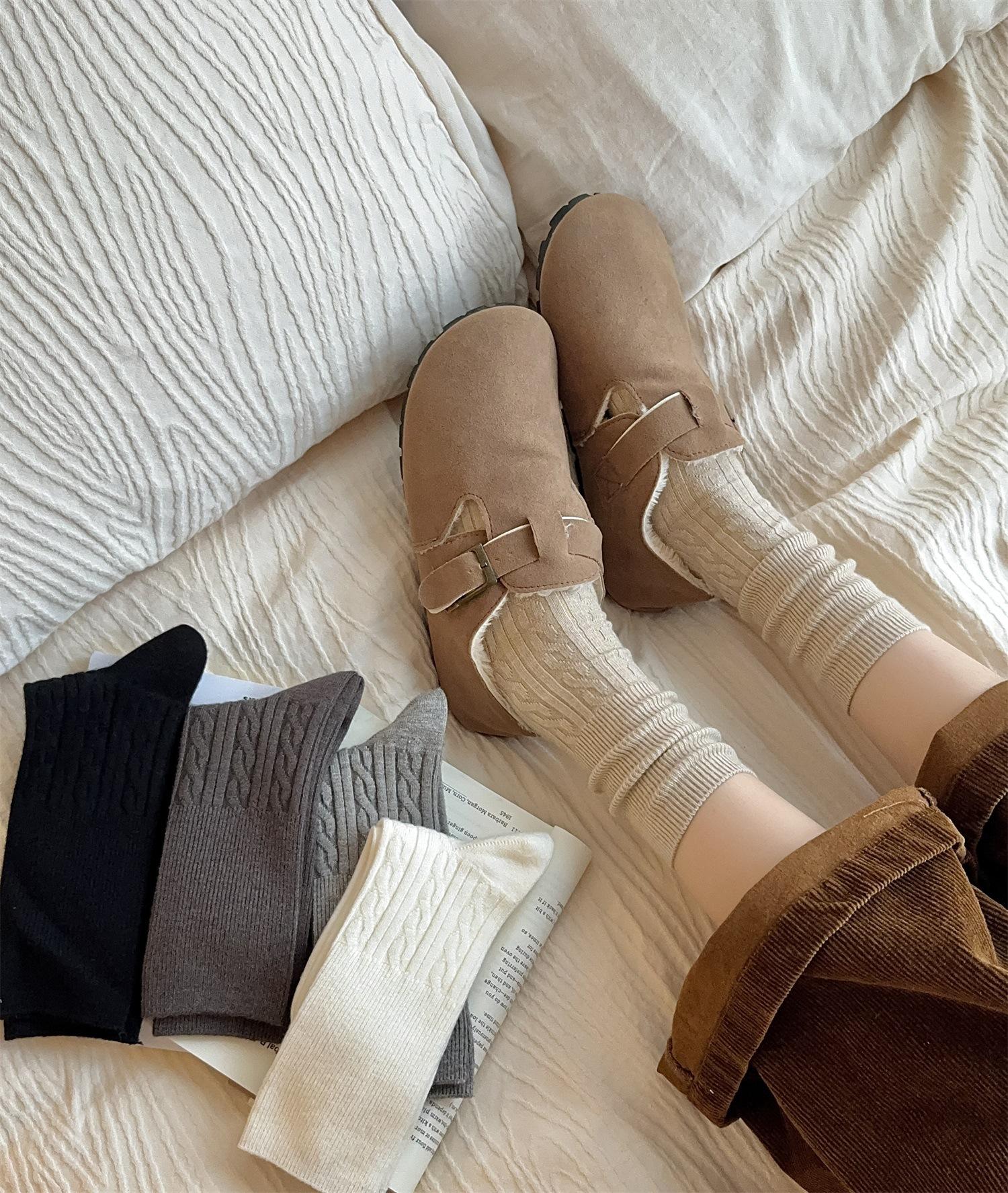 Calcetines de mujer otoño e invierno calcetines de media caña color sólido cachemira japonesa patrón cáñamo medias engrosados cálidos simples de pelo calcetines de mujer