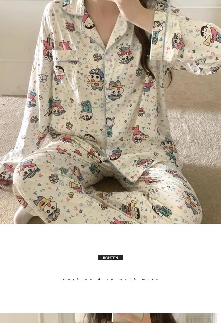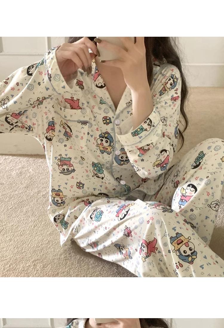 Pijamas de mujer primavera y otoño nuevo huevo salado Superman traje de manga larga dibujos animados crayón espinilla nueva ropa exterior ropa de hogar al por mayor