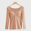Ropa interior térmica de terciopelo cepillado para mujer, ropa de otoño con almohadilla para el pecho, chaleco interior de invierno, camiseta base ligera para mujer