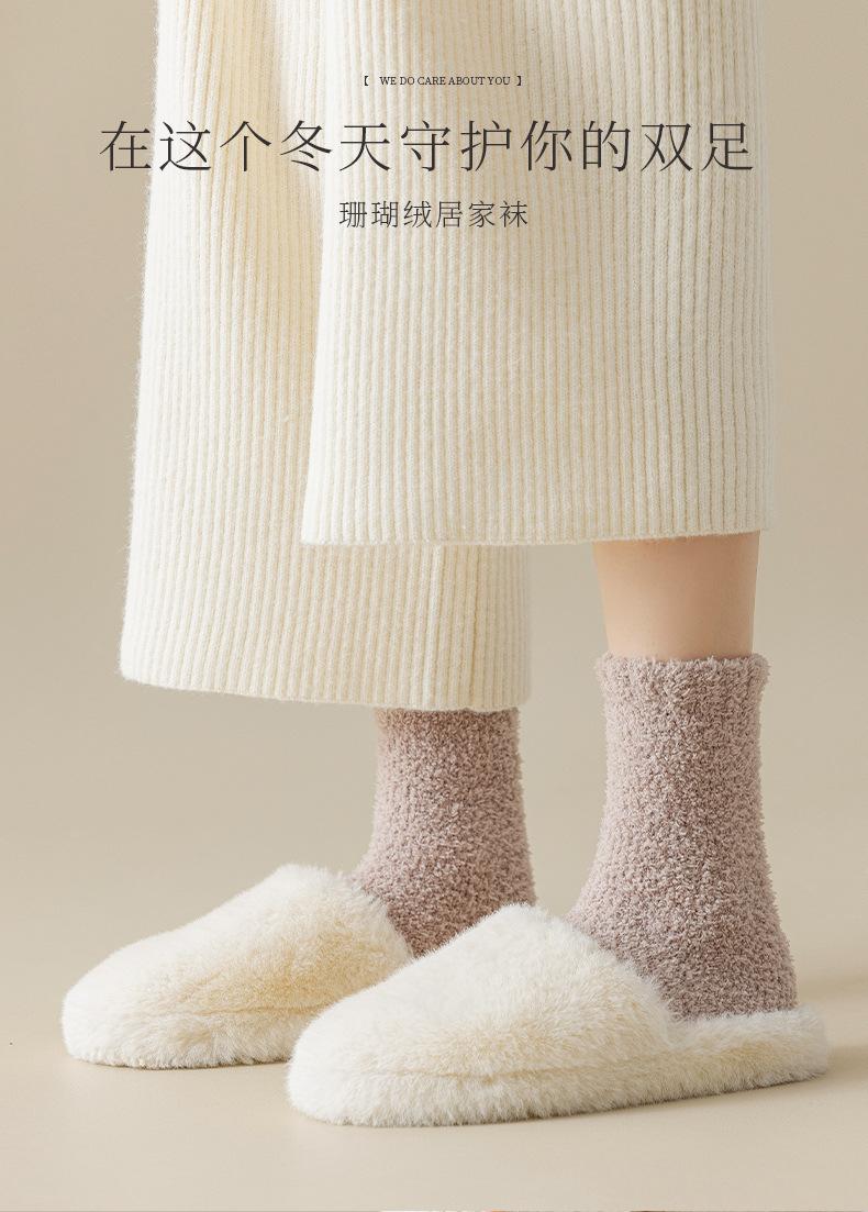 Calcetines para mujer invierno gruesos sin pelusa coral calcetines de media caña forro polar cálidos calcetines de confinamiento calcetines para dormir en casa venta al por mayor