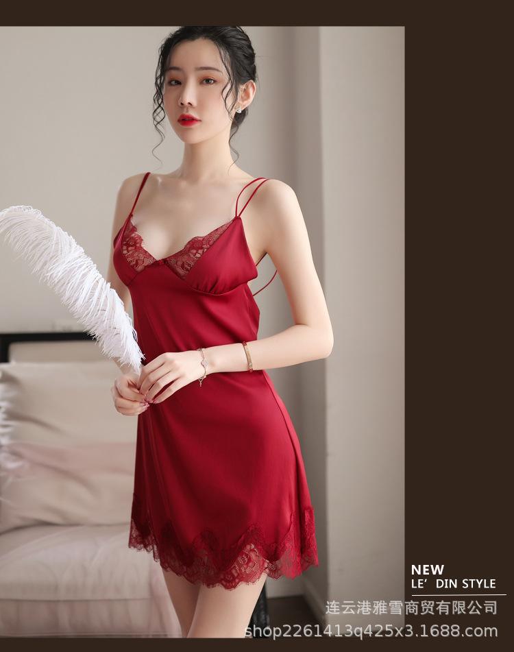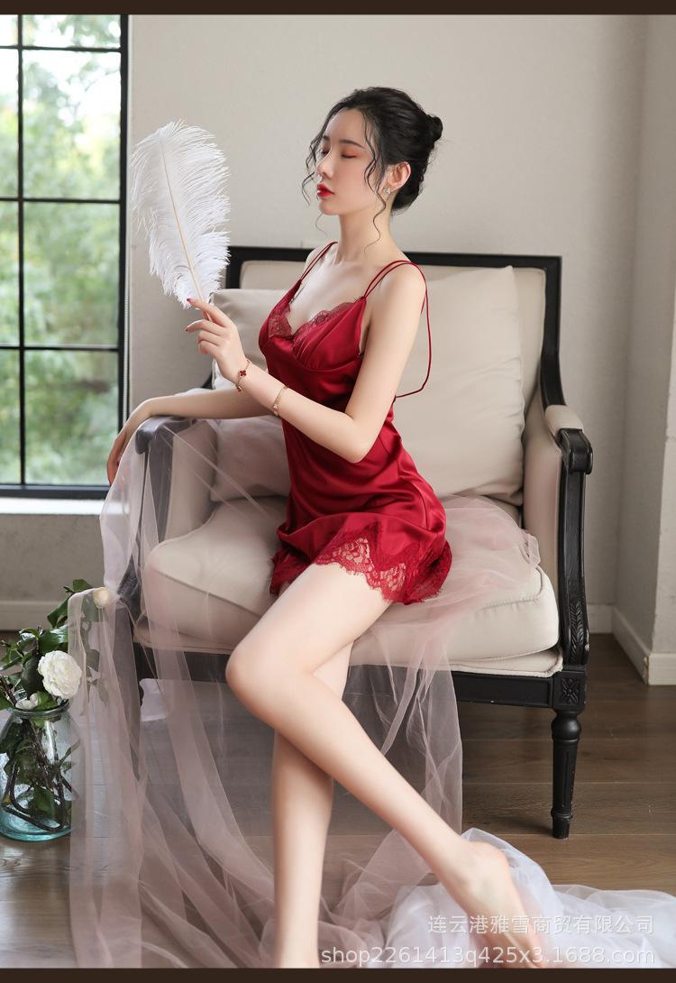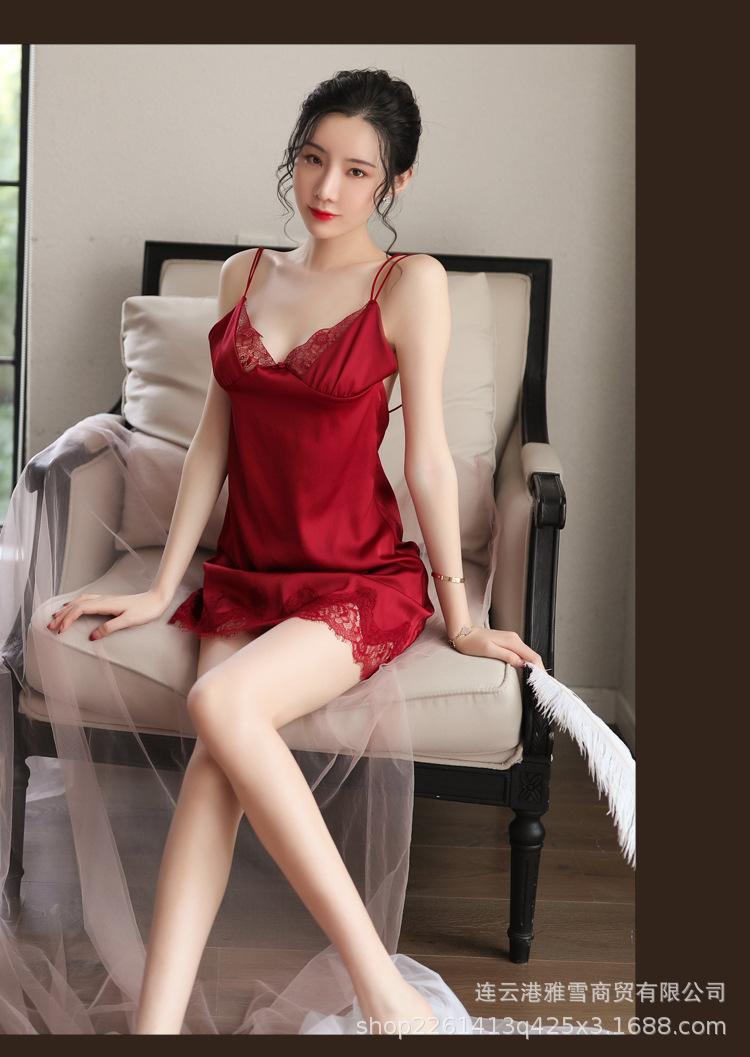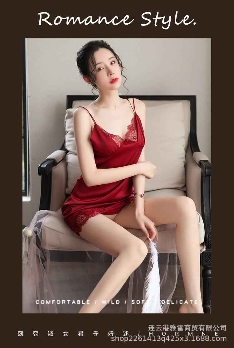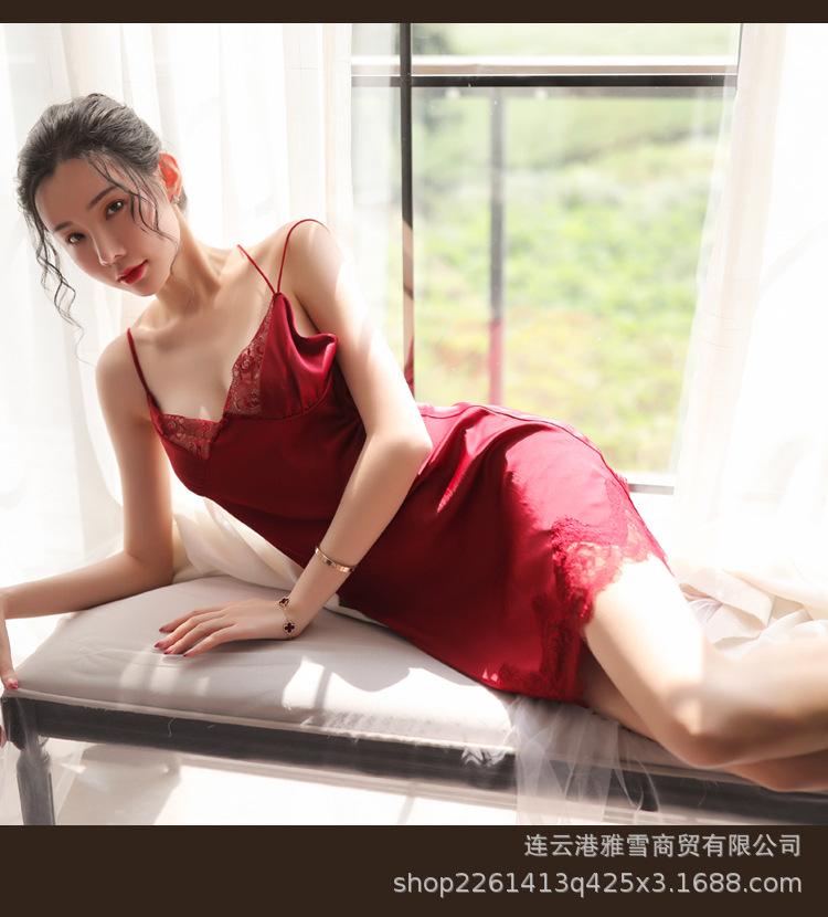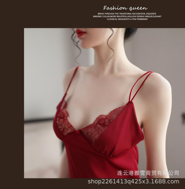 Camisón de verano con tirantes y encaje sexy, holgado, de satén y gasa, tentación, para mujer