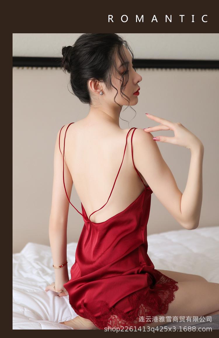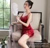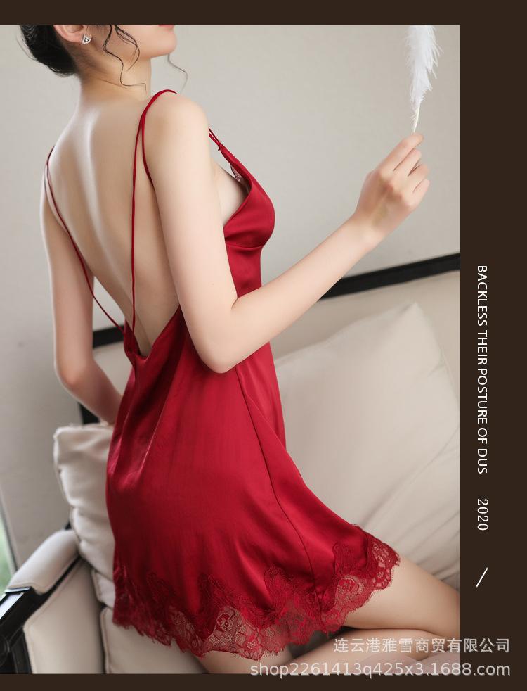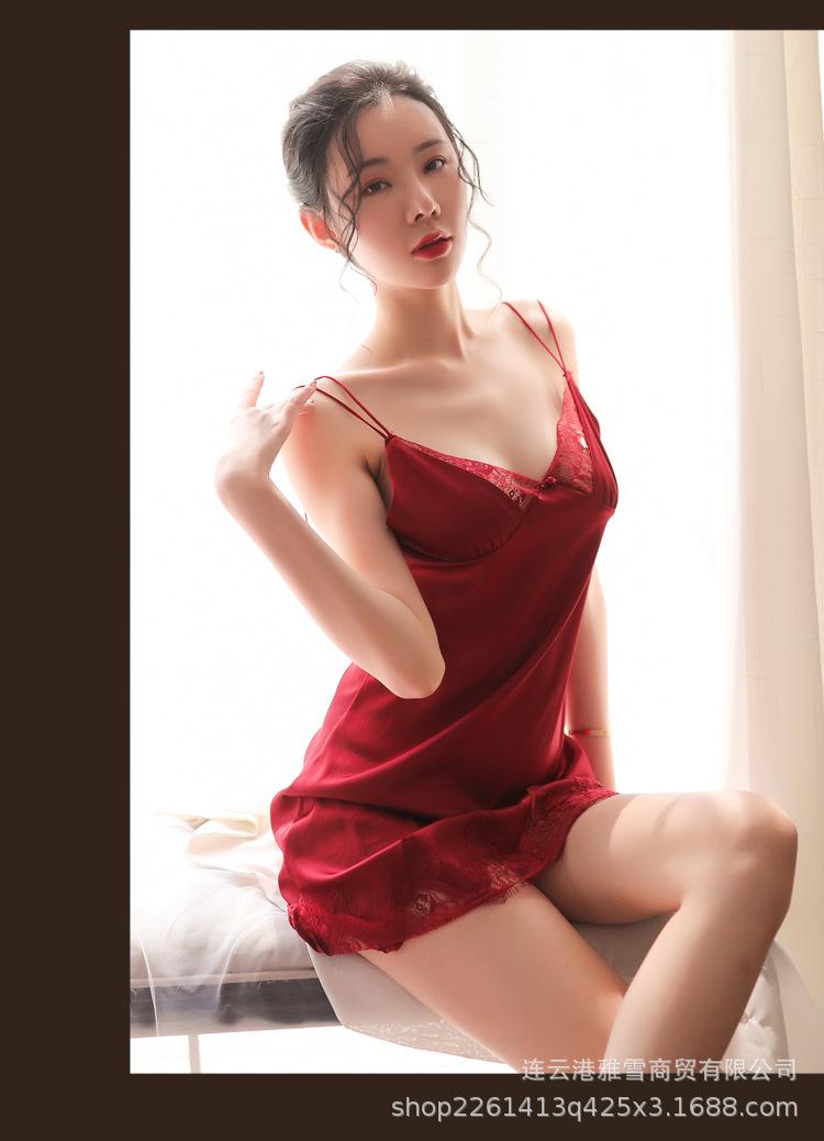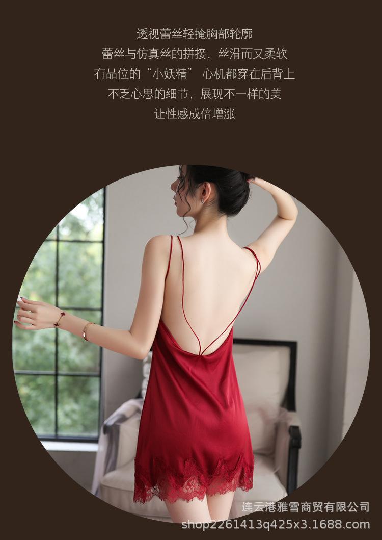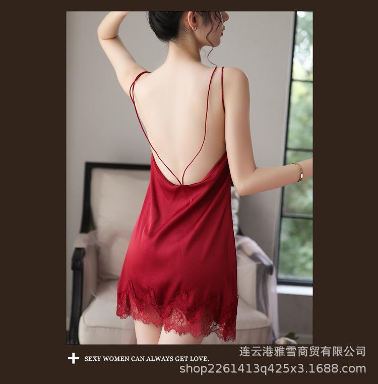 Camisón de verano con tirantes y encaje sexy, holgado, de satén y gasa, tentación, para mujer
