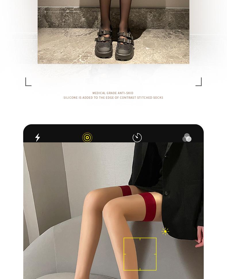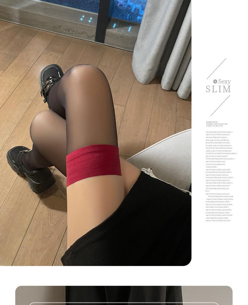 Medias negras S479 para mujer, de seda, antigancho, duraderas, con borde rojo fino, de silicona, antideslizantes, largas, hasta la rodilla, fabricantes de medias de pantorrilla