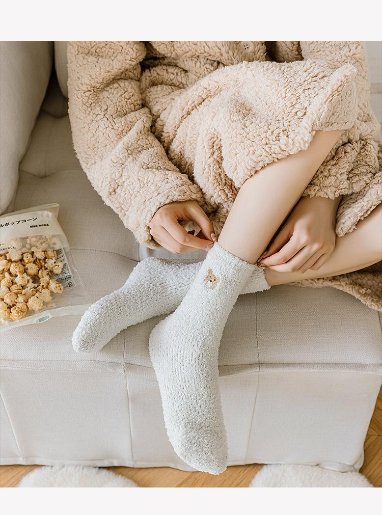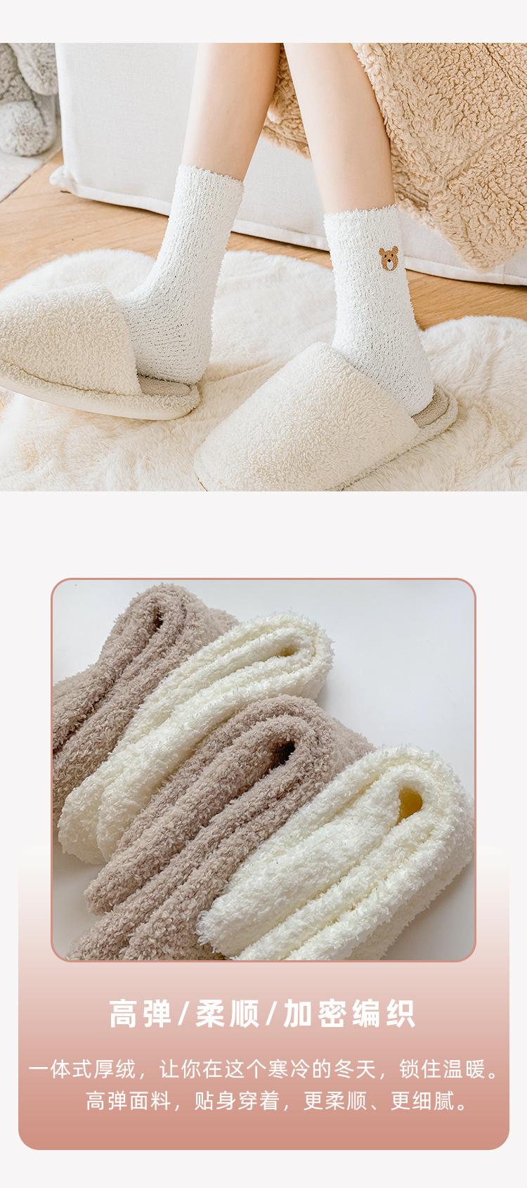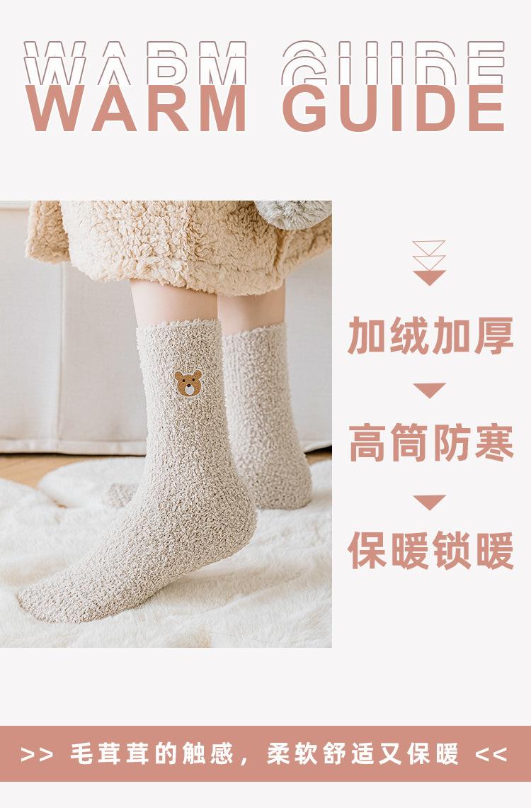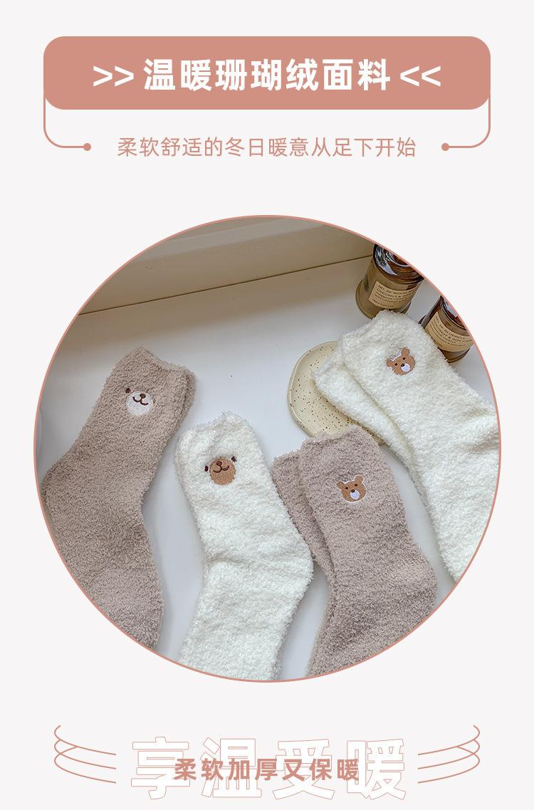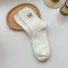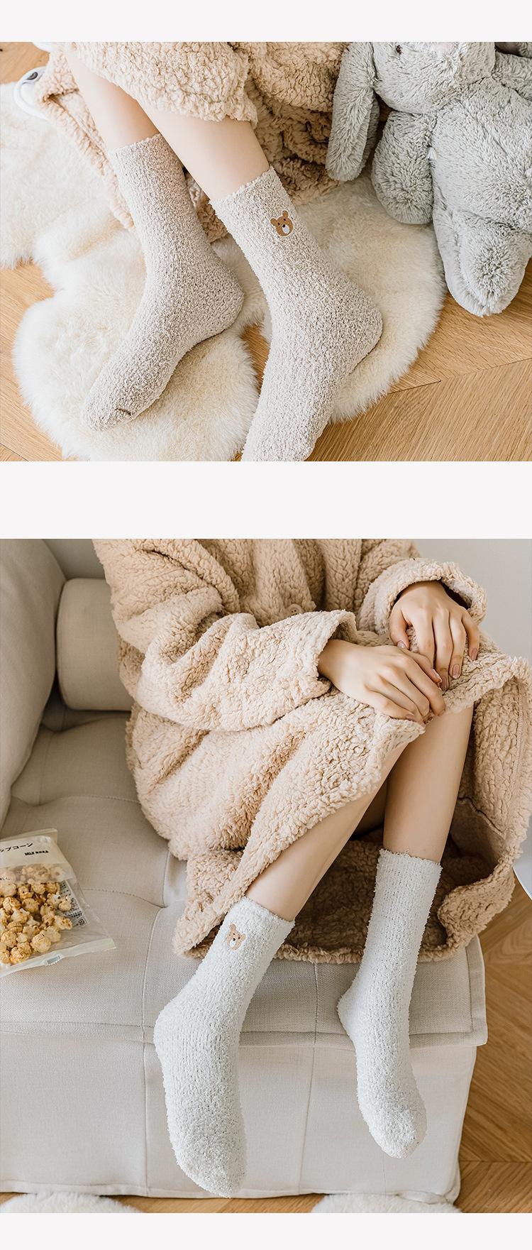 Calcetines de terciopelo coral para mujer otoño e invierno más terciopelo grueso cálido calcetines de tubo medio calcetines de felpa para dormir bordados con oso japonés
