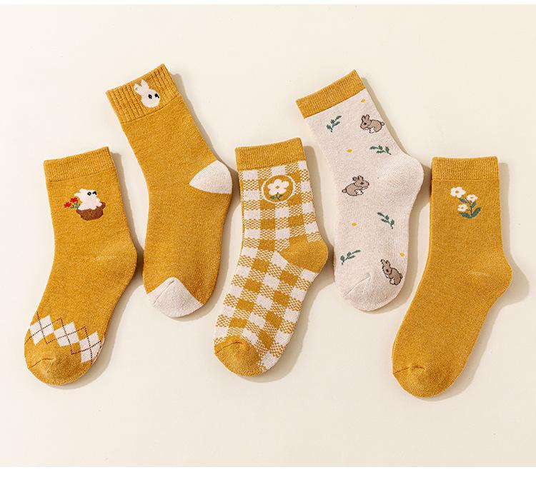 Khaki, 3 small flowers, Plaid, Bunny, small red flower animal, Mixed color delivery