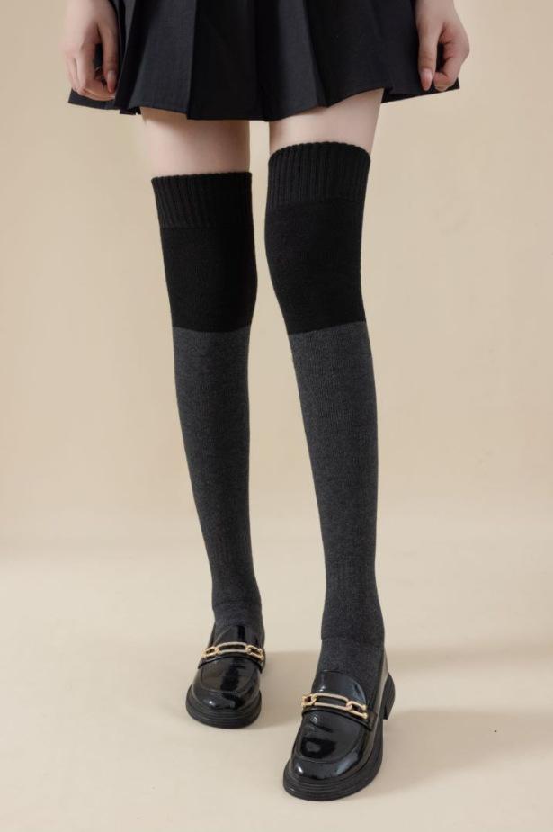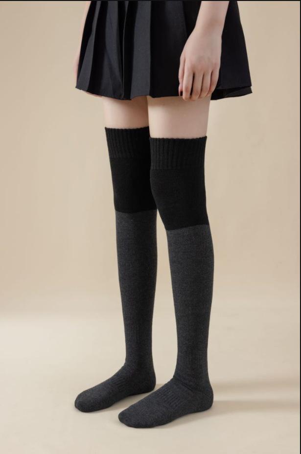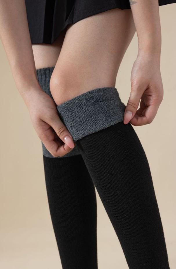 Calcetines mujer engrosados invierno costura rizo tubo largo calcetines hasta la rodilla cálidos otoño e invierno medias negras calcetines hasta la rodilla mayoreo