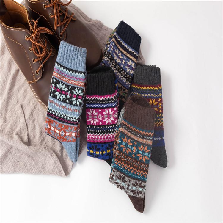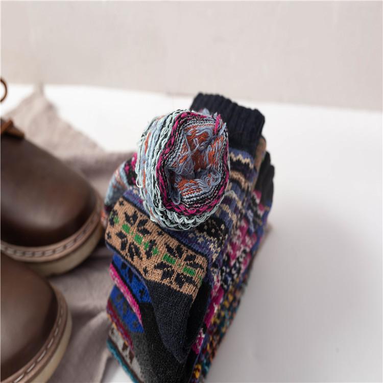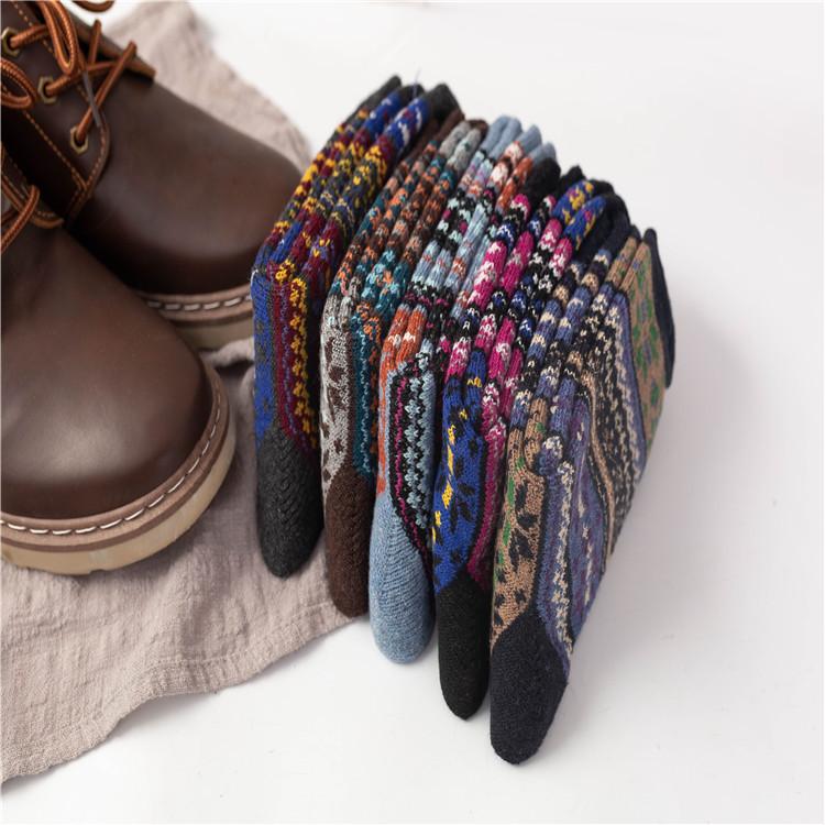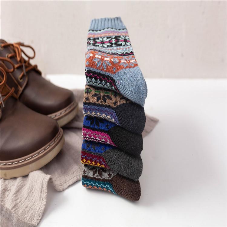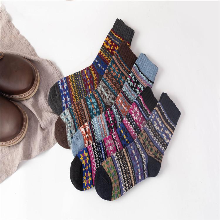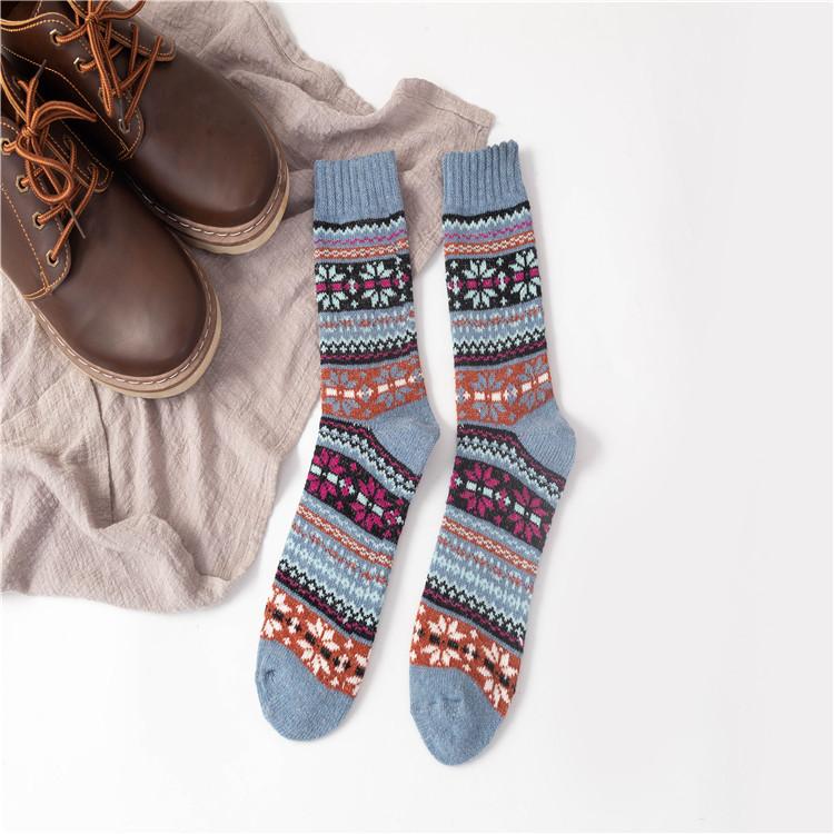 Calcetines de invierno nuevos de Amazon para comercio exterior para hombres y mujeres, calcetines gruesos de lana de conejo étnicos, calcetines para mujeres europeas y americanas.