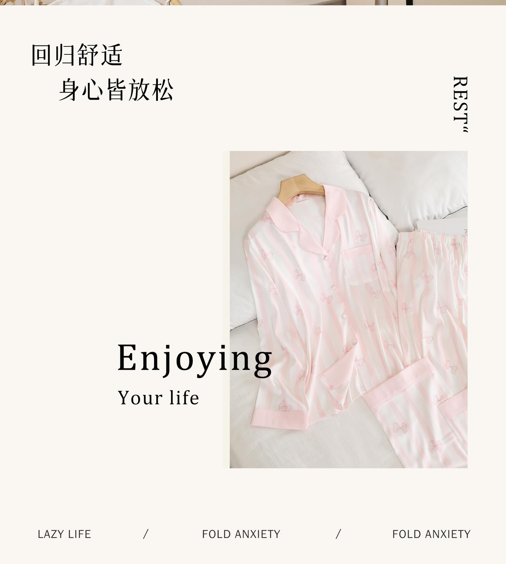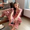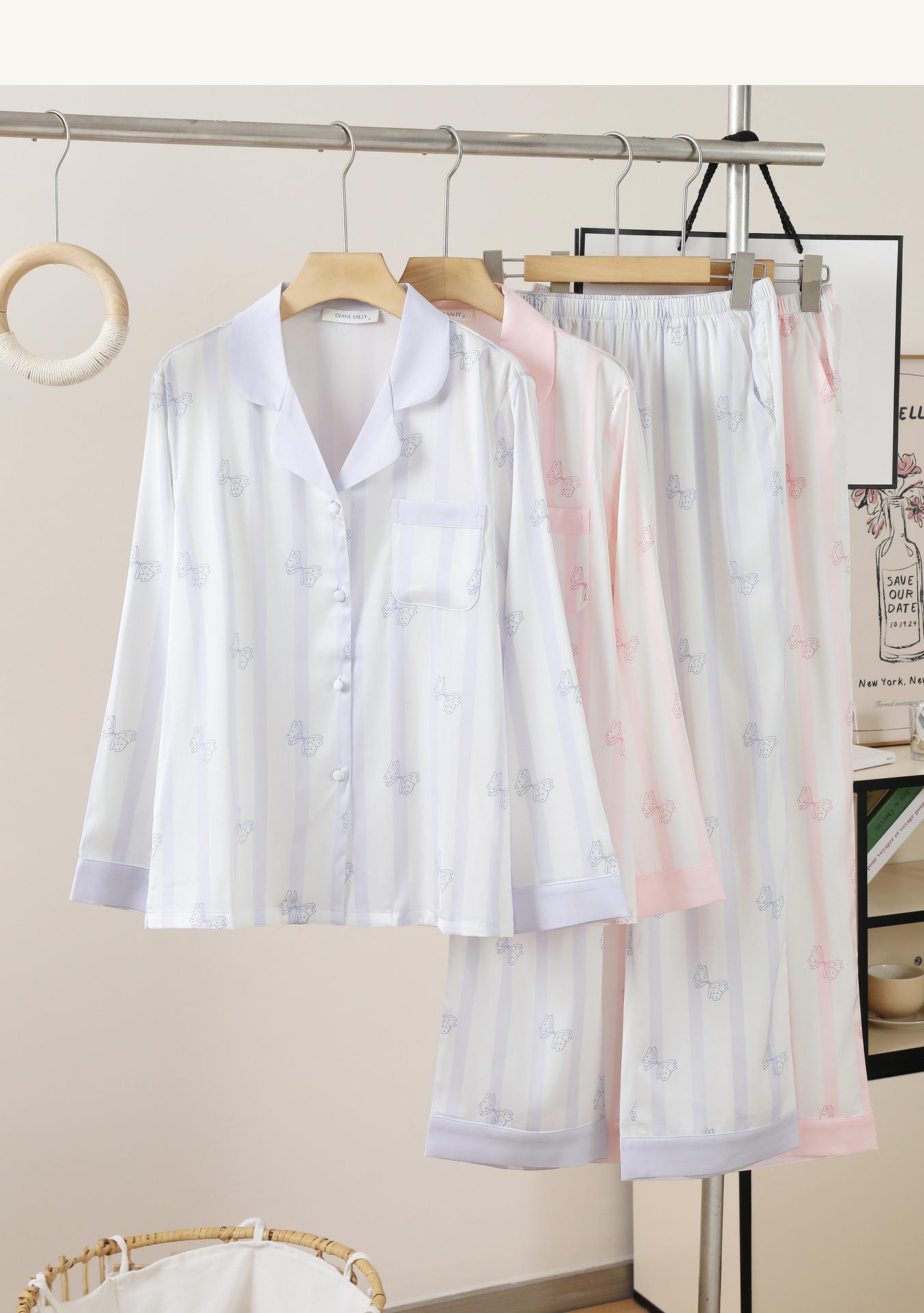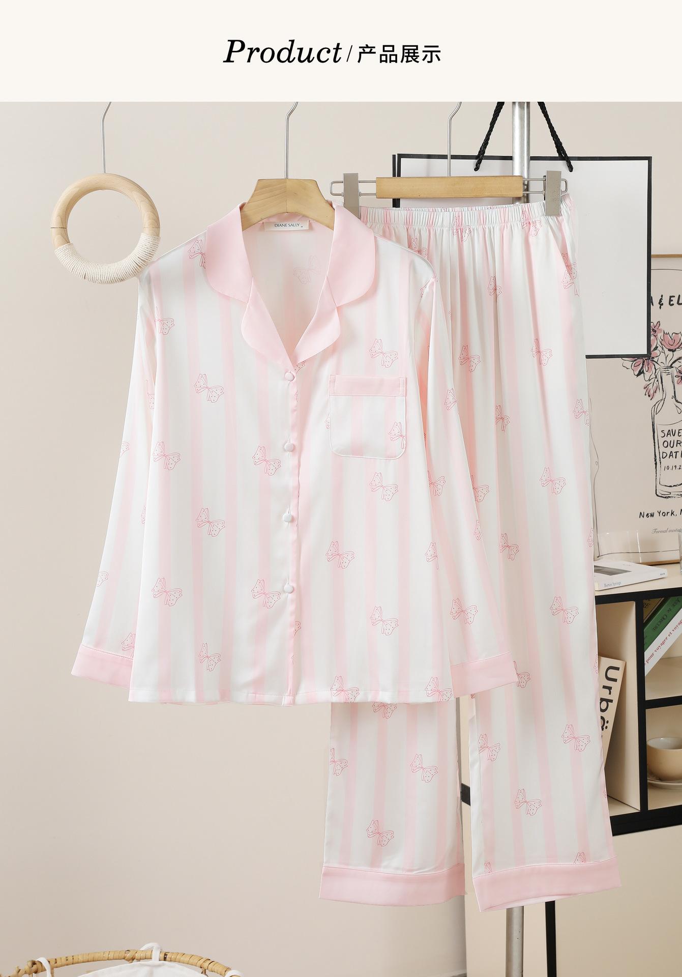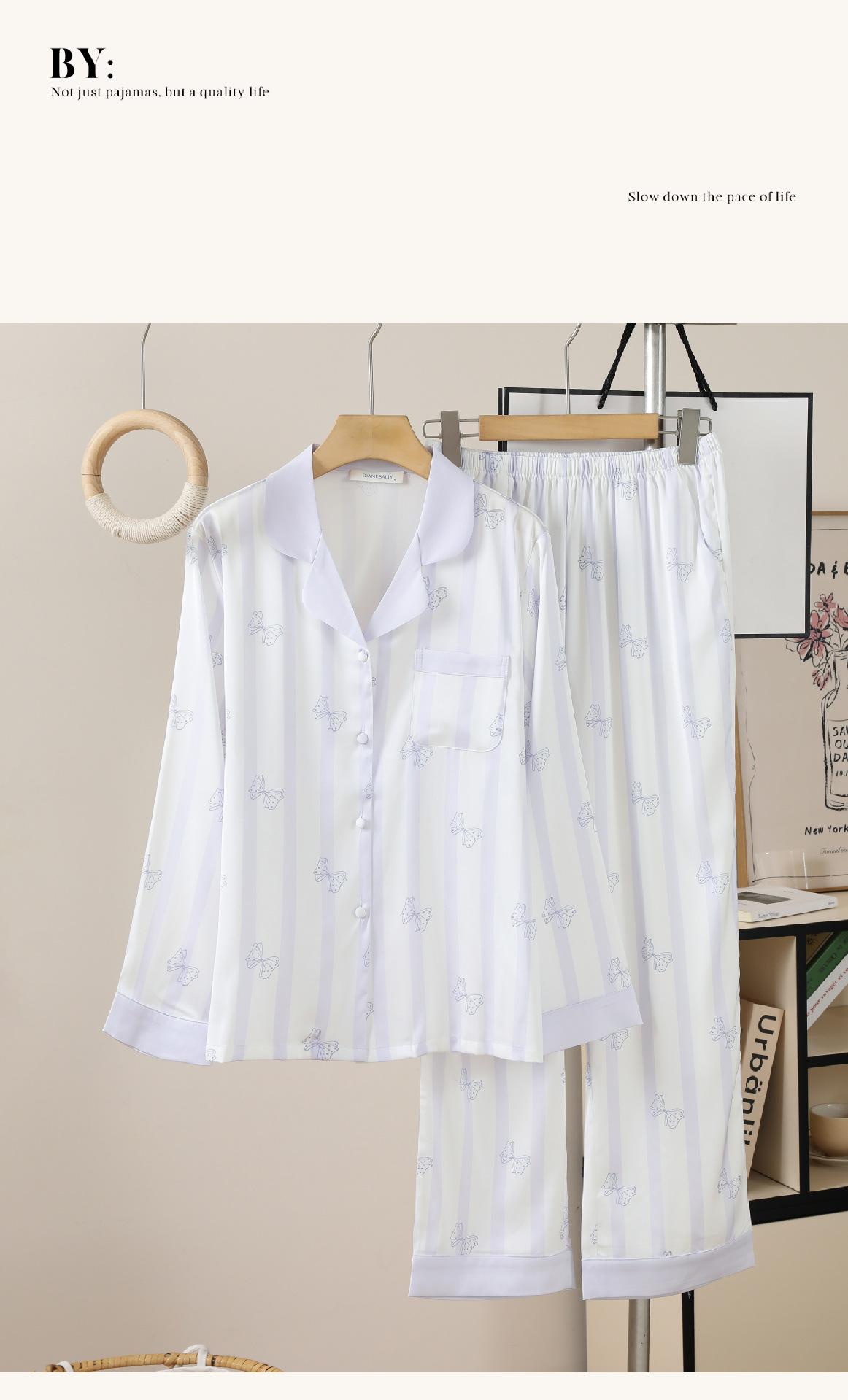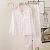 Pijamas Franceses para Mujer Primavera y Otoño Seda de Hielo Manga Larga Pantalón Conjunto de Dos Piezas Pijamas Dulces de Seda Estampada Ropa para el Hogar