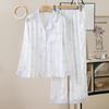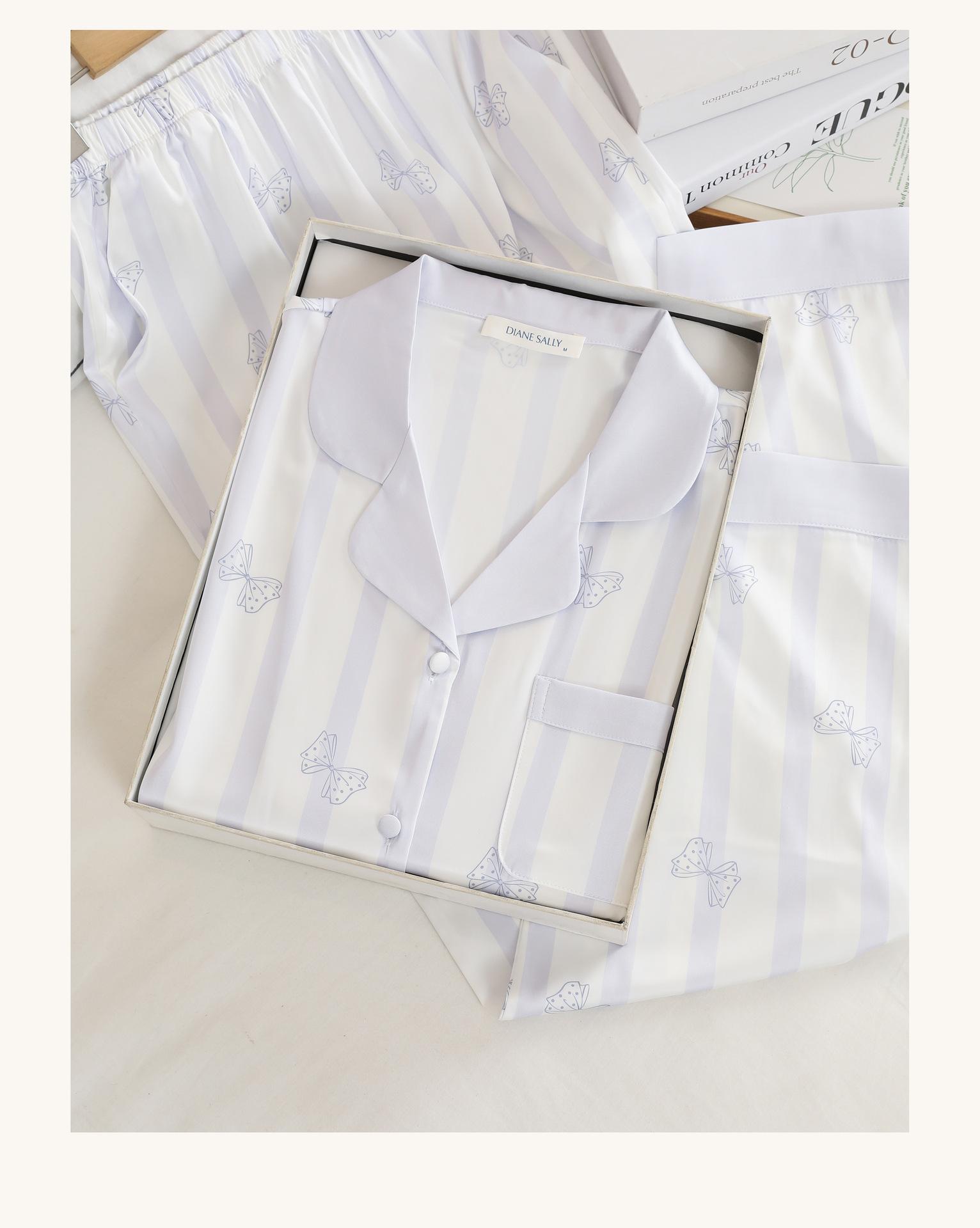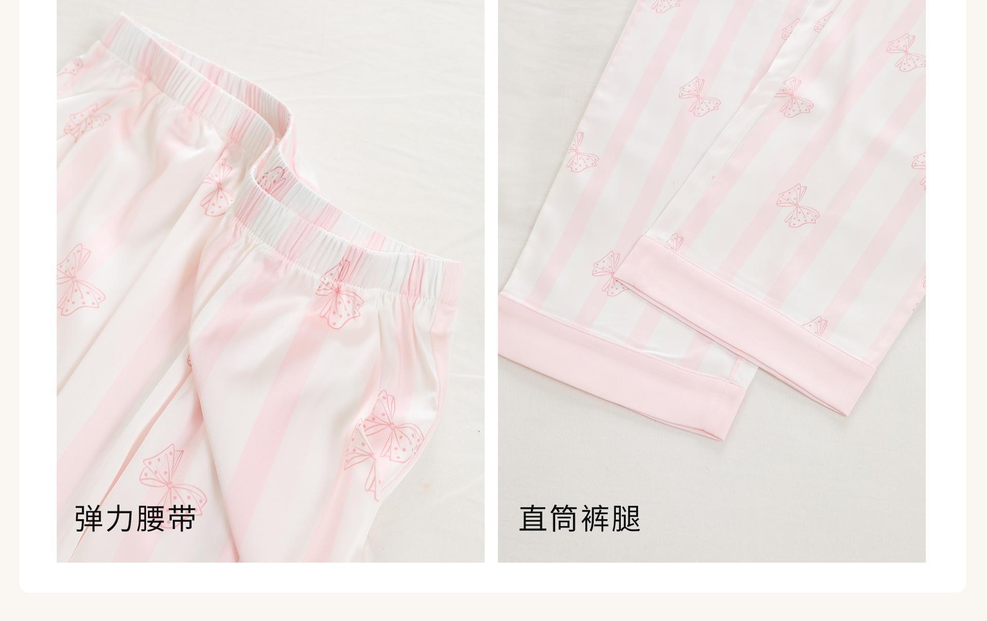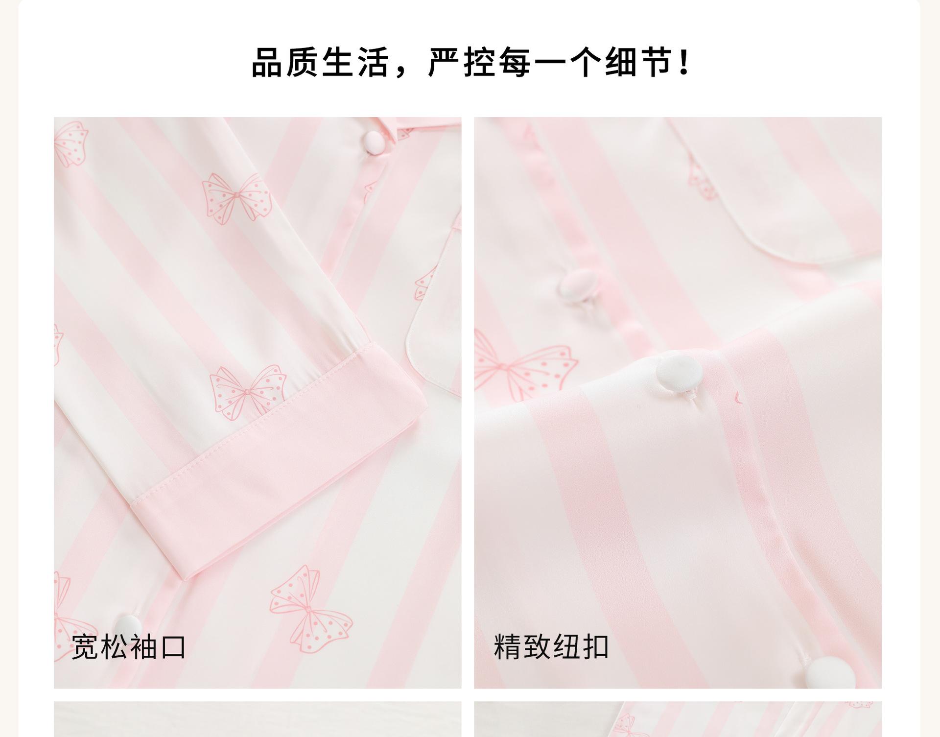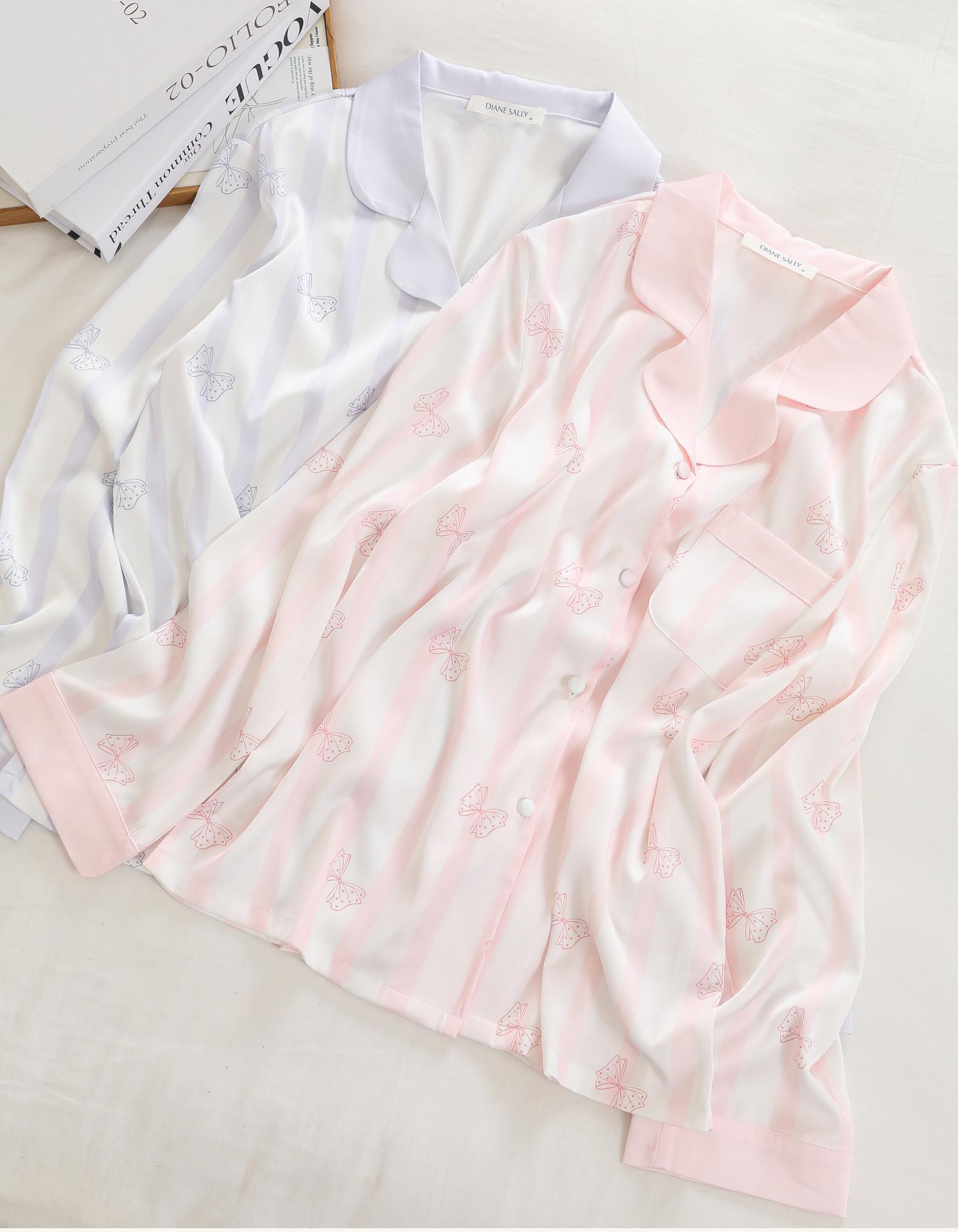 Pijamas Franceses para Mujer Primavera y Otoño Seda de Hielo Manga Larga Pantalón Conjunto de Dos Piezas Pijamas Dulces de Seda Estampada Ropa para el Hogar