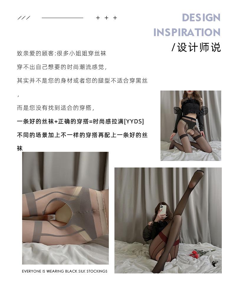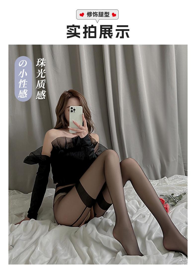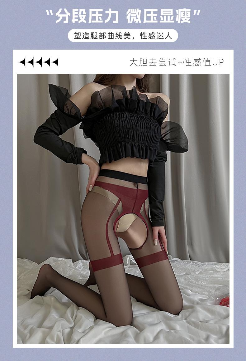 Medias Divertidas Sexy Seda Negra Tentación Archivo Abierto Gratis Medias de Tira Falsa Color de Contraste Set de Braguitas Falsas Medias
