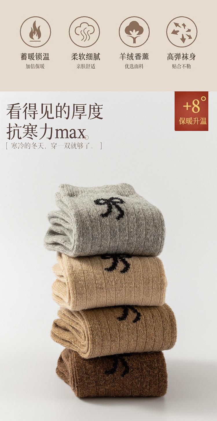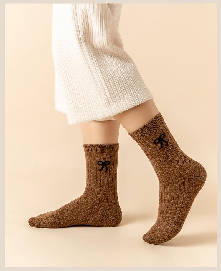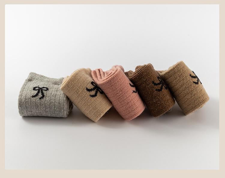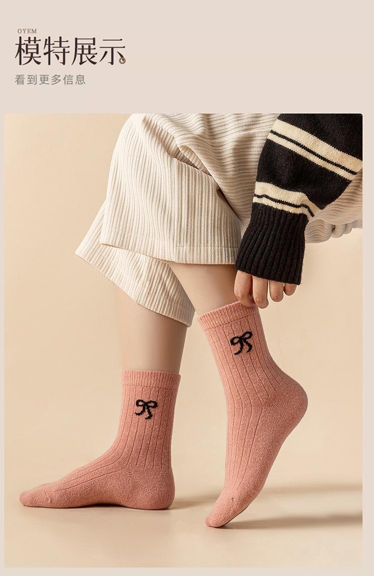 Calcetines para Mujer en Otoño e Invierno Nuevos Engrosados Aromaterapia Lazo Estilo Dulce Cálidos y Resistentes al Frío Calcetines de Piso de Tubo Medio Calcetines de Lana