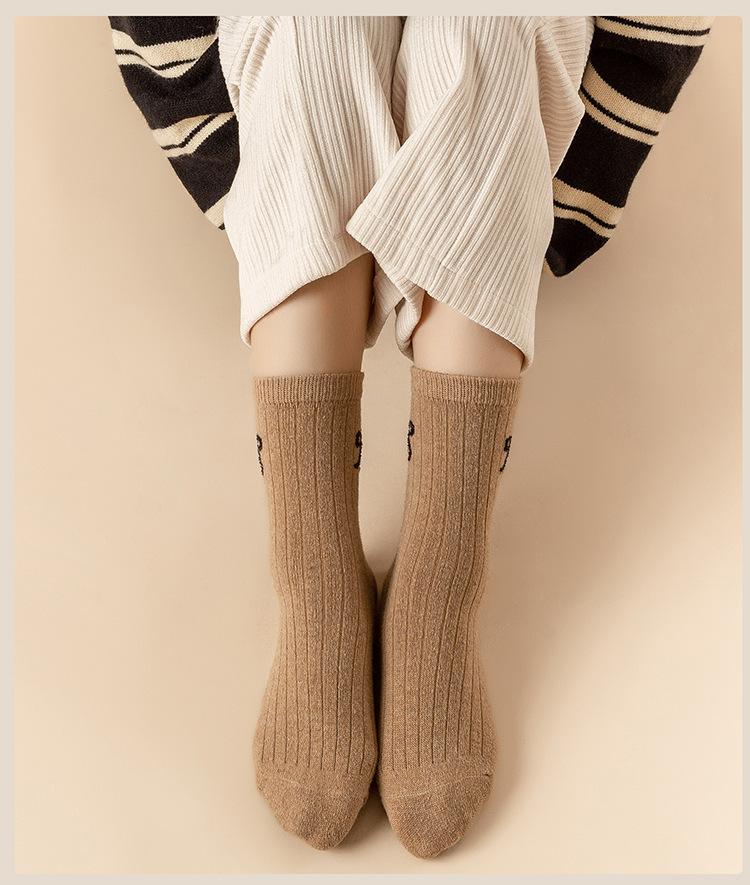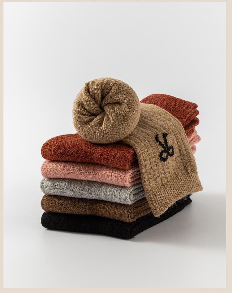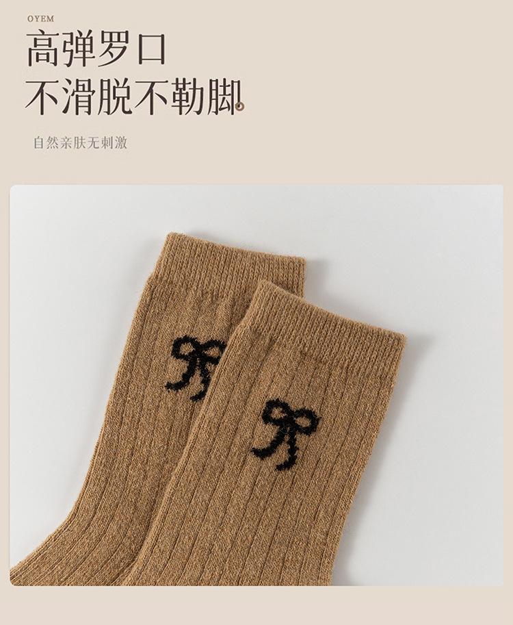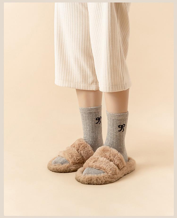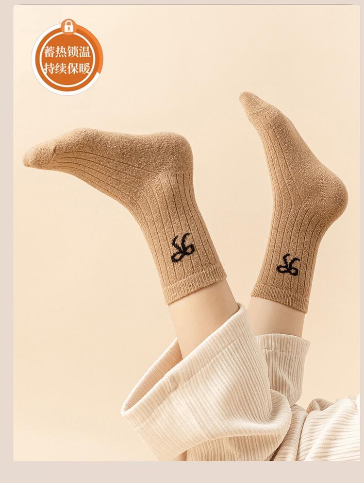 Calcetines para Mujer en Otoño e Invierno Nuevos Engrosados Aromaterapia Lazo Estilo Dulce Cálidos y Resistentes al Frío Calcetines de Piso de Tubo Medio Calcetines de Lana