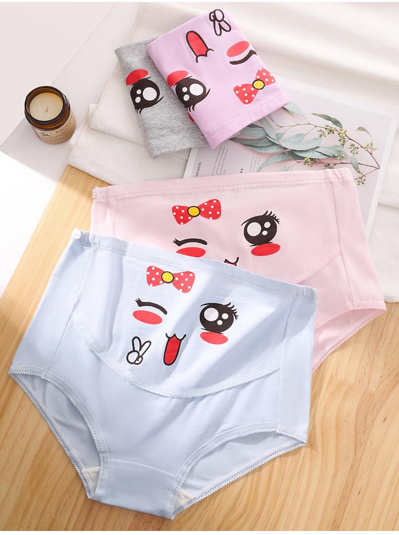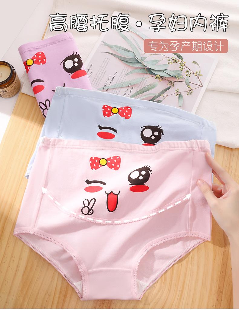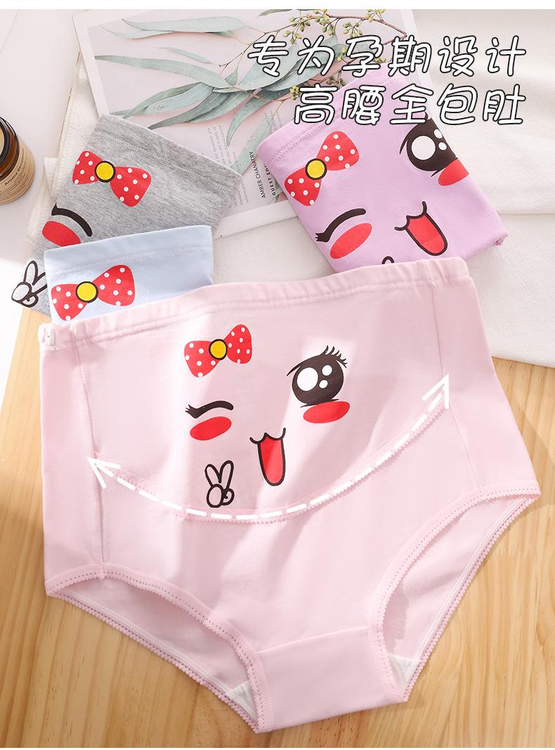 (Paquete de cinco) Ropa Interior para Embarazadas Cintura Alta Soporte Abdominal Ropa Interior Ajustable para Embarazadas Patrón de Estampado y Teñido de Dibujos Animados Postparto Talla Grande