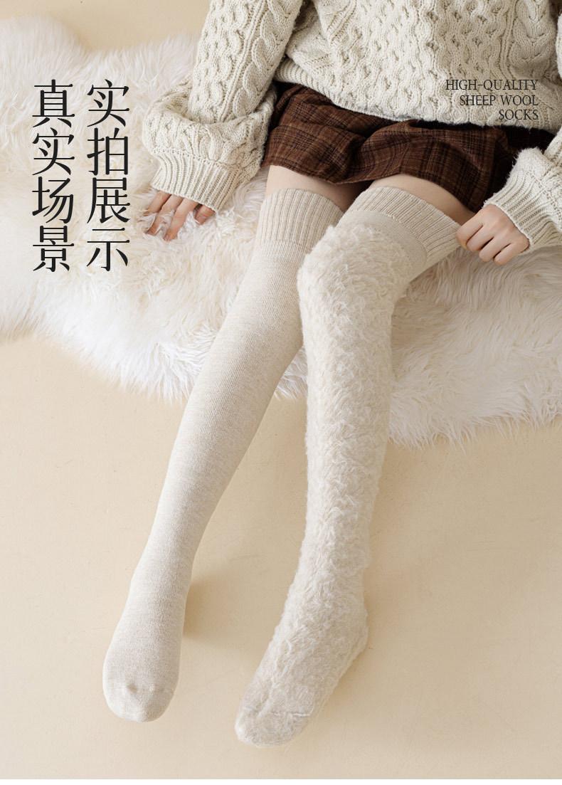 Calcetines por encima de la rodilla para niños para invierno profundo de lana con calefacción cálidos extra gruesos forrados de vellón suave ceroso rizo muslo antideslizantes tubo largo delgado