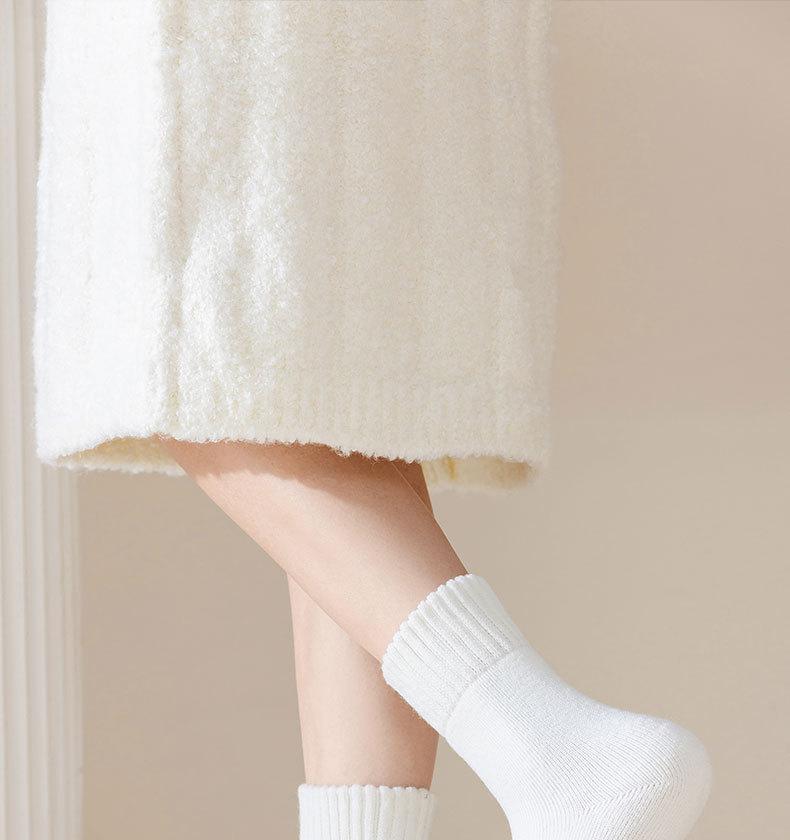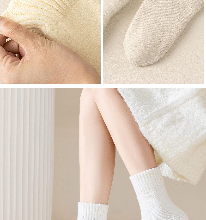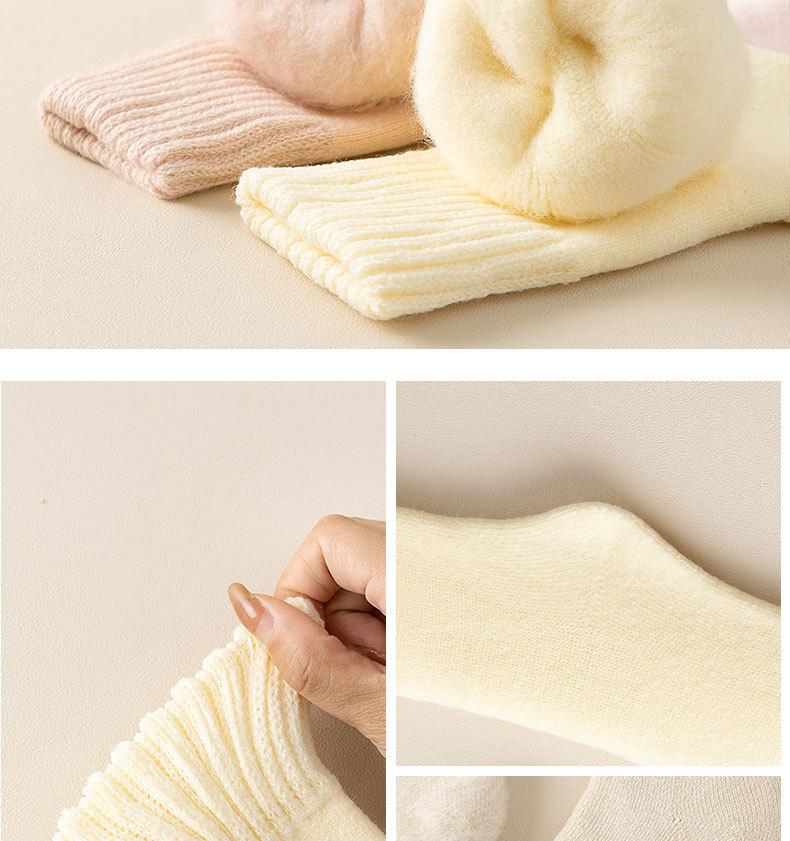 Calcetines para Mujer Otoño e Invierno Calcetines de Cachemira Color Sólido Cerda Media Caña Calcetines Acolchados Gruesos con Forro Polar Calcetines Cálidos de Lana Afelpada