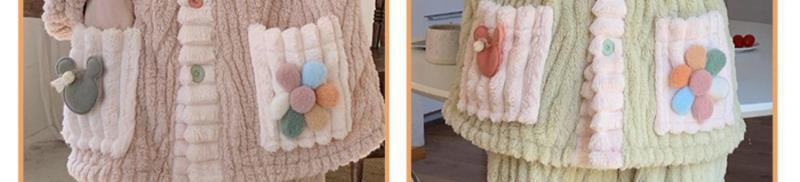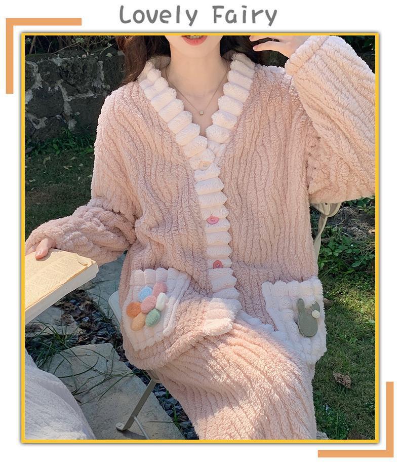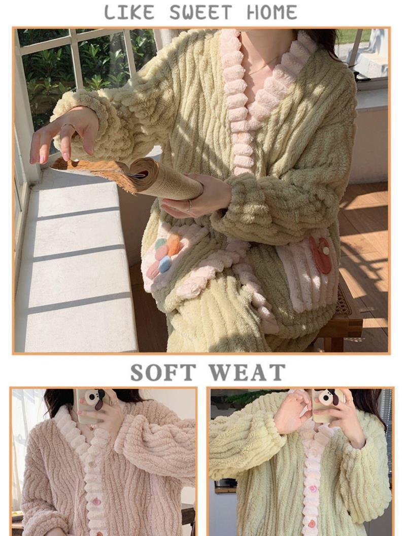 Pijama de Terciopelo Coral Blanco para Mujer Invierno con Forro Polar Grueso Flores Nuevo Primavera y Otoño Franela Traje Ropa de Casa