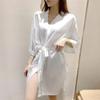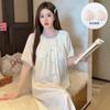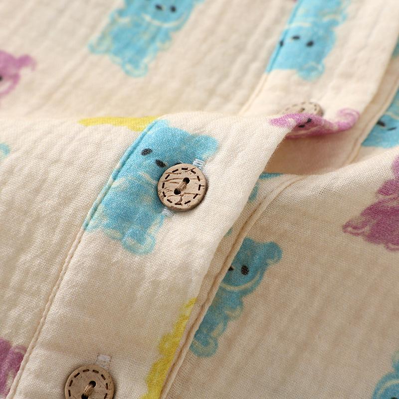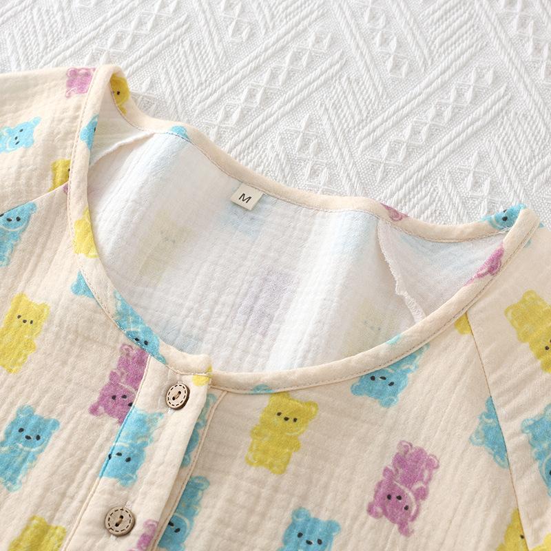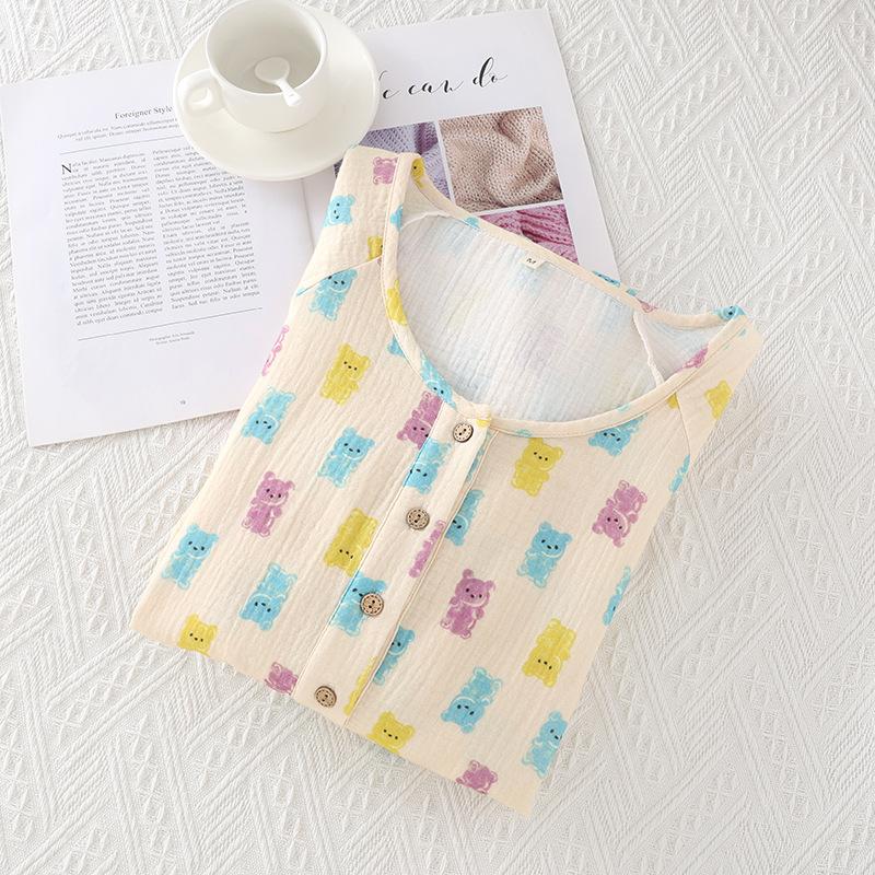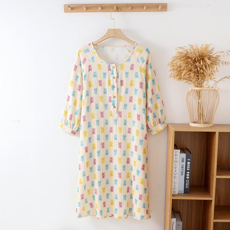 Camisón de Verano de Algodón Puro Nuevo Candy Bear para Mujer, Manga Tres Cuartos, Pijama de Gasa Fina, Longitud Media, Ropa Exterior, Vestido para Casa