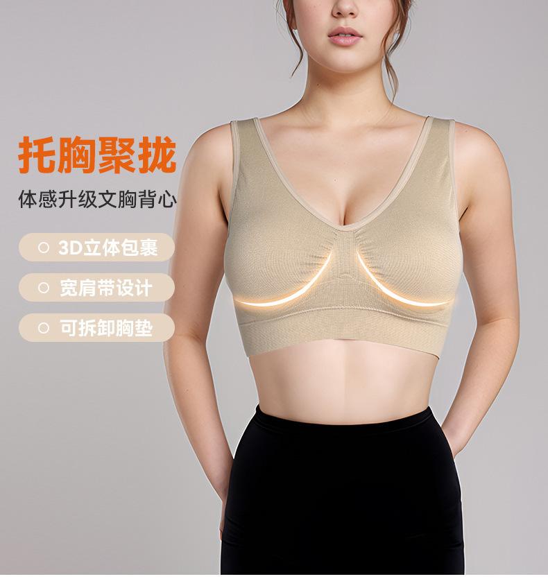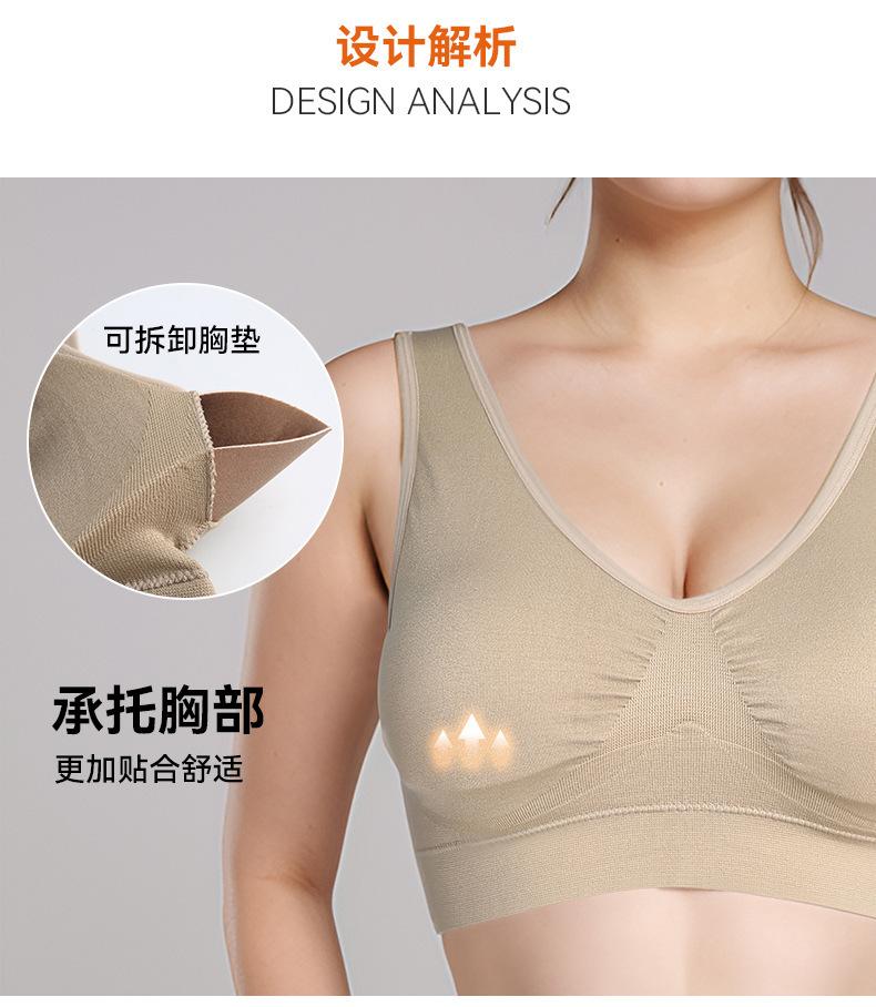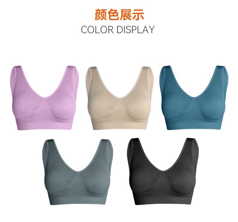 Sujetador tipo chaleco de talla grande con tirantes anchos, color sólido, sin costuras, sin aros de acero, con almohadilla para el pecho desmontable para mujer, estilo europeo y americano transfronterizo