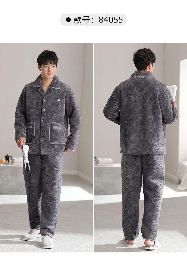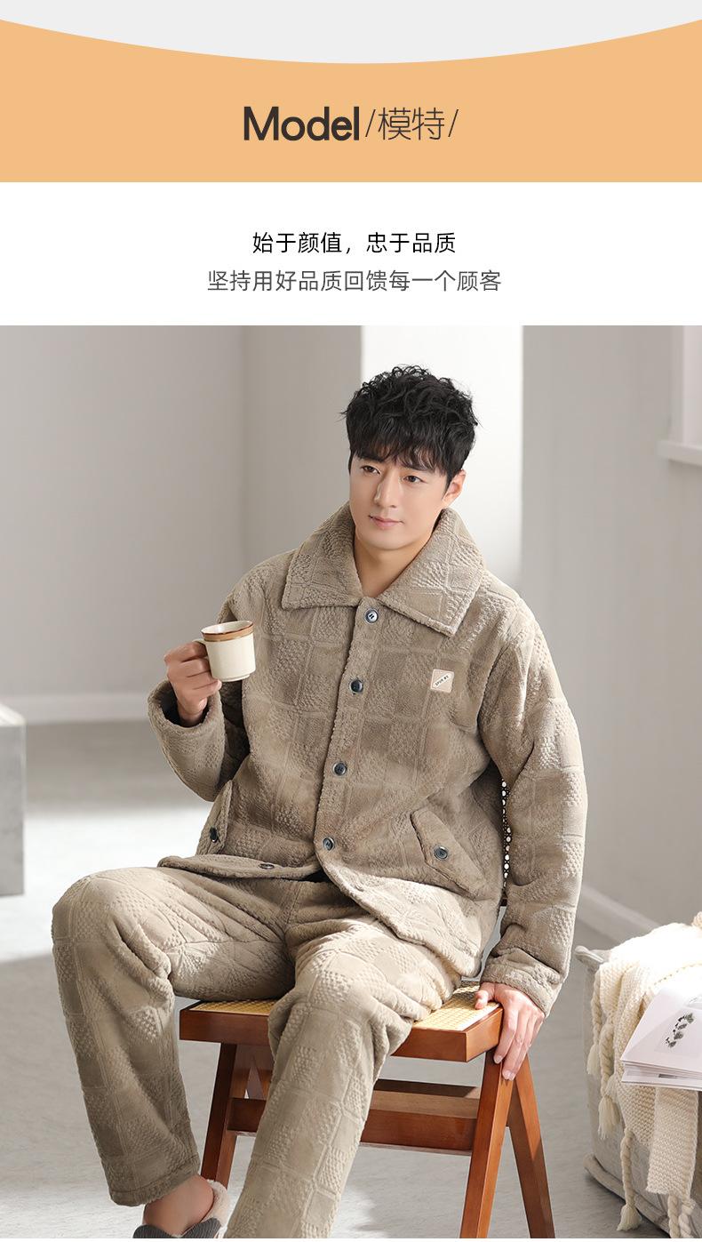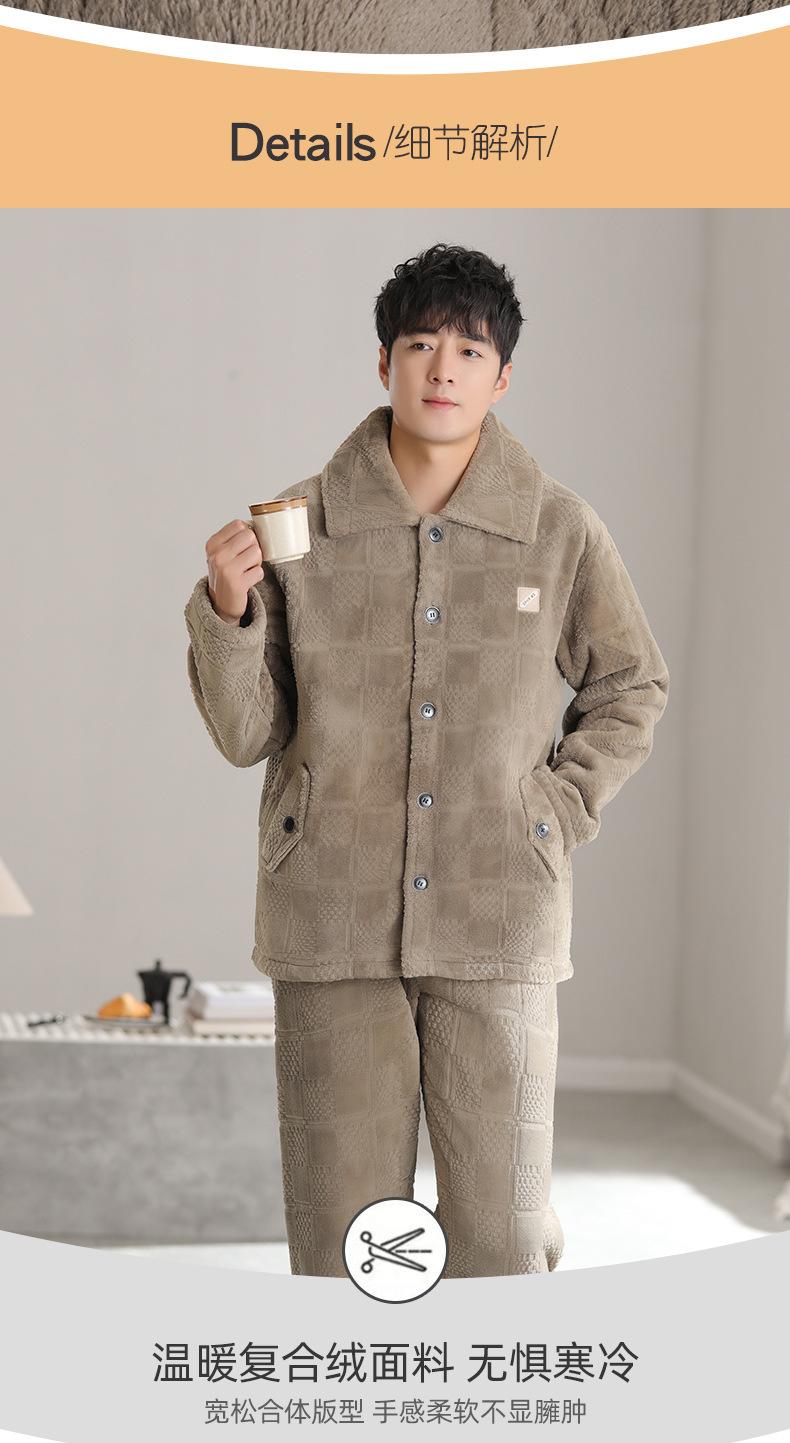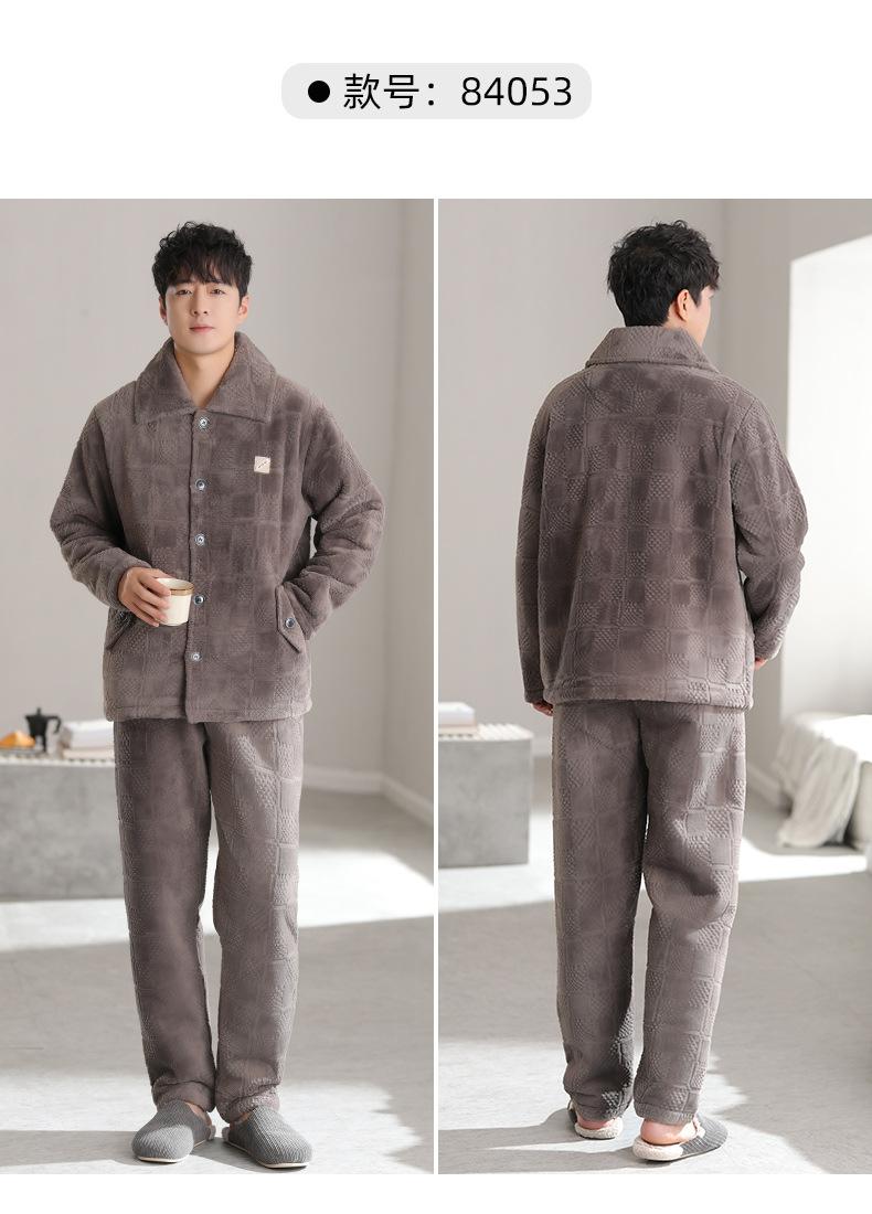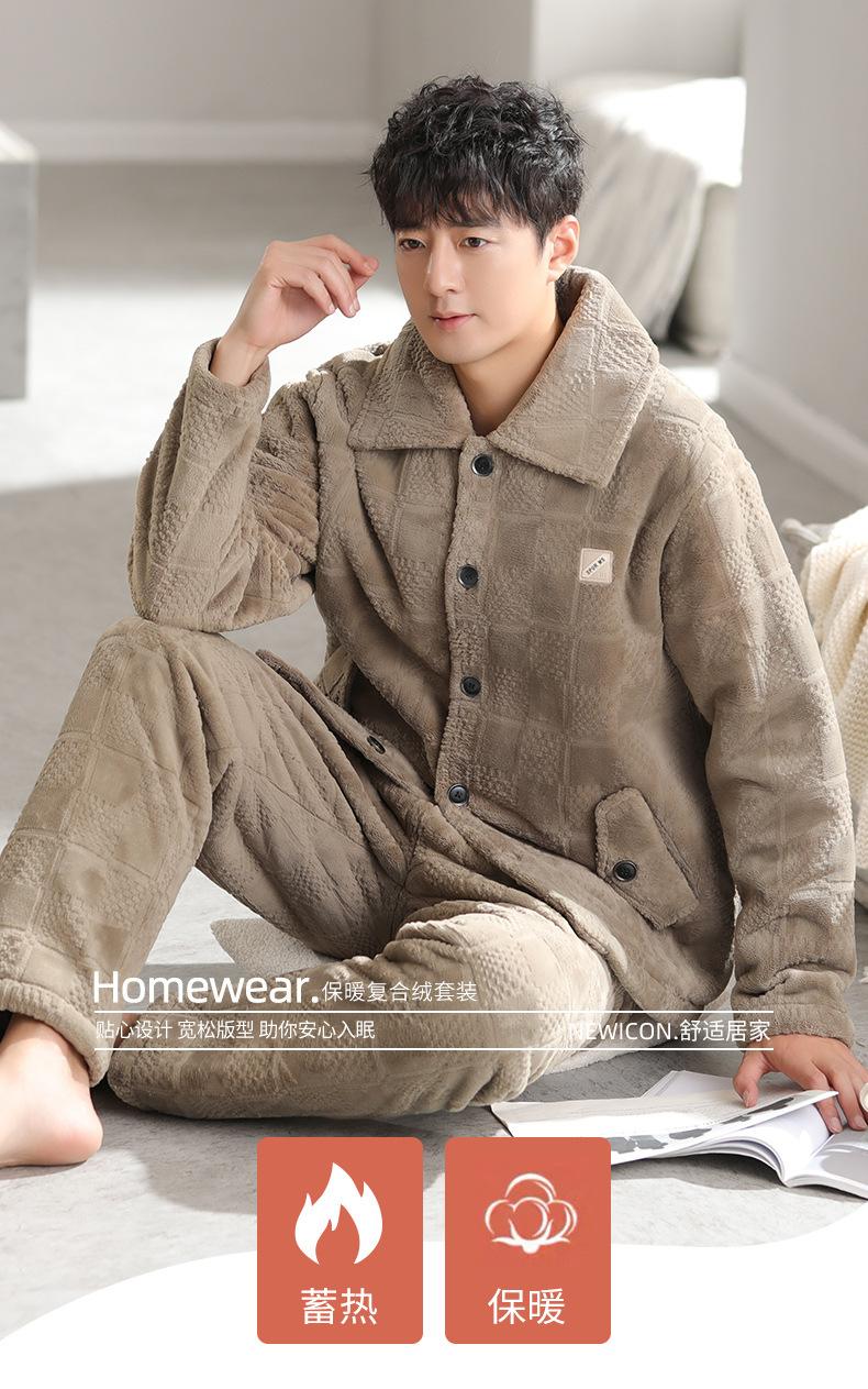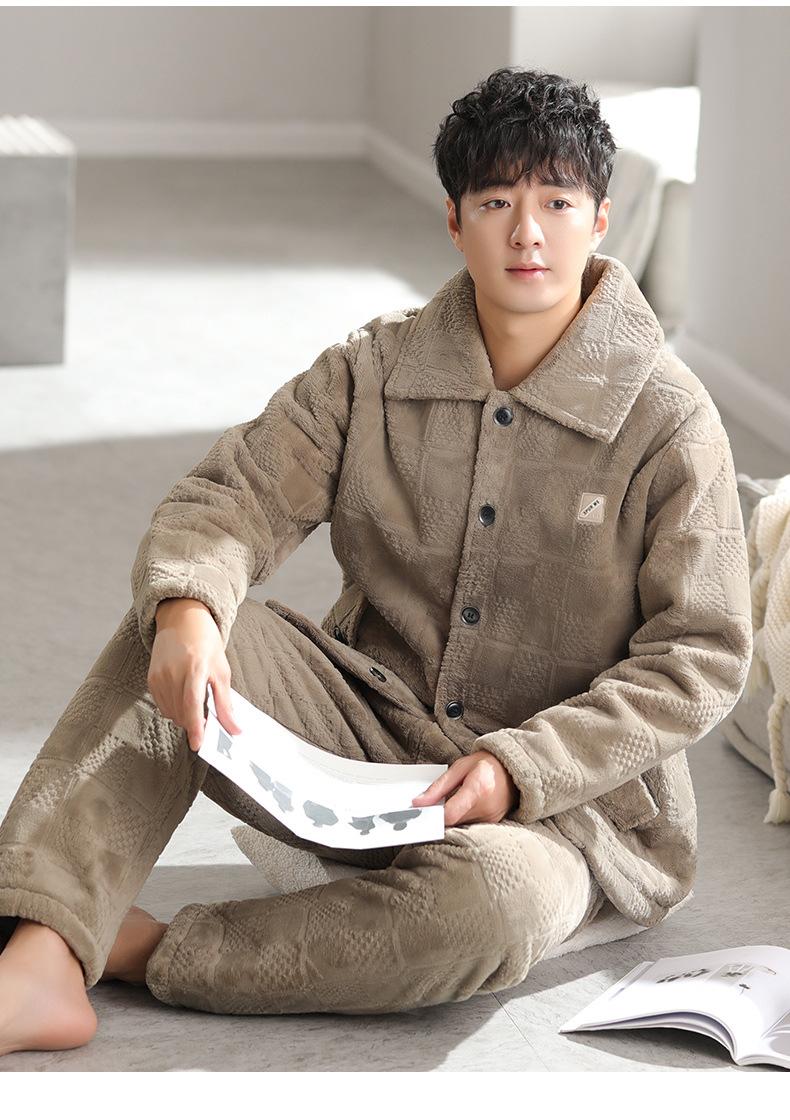 Pijama acolchado de doble capa para hombre, otoño e invierno, forro polar coral grueso, franela con forro polar, ropa para el hogar, traje de invierno