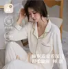Pijama de manga larga de punto de algodón puro de color liso sencillo para mujer, cárdigan informal con solapa, ropa de abrigo para el hogar, traje de primavera y otoño