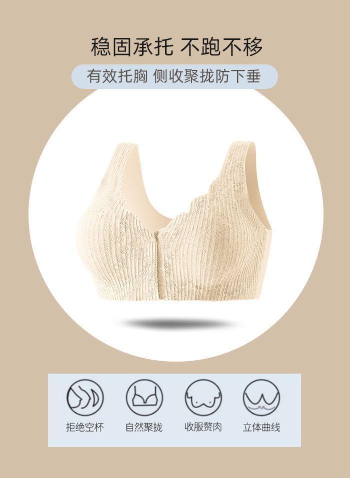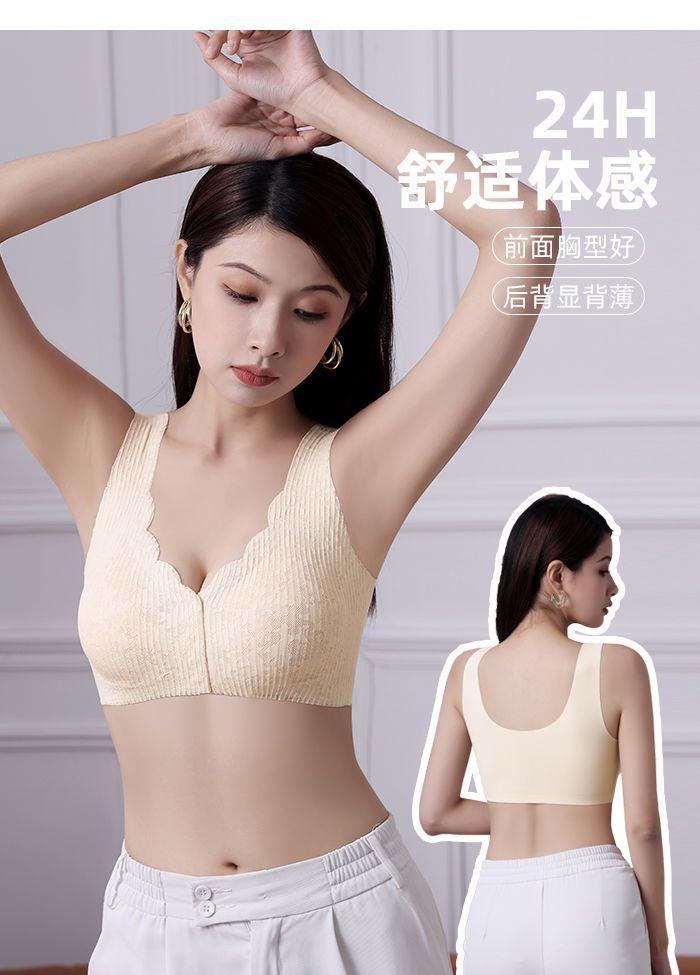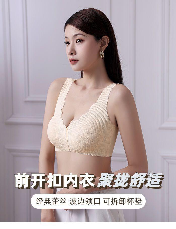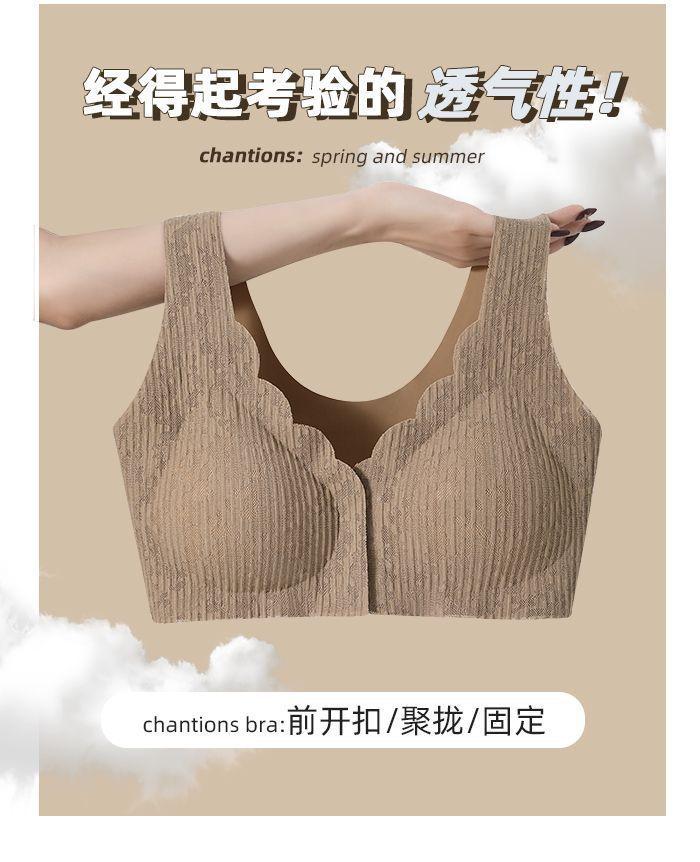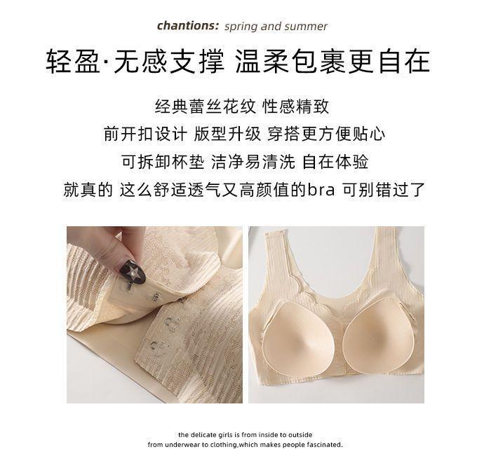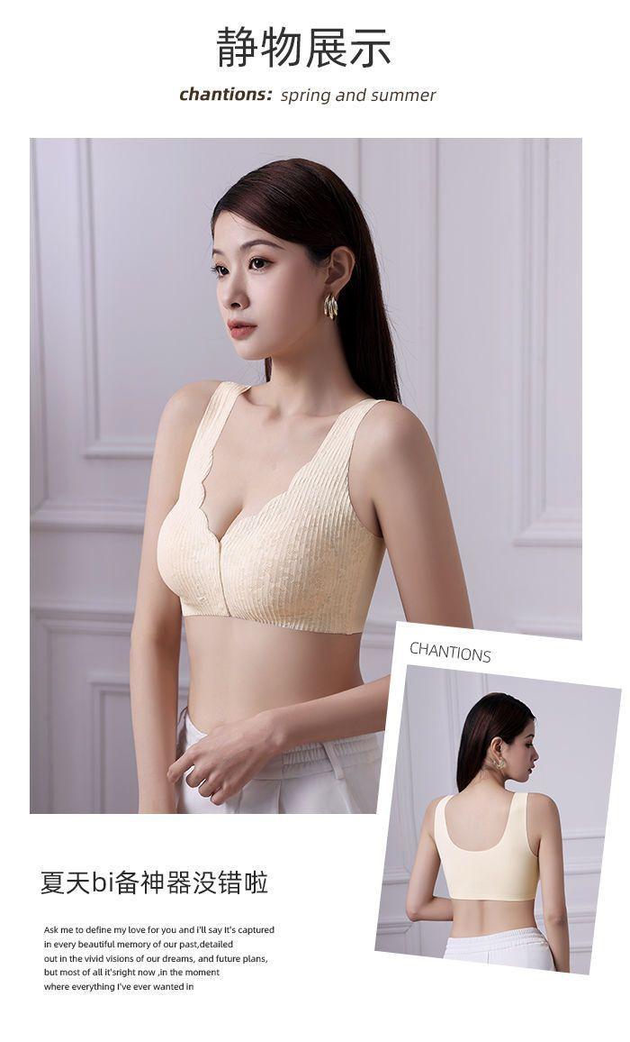 Ropa interior fina y transpirable de verano con push-up de pecho grande y pequeño, con hebilla frontal de encaje, sin aro de acero y sin marcas.