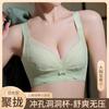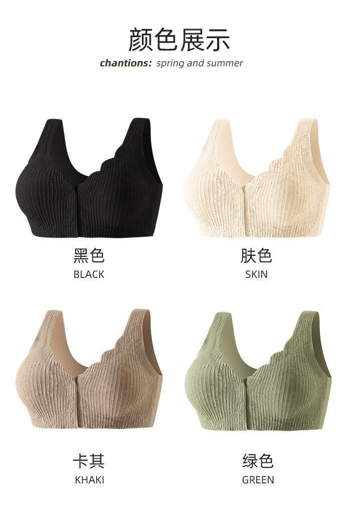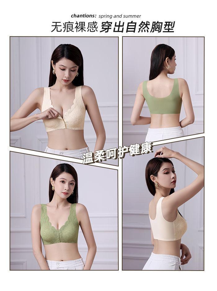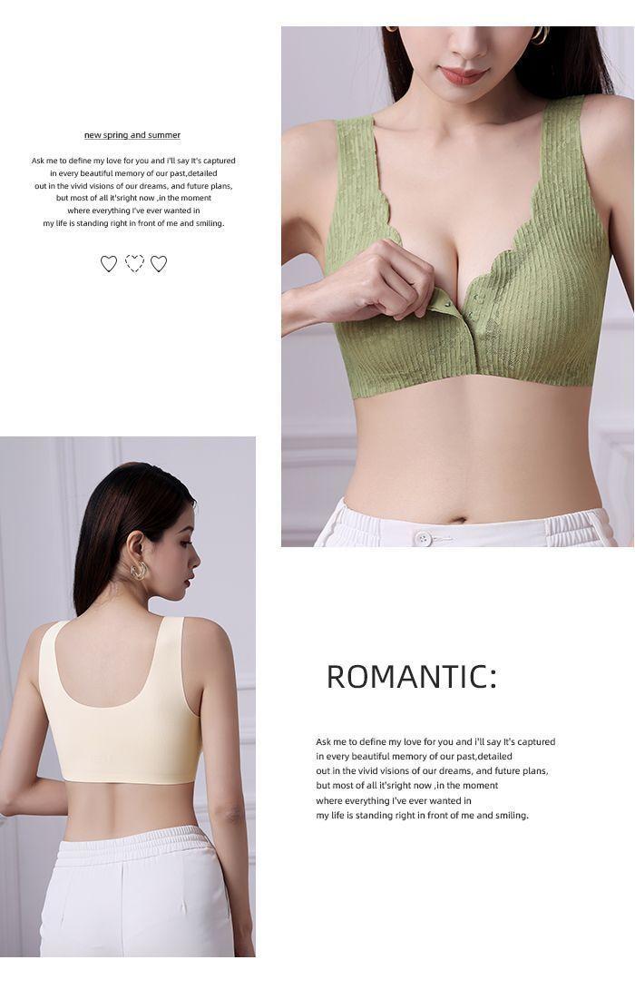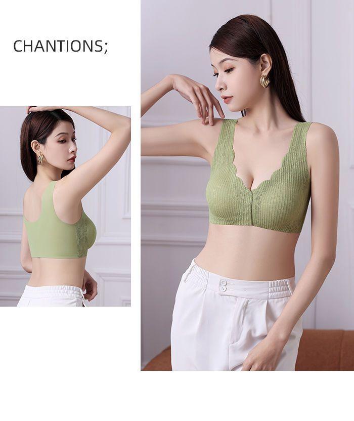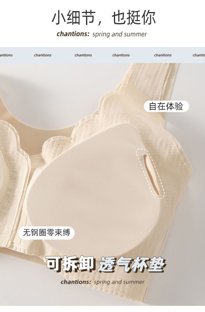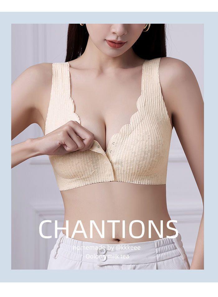Ropa interior fina y transpirable de verano con push-up de pecho grande y pequeño, con hebilla frontal de encaje, sin aro de acero y sin marcas.