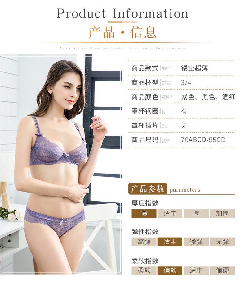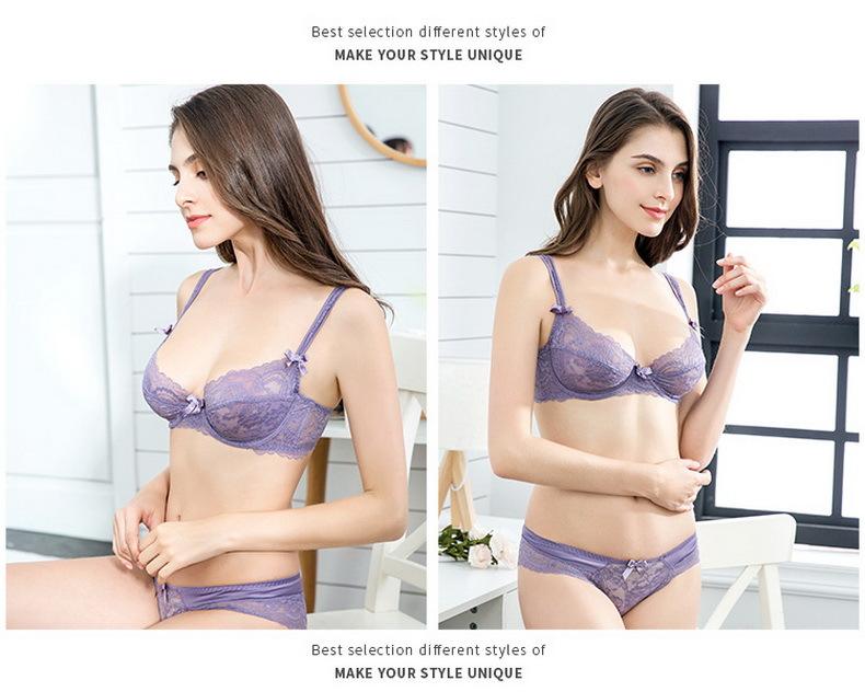 Conjunto de Sujetador Transparente Ultrafino de Encaje Suave para Mujer Sexy Transpirable Talla Grande Dropshipping Modelo Caliente 9188