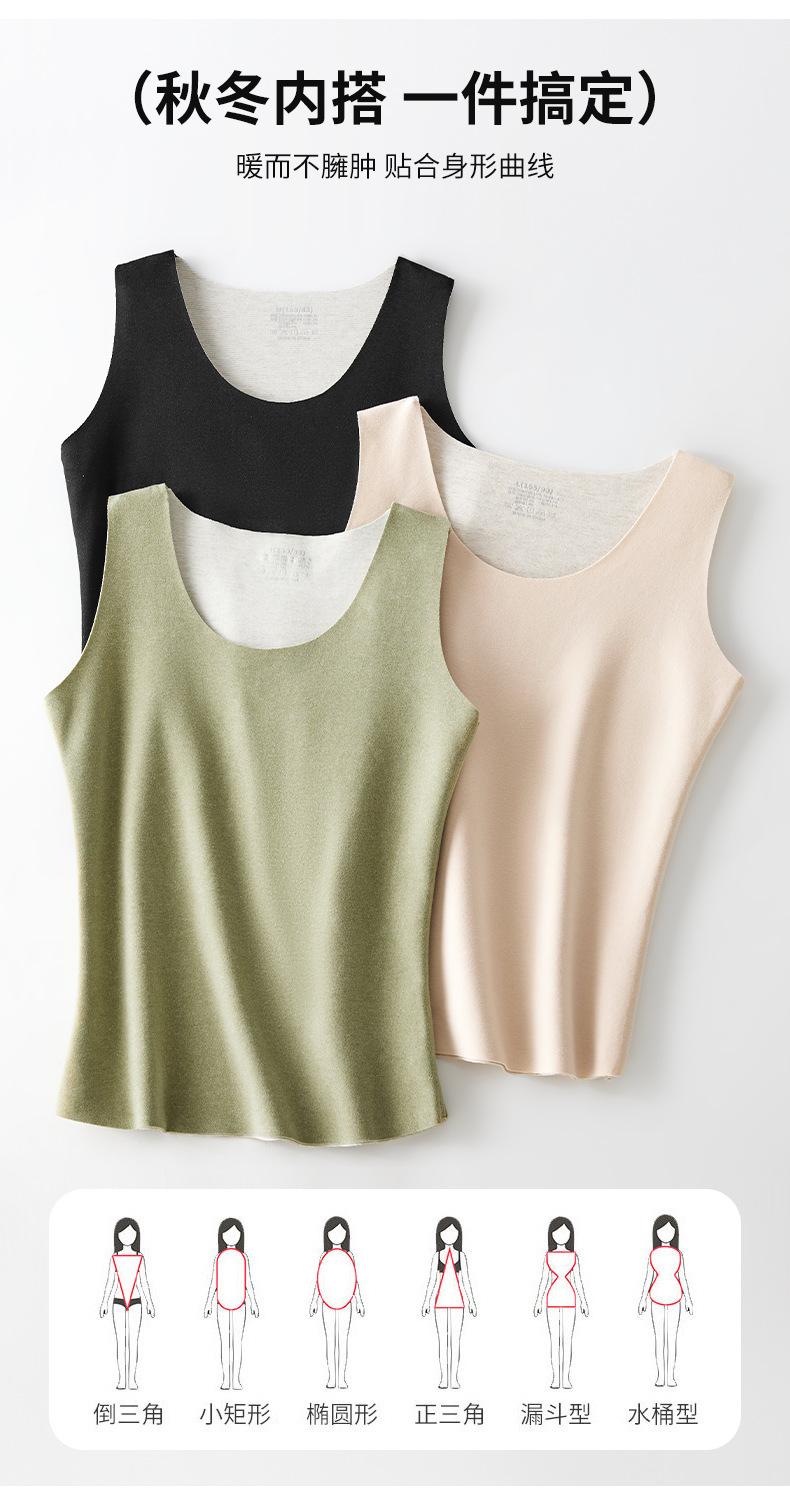 Chaleco térmico para mujer, ropa interior de terciopelo sin rastro, forro polar, cachemira gruesa, seda, base de tirantes, otoño e invierno.