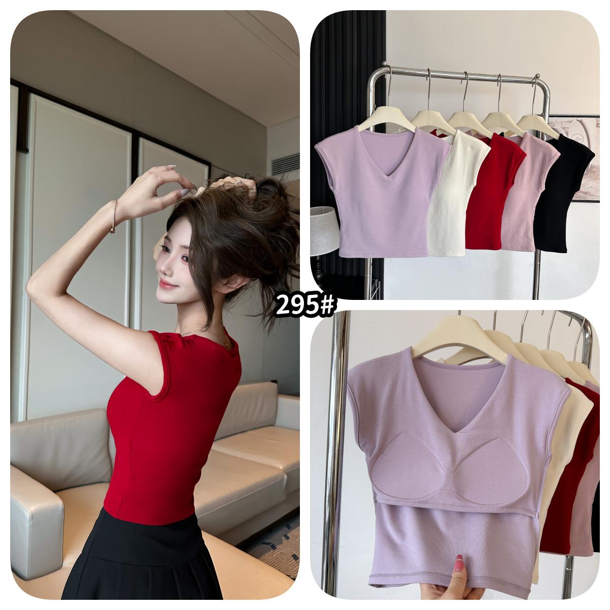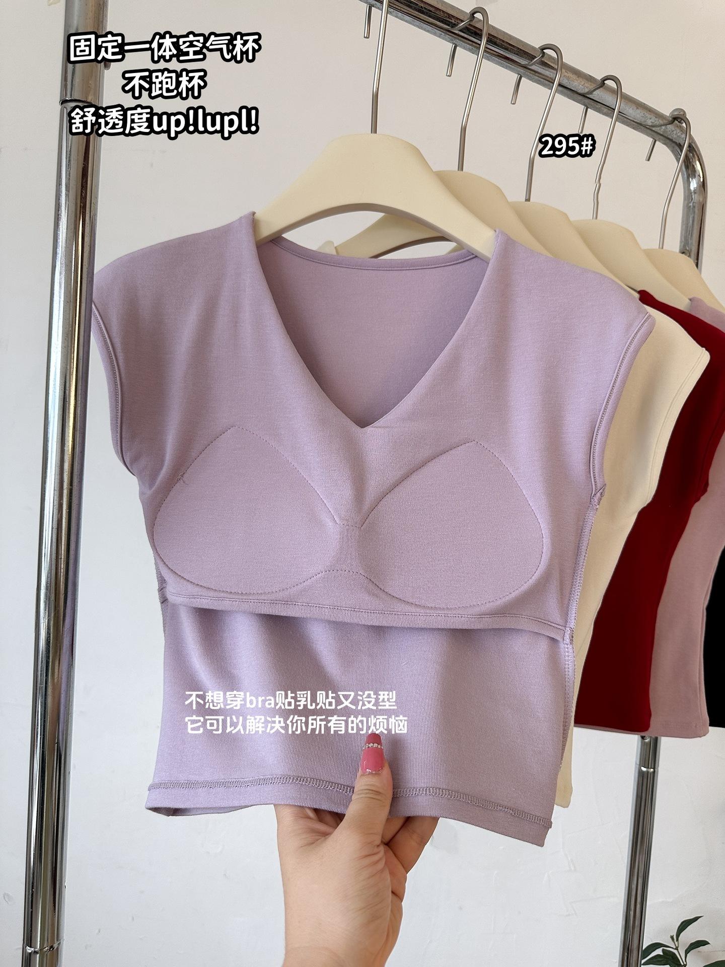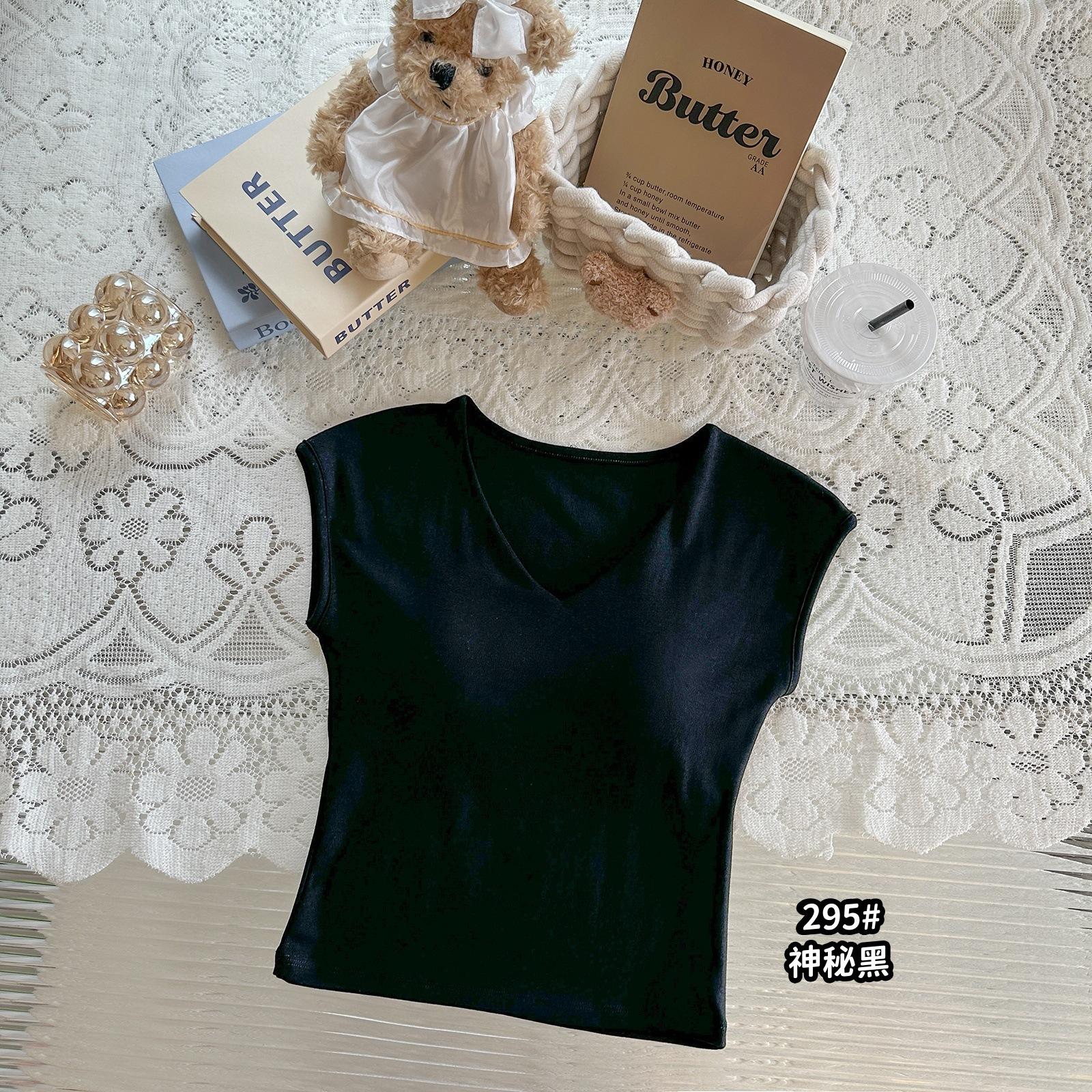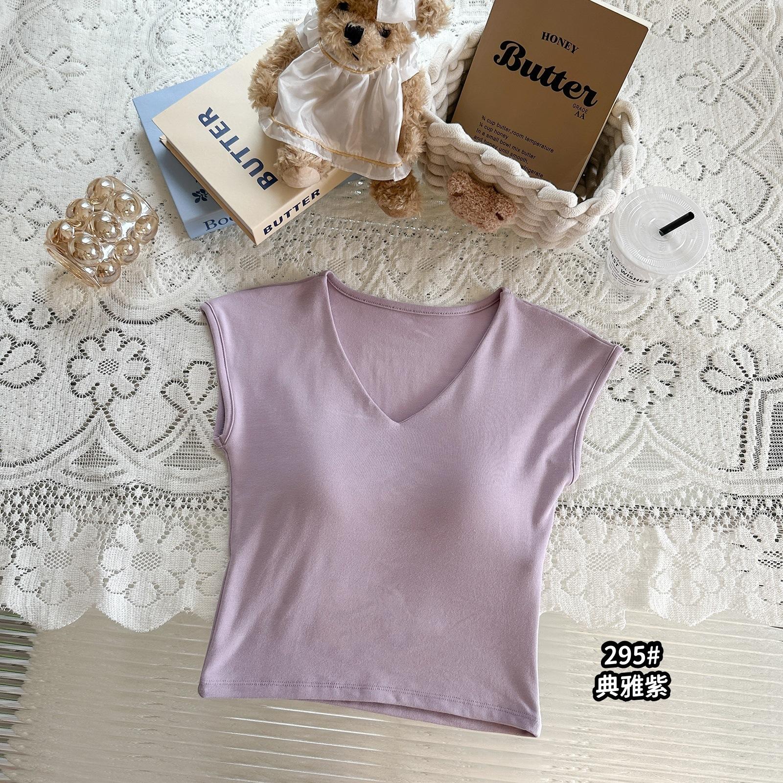 Verano Nuevo Estilo Mangas Cortas Vuelo Pequeñas Modal Tacto Rayón Fresco Deseo Puro Cuello V Chaleco Versátil con Top de Copa Fija