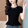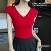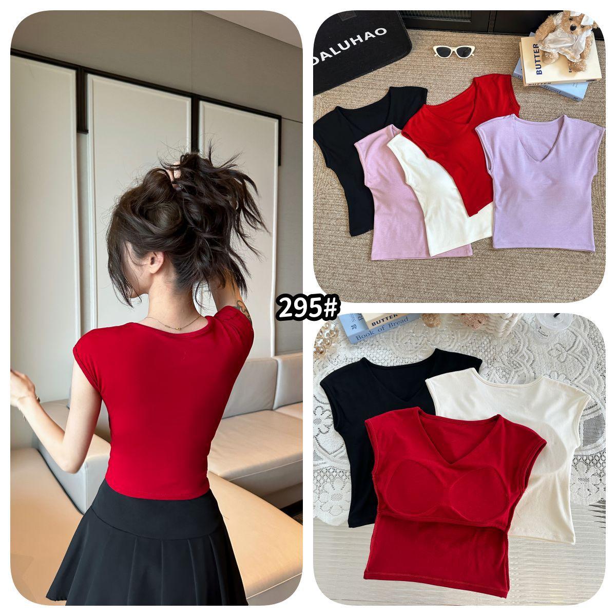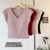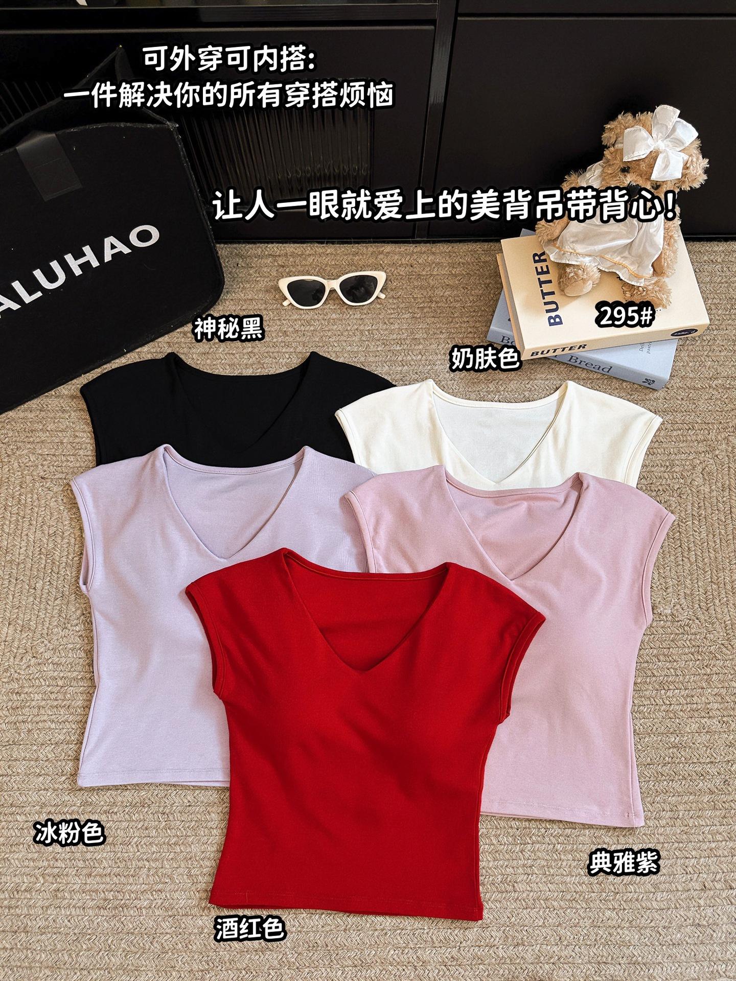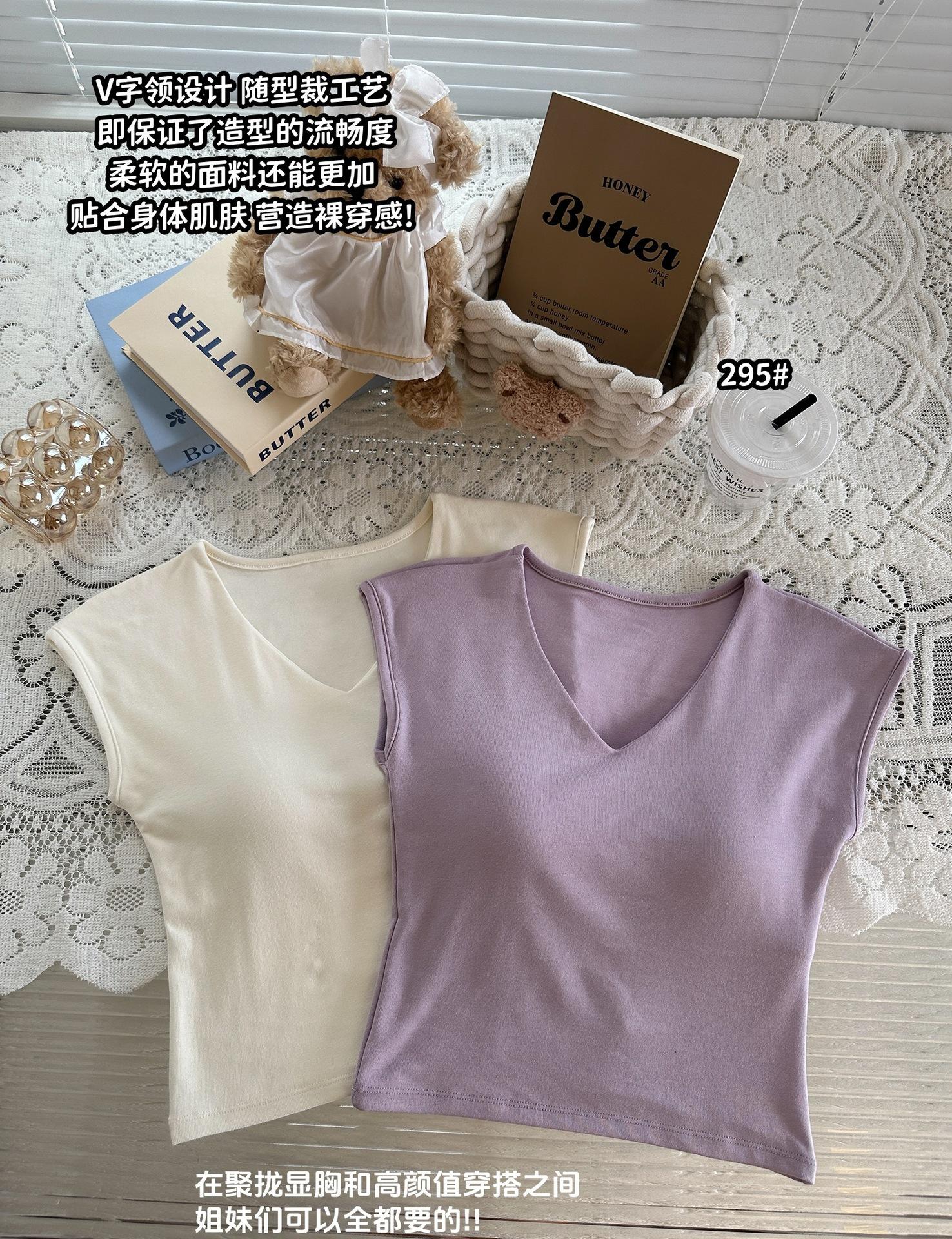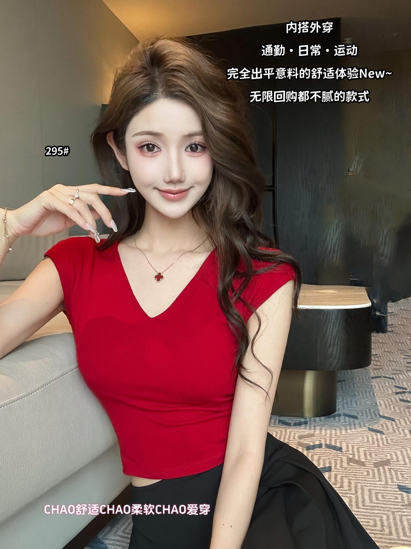 Verano Nuevo Estilo Mangas Cortas Vuelo Pequeñas Modal Tacto Rayón Fresco Deseo Puro Cuello V Chaleco Versátil con Top de Copa Fija