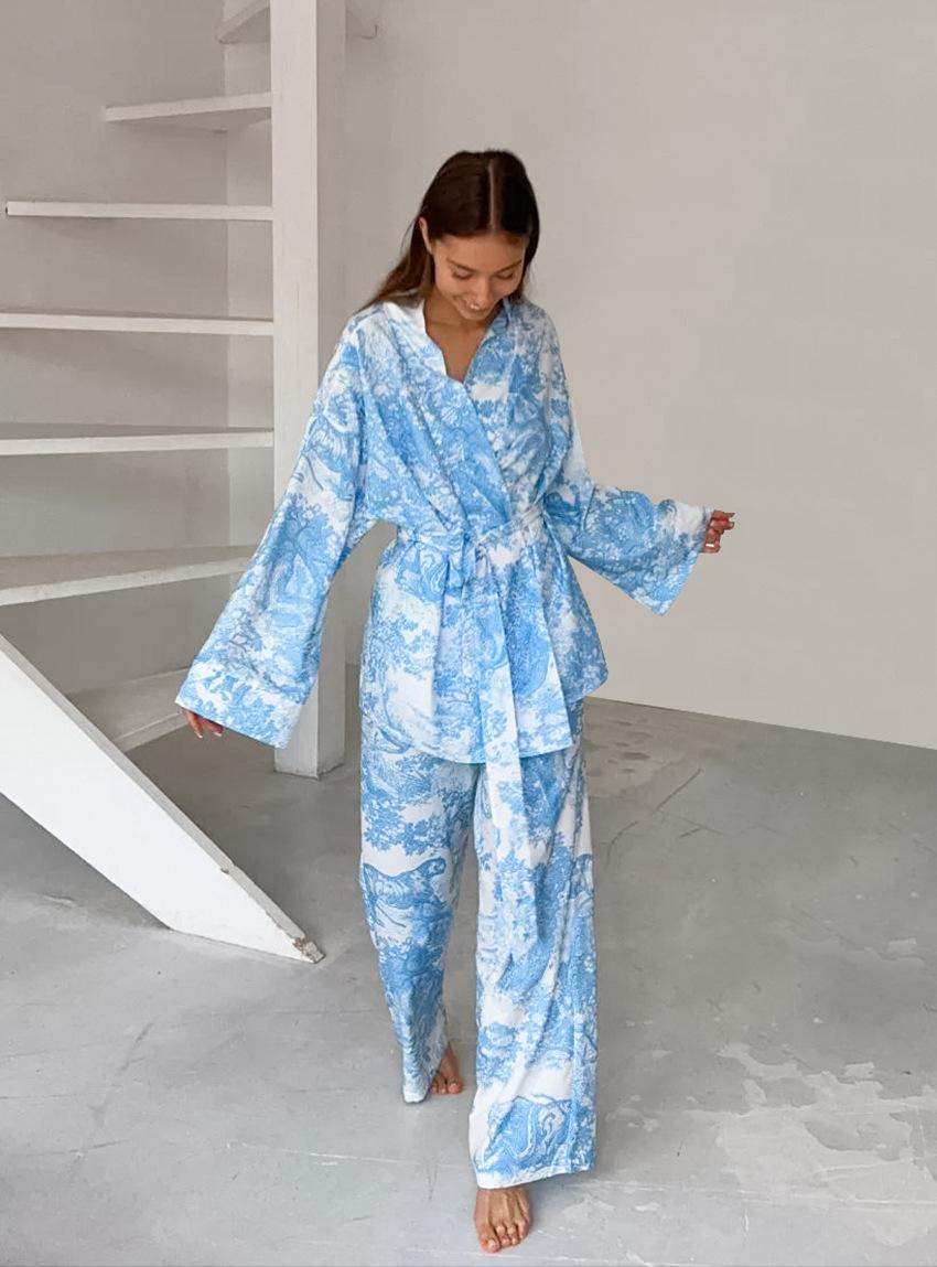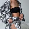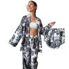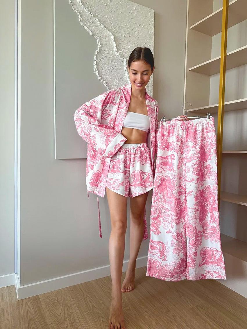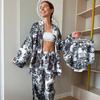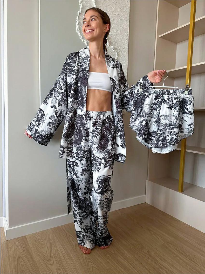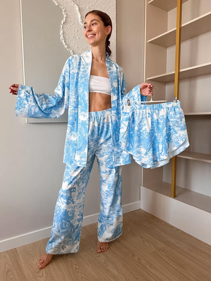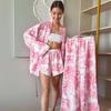 Pijama de tres piezas con estampado de invierno europeo y americano, holgado, de manga larga, cómodo y transfronterizo, para el hogar, venta al por mayor