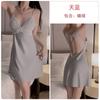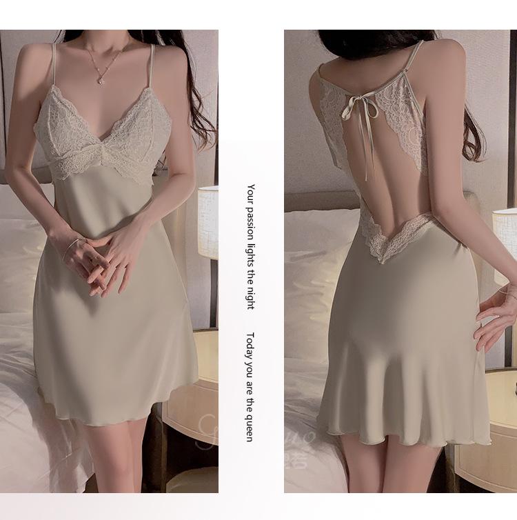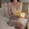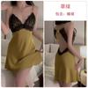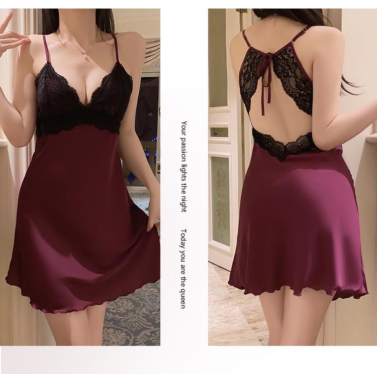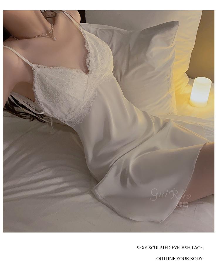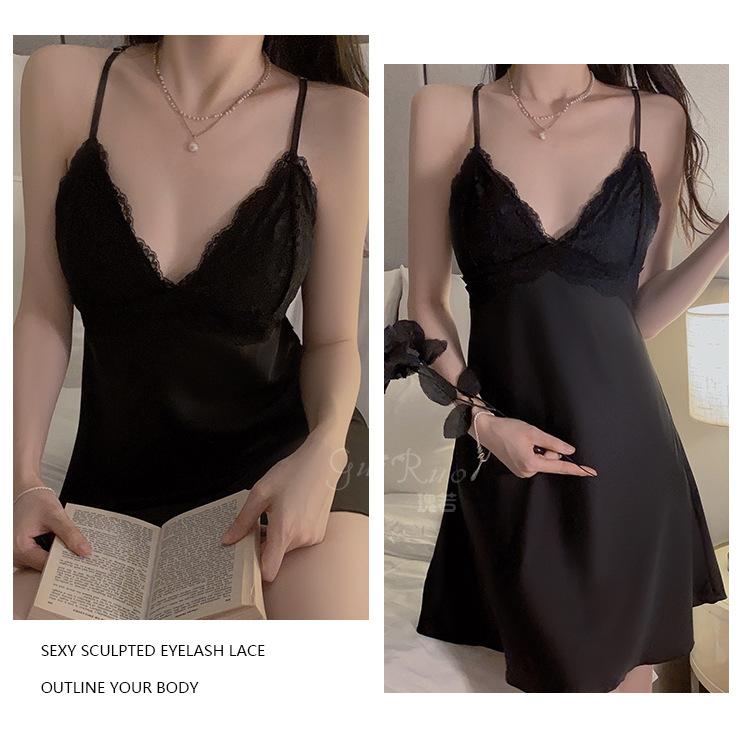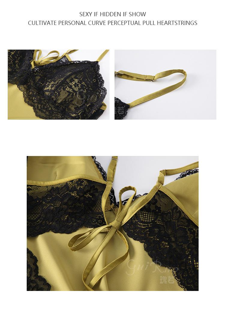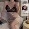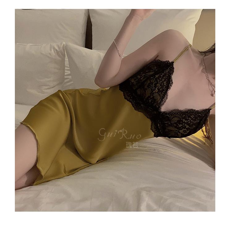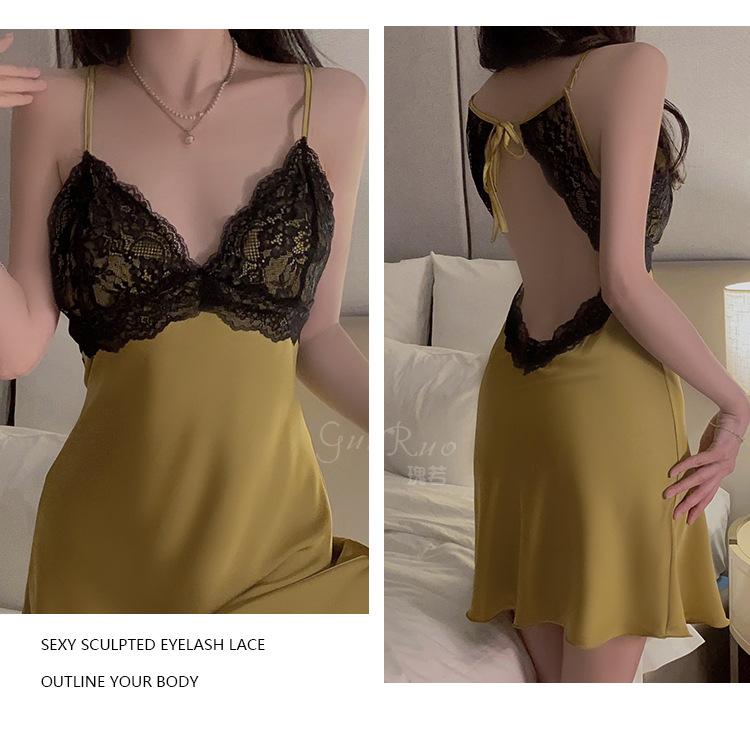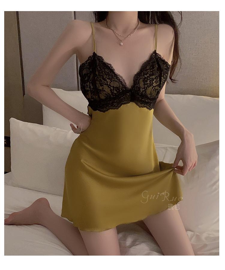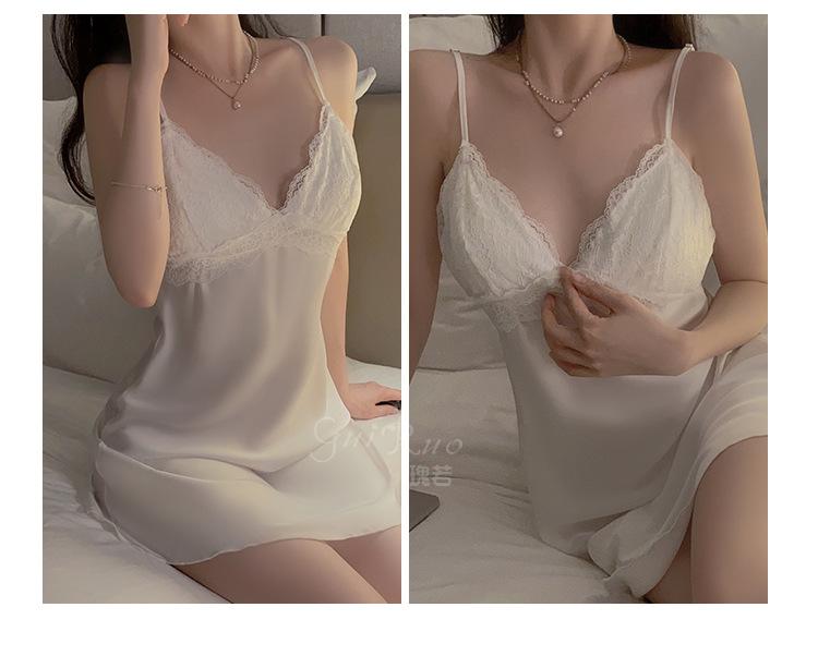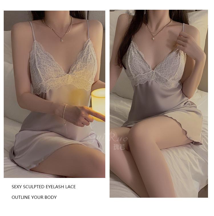 Pijama de Talla Grande Marca Guiruo Cuello V Profundo con Almohadilla en el Pecho Tentación Seda de Hielo Camisón con Tirantes para Mujer Traje de Casa 2621
