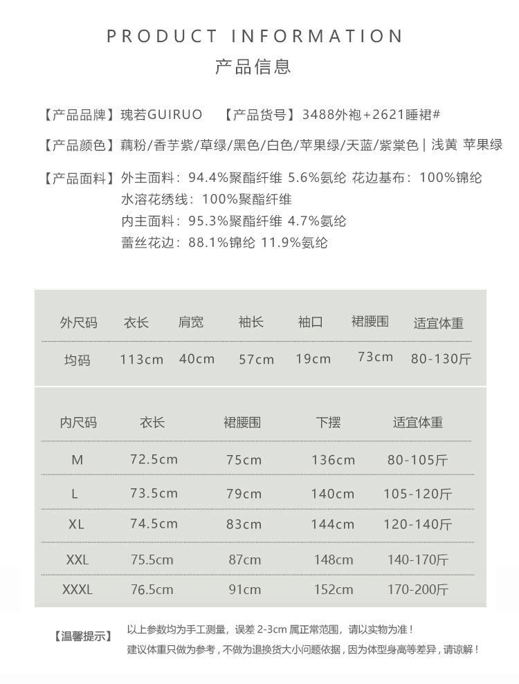 Black (nightgown), White (nightgown), Lotus root powder (nightgown), Grass green (nightgown), Taro purple (nig...