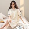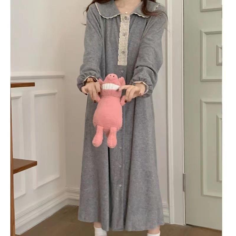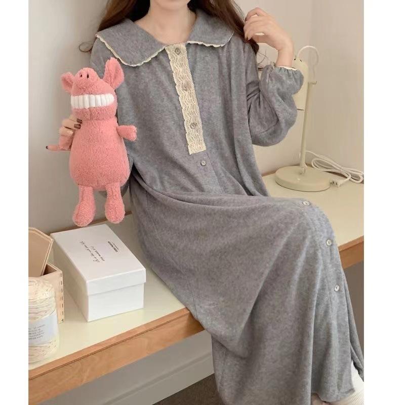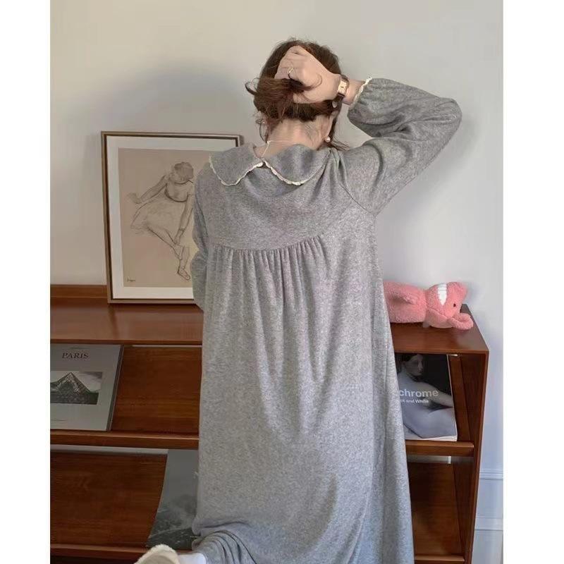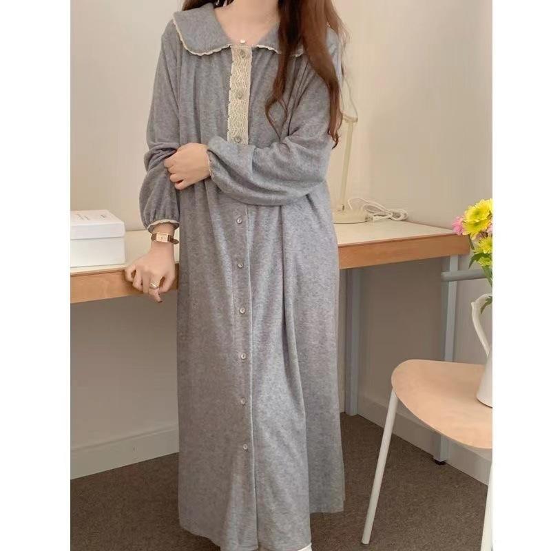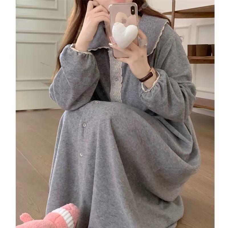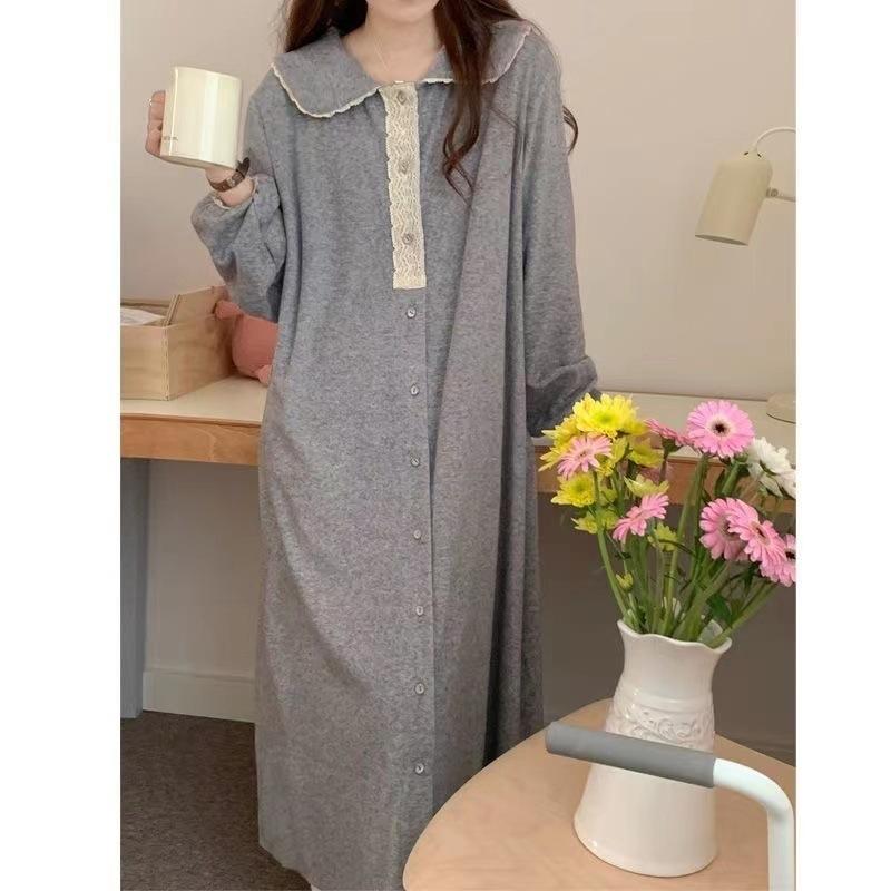Camisón Blanco Otoño e Invierno Nuevo Empalme Encaje Pijama de Algodón de Alta Densidad para Mujer Dulce Suelto Talla Grande para Ropa Exterior