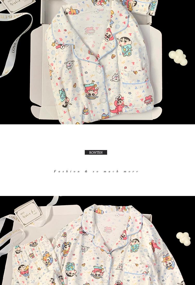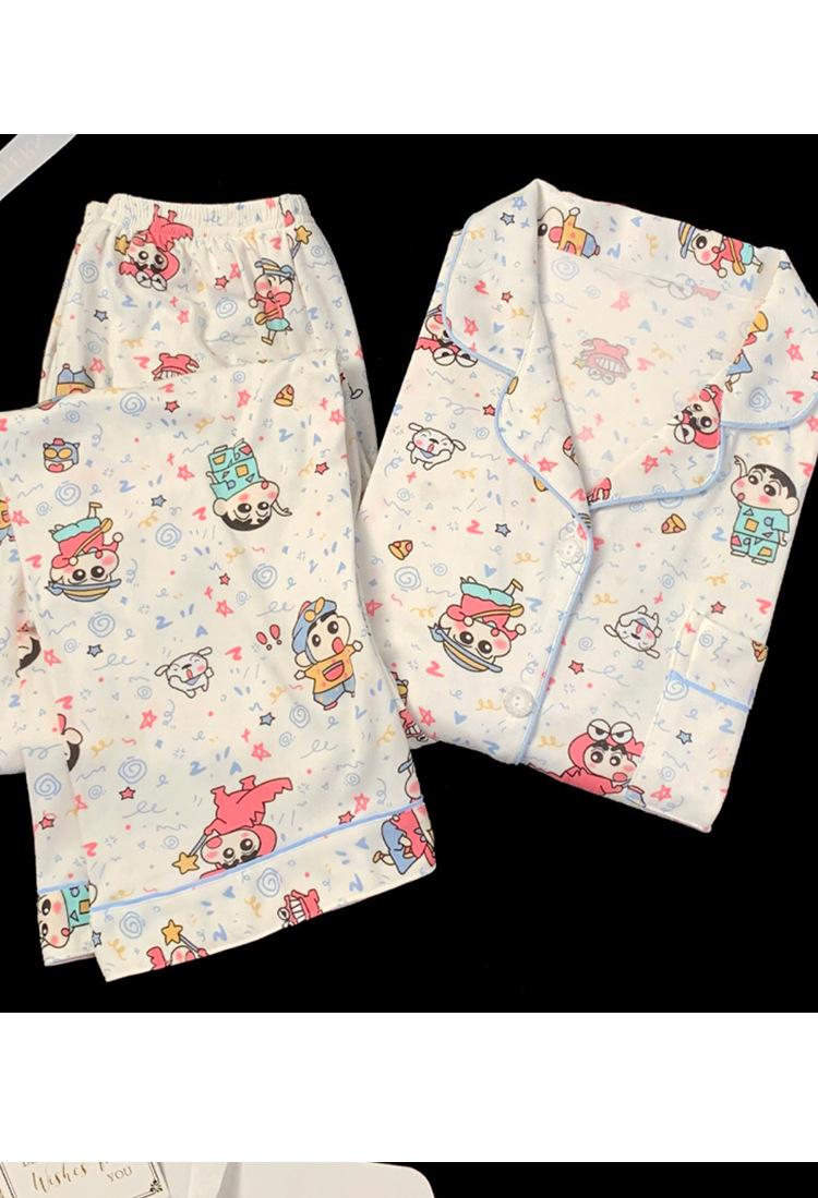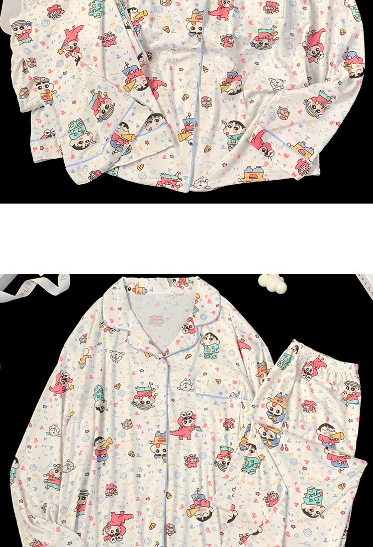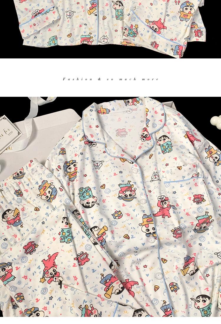 Pijama Japonés Crayon Shin Pantalones Manga Larga para Mujer Otoño Nuevo Lindo Dibujo Animado Ropa para el Hogar Traje Foto Real Venta al por Mayor