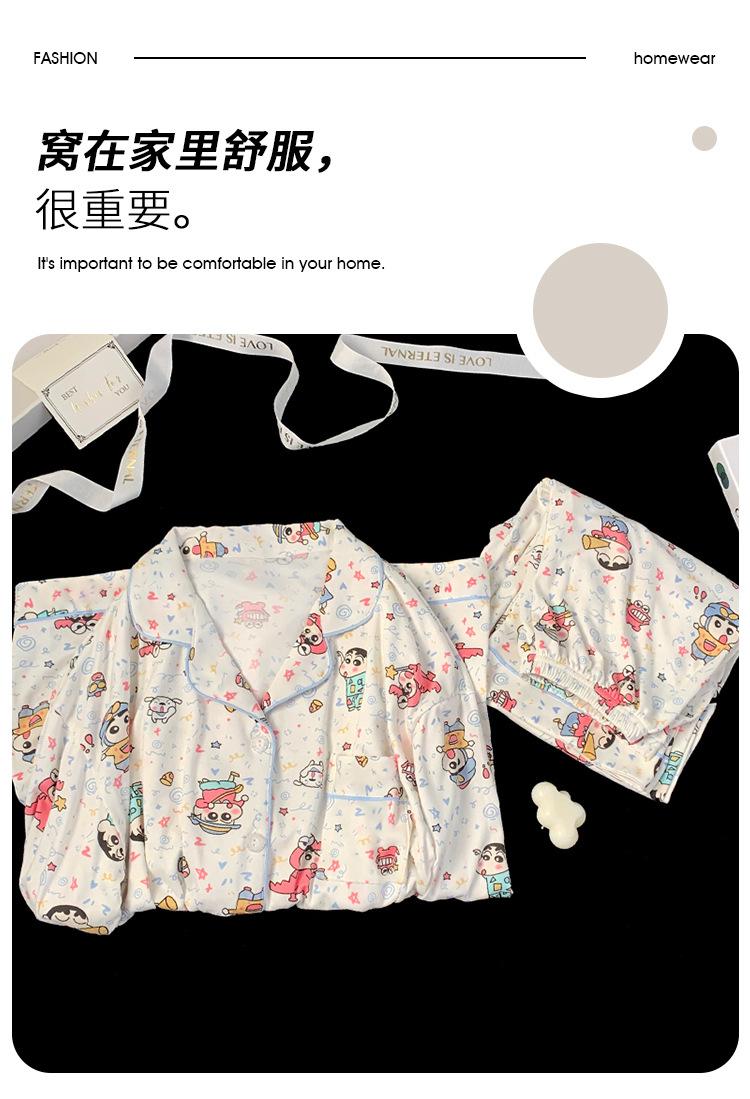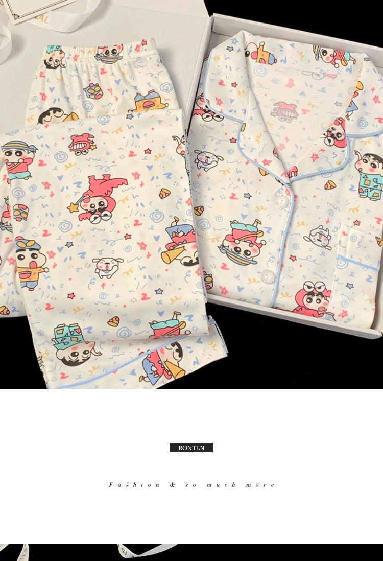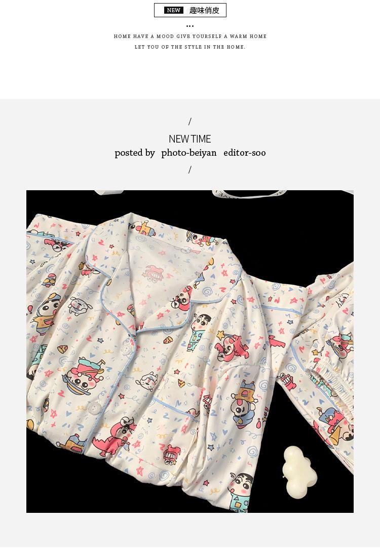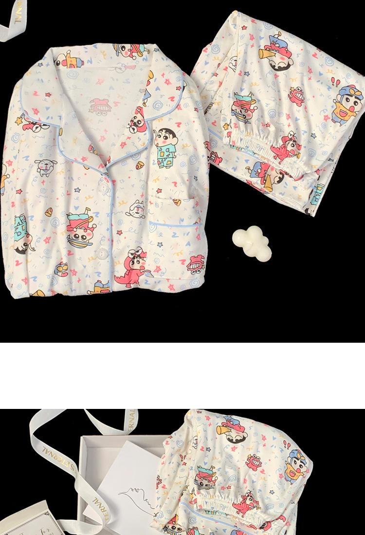 Pijama Japonés Crayon Shin Pantalones Manga Larga para Mujer Otoño Nuevo Lindo Dibujo Animado Ropa para el Hogar Traje Foto Real Venta al por Mayor