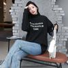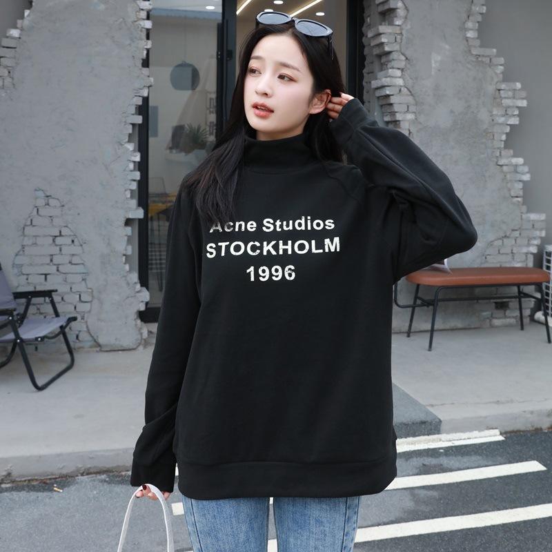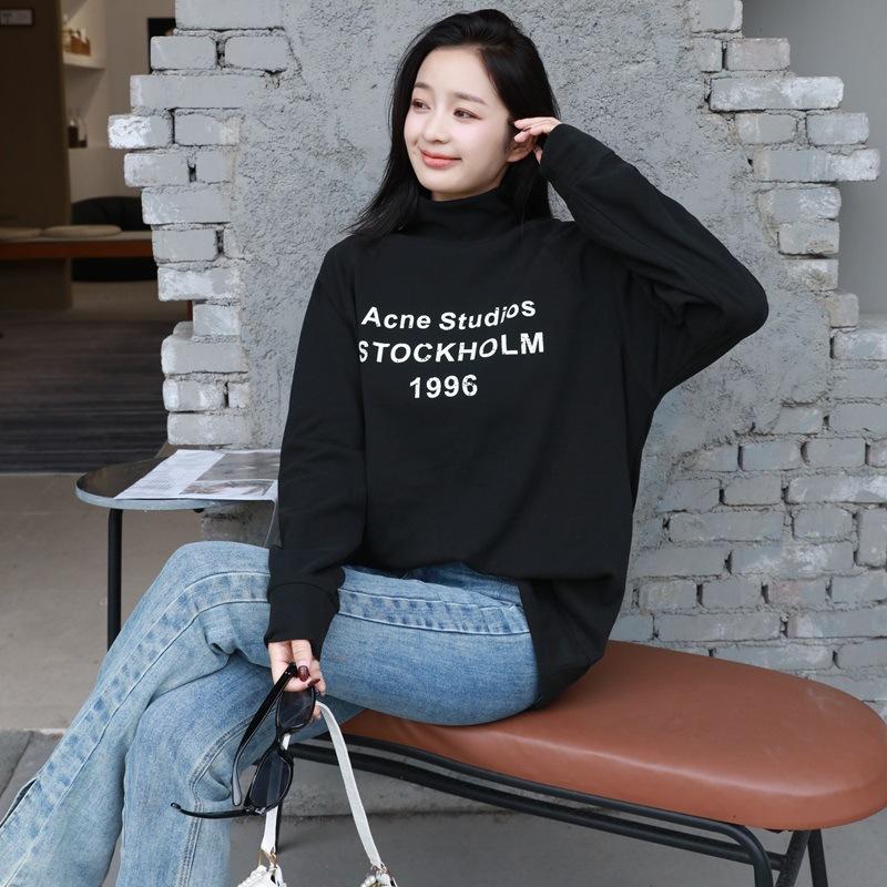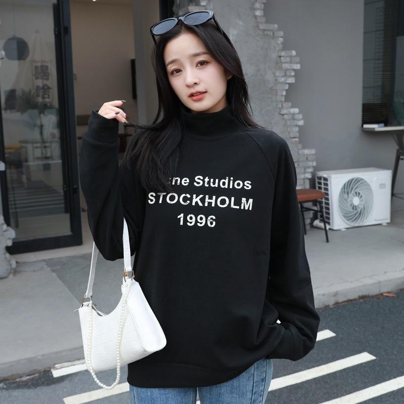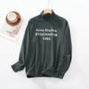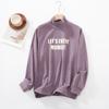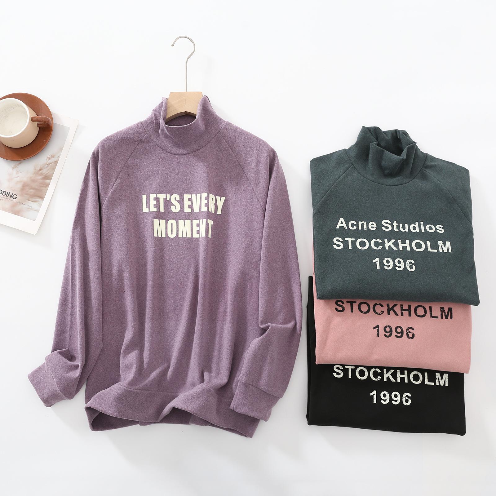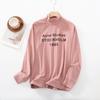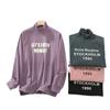 Camiseta Base de Cuello Alto para Mujer, Estilo Otoño e Invierno, Terciopelo Alemán con Estampado de Letras, Corte Holgado, Manga Larga, Camiseta Cálida, Generadora de Calor y Anti-Pilling