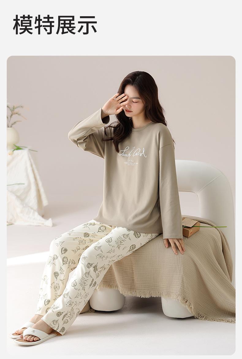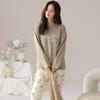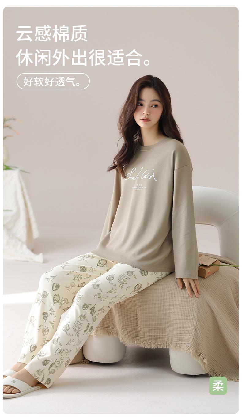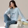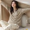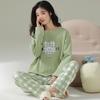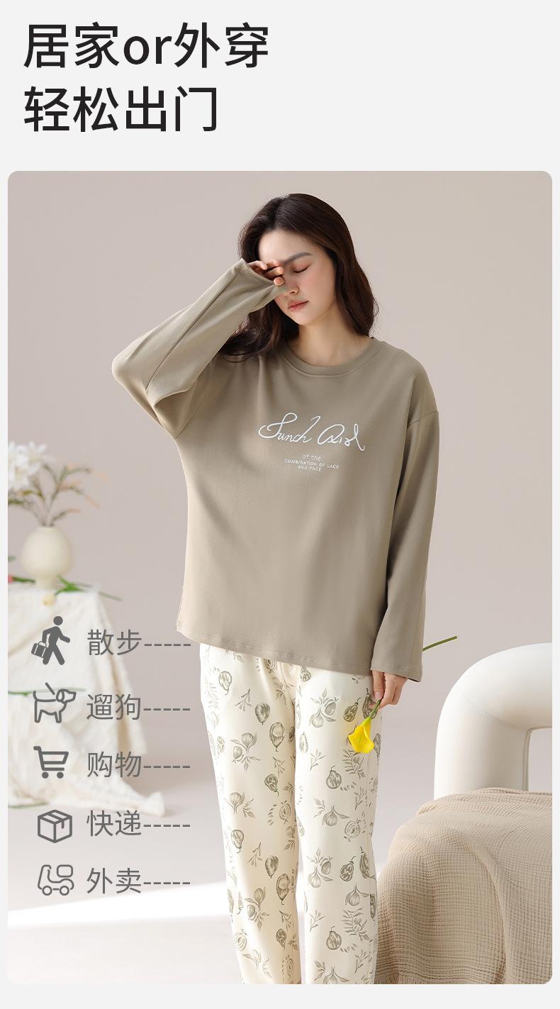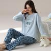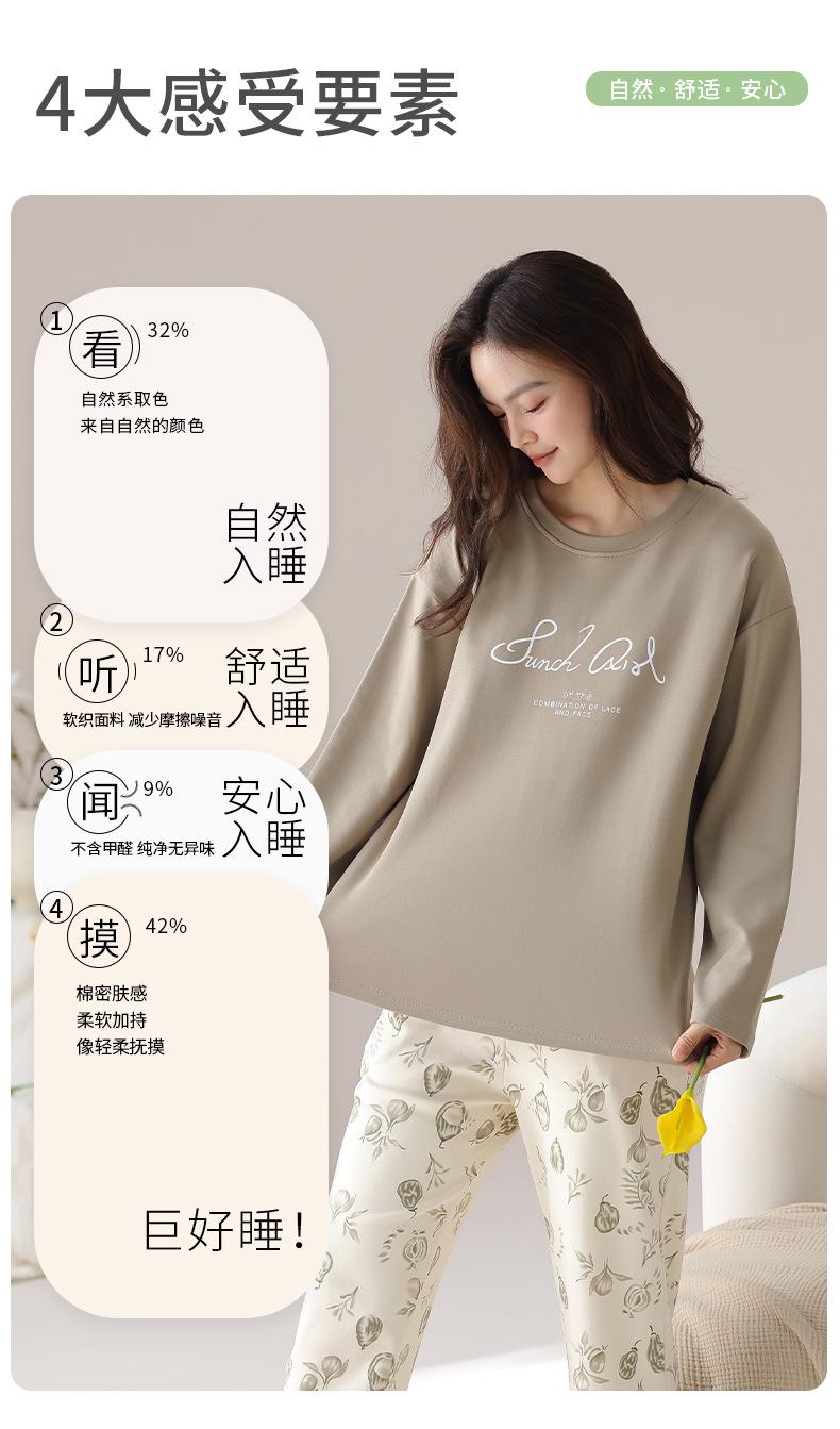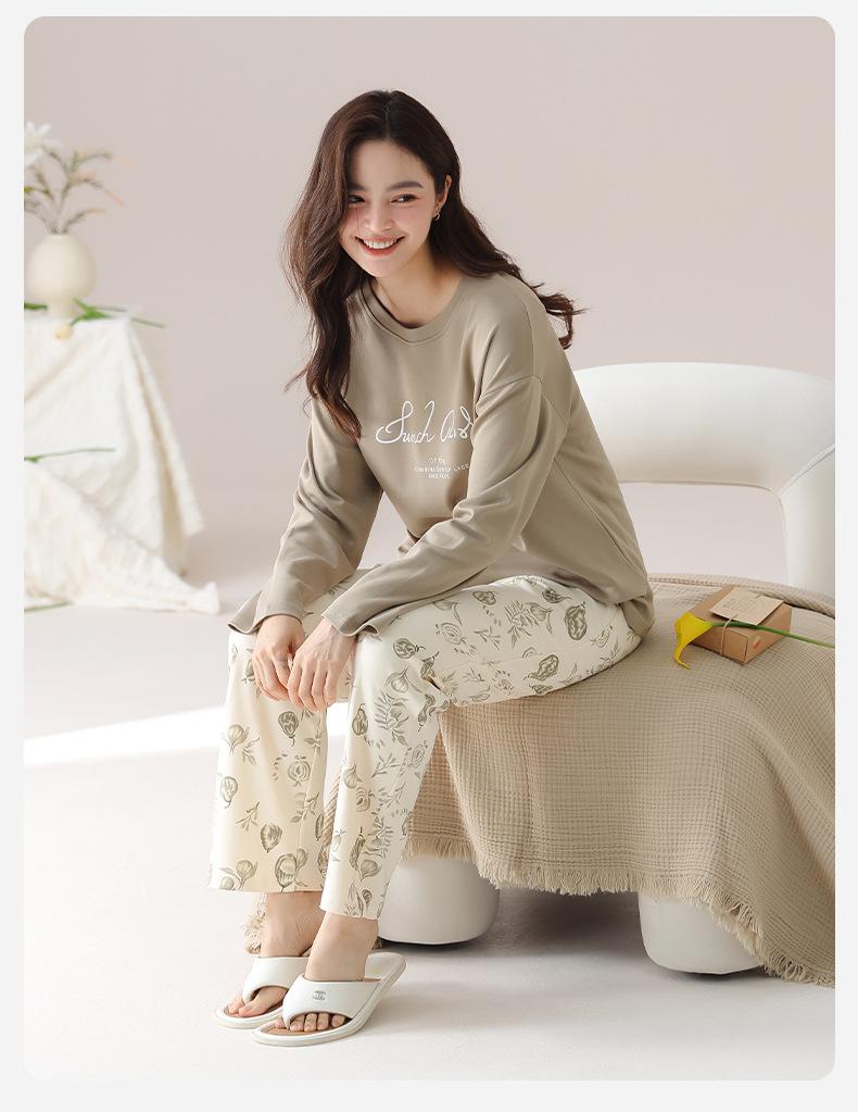 Pijama de algodón puro de doble cara para mujer, ropa de casa para otoño e invierno, jersey de cuello redondo, manga larga, informal, holgado, para uso exterior.