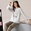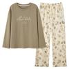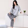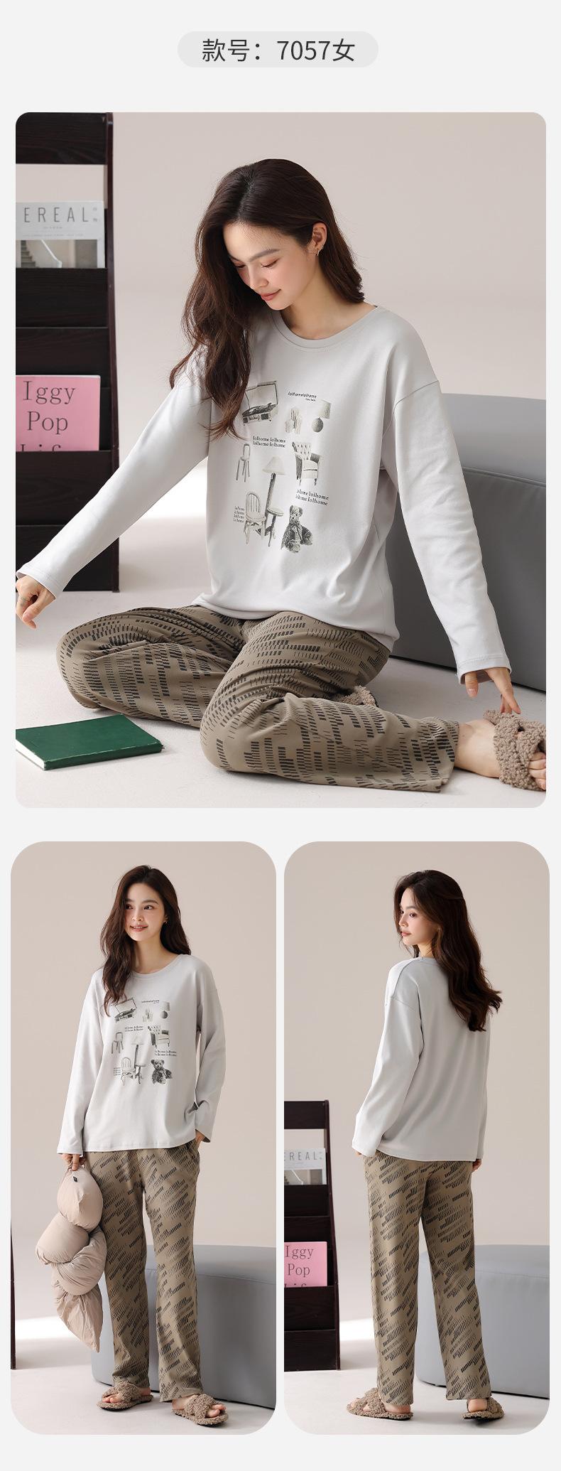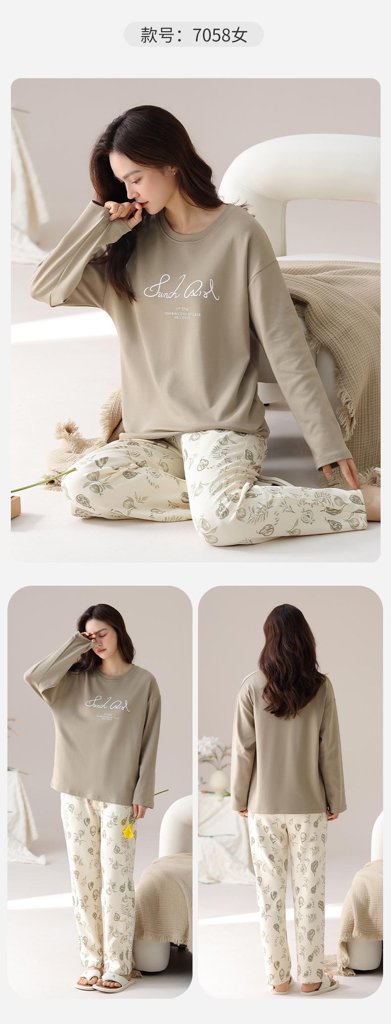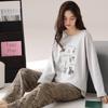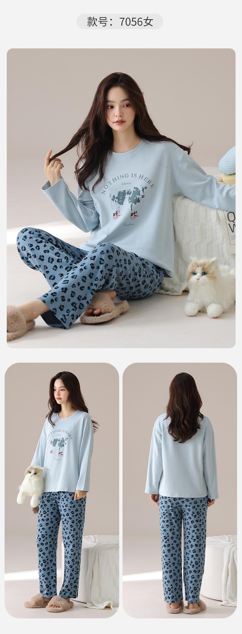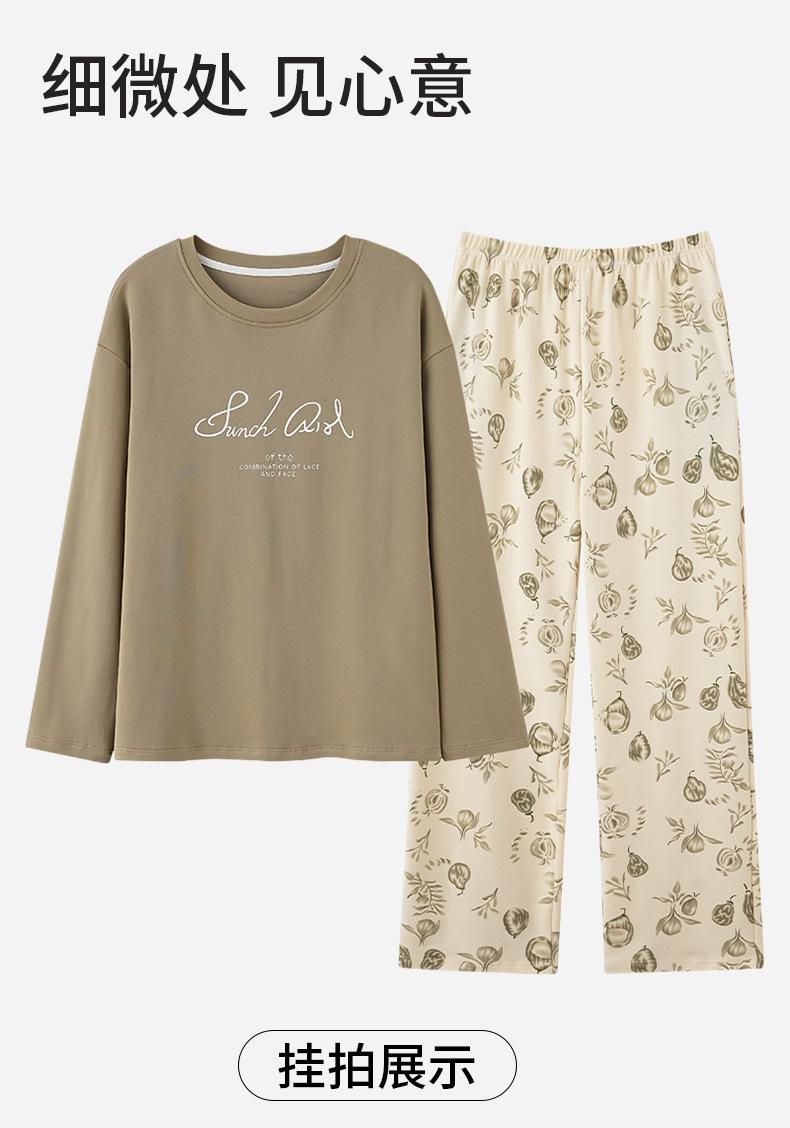 Pijama de algodón puro de doble cara para mujer, ropa de casa para otoño e invierno, jersey de cuello redondo, manga larga, informal, holgado, para uso exterior.