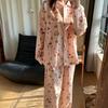 Strawberry dessert bear-brushed lapel long sleeve pants
