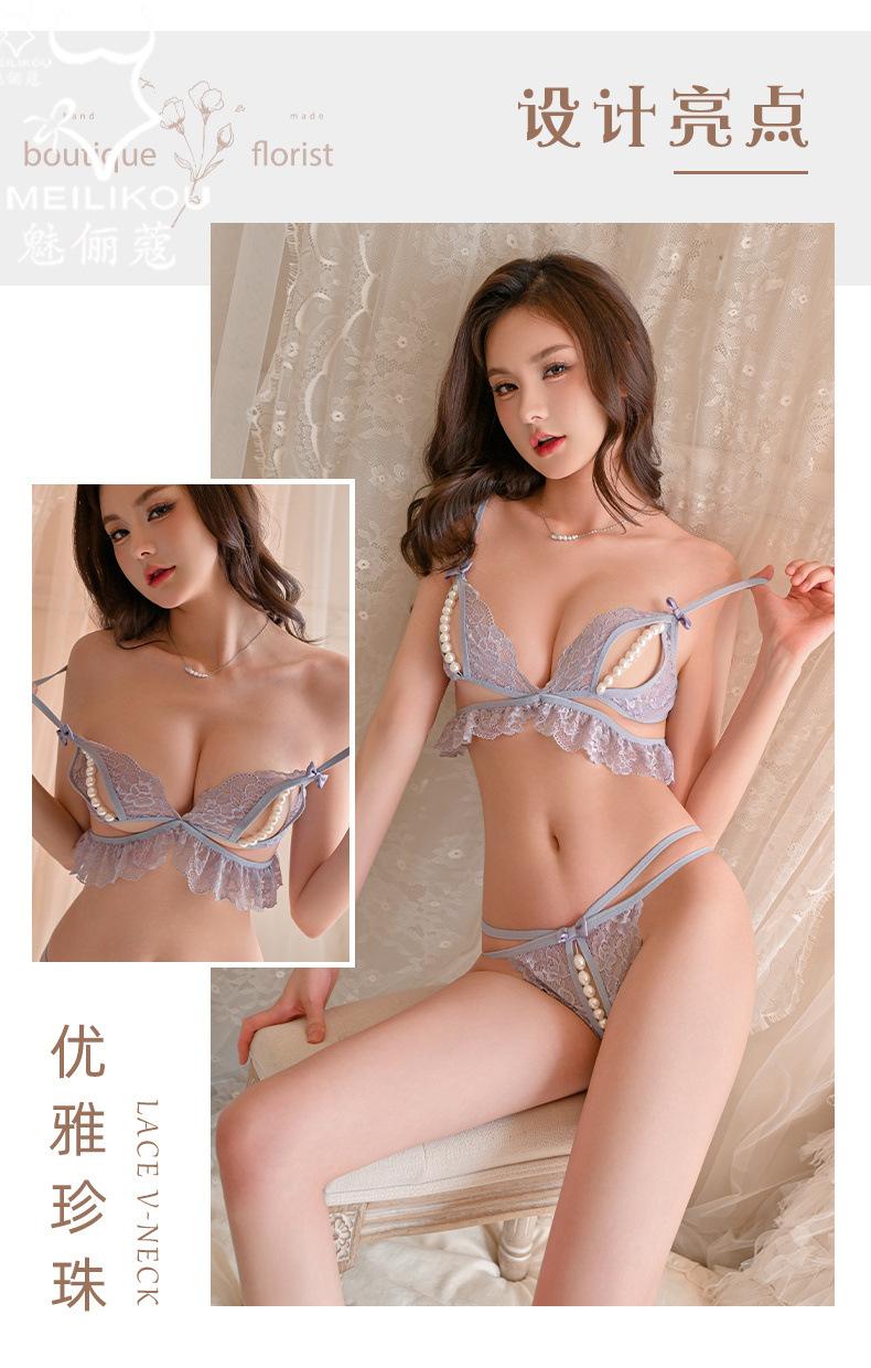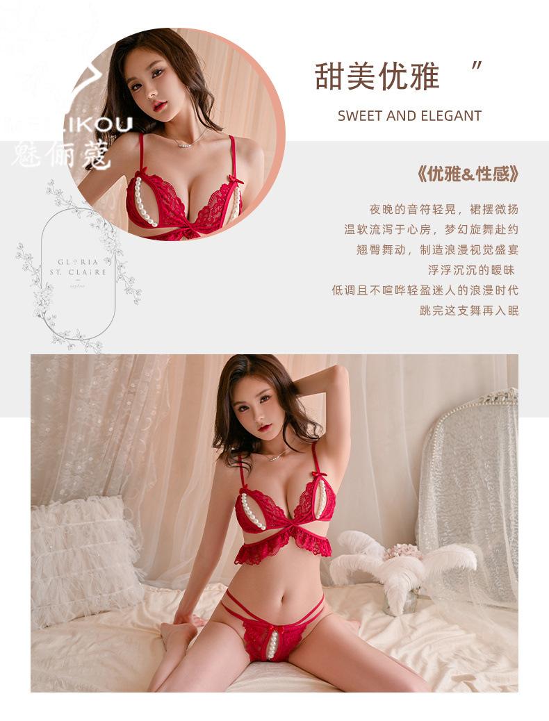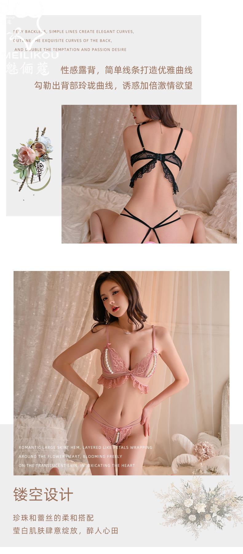 Ropa interior sexy Ropa interior en forma de T para mujer Sujetador de exposición Entrepierna abierta Libre Traje de pijama sexy de encaje de tres puntos 2185